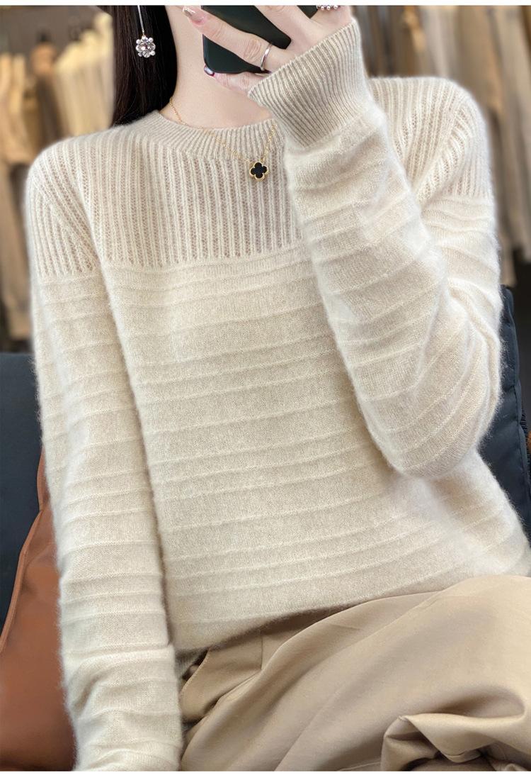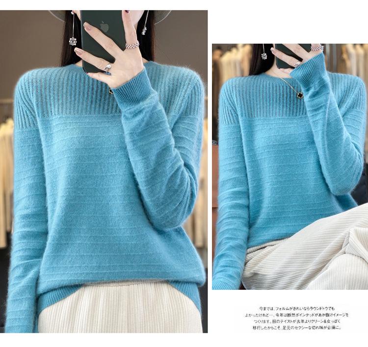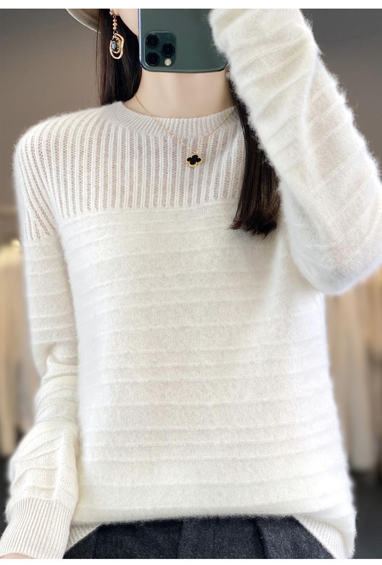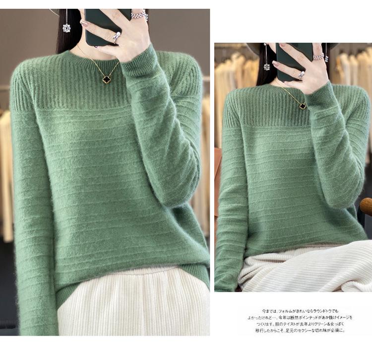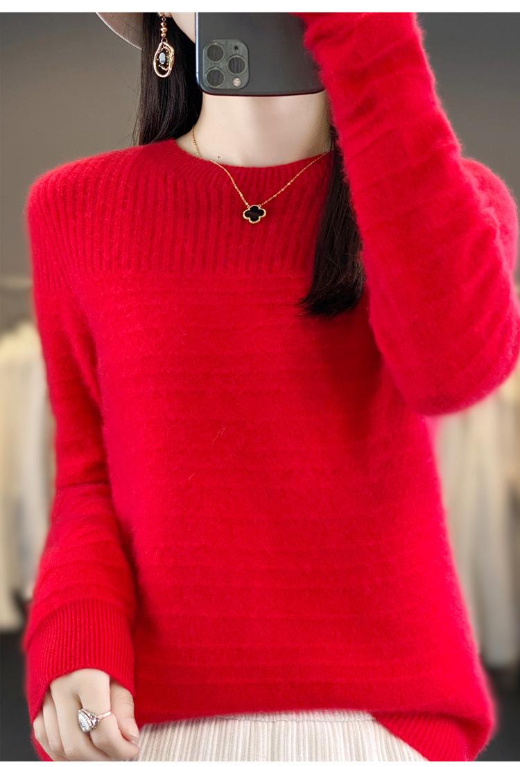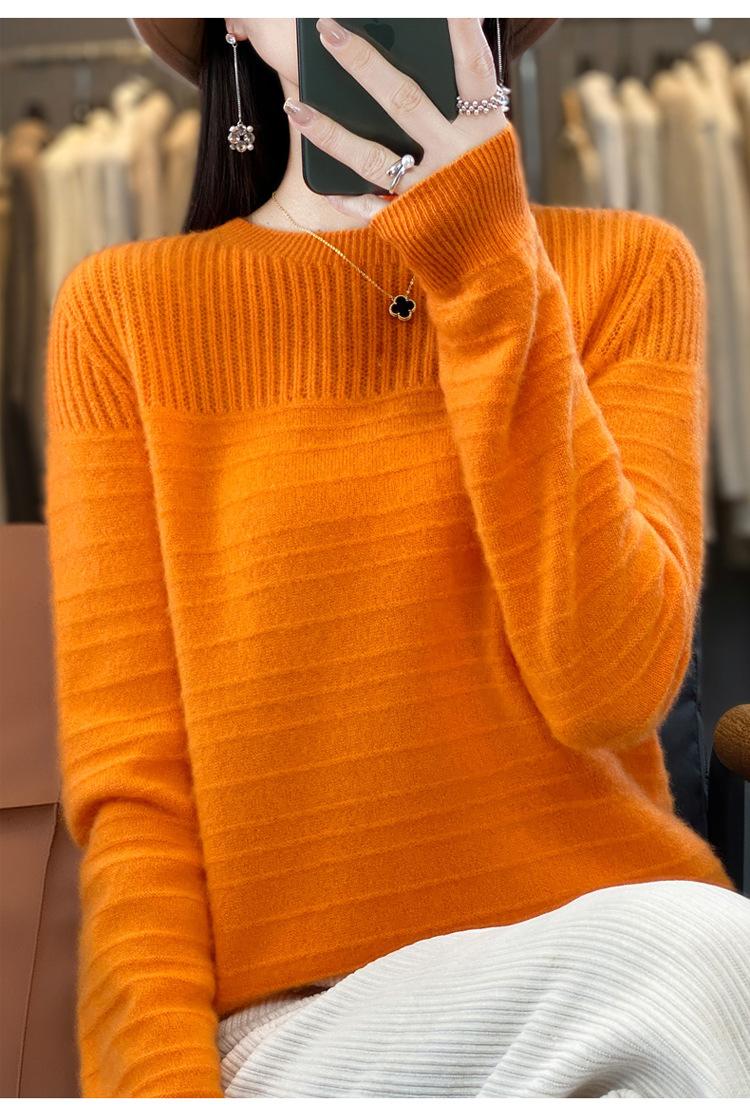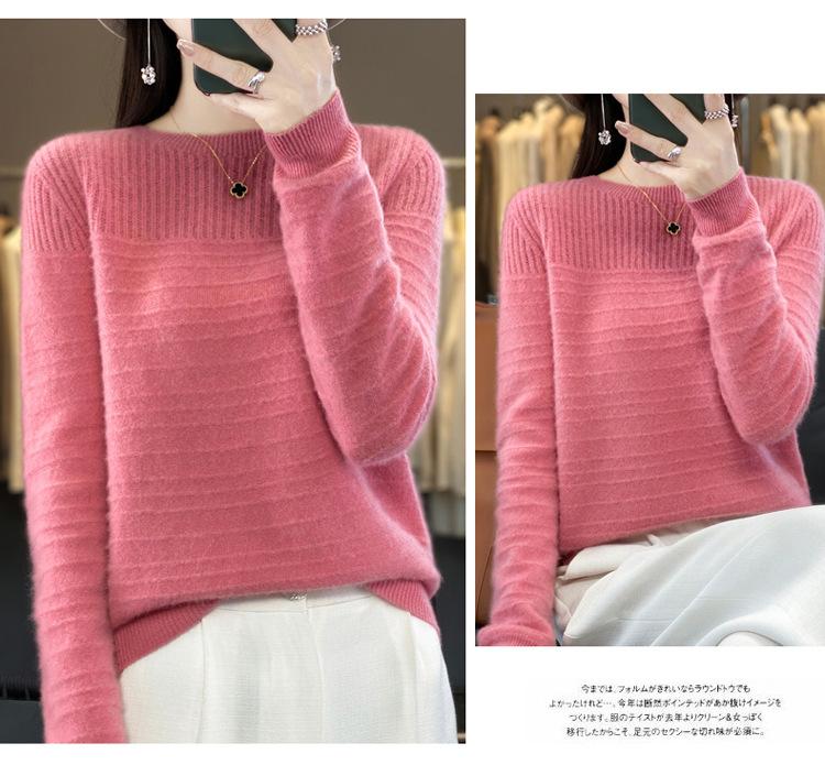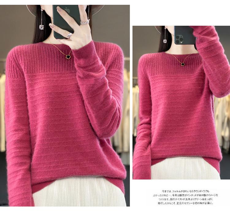 Nuevo otoño e invierno 2023 primera línea prêt-à-porter suéter de lana para mujer cuello redondo versátil tejido talla grande suéter holgado camisa básica