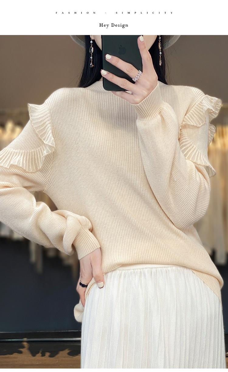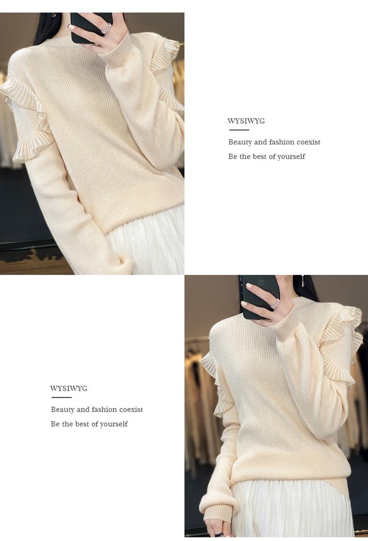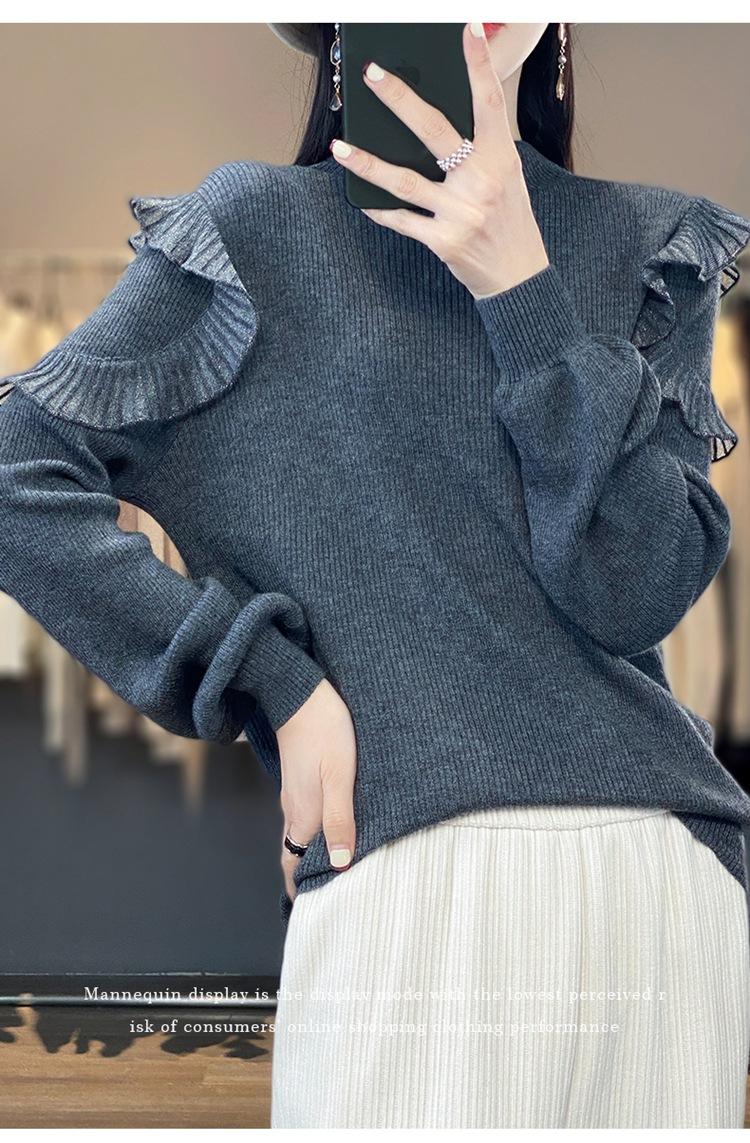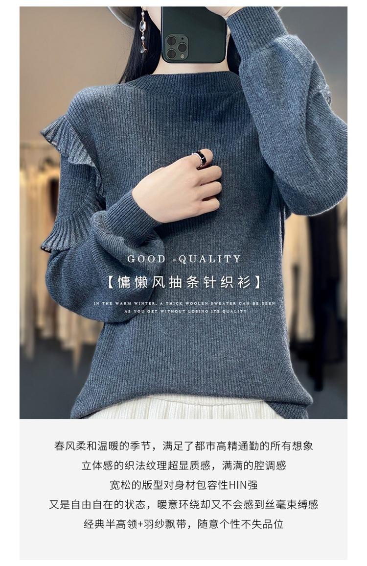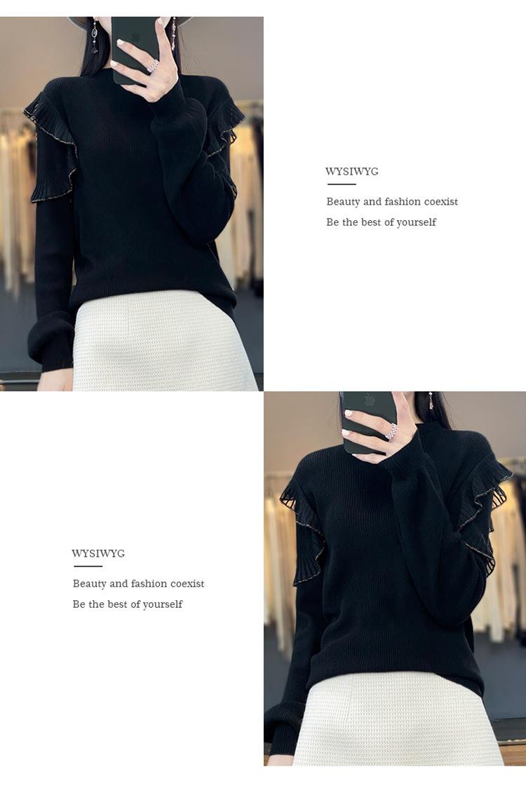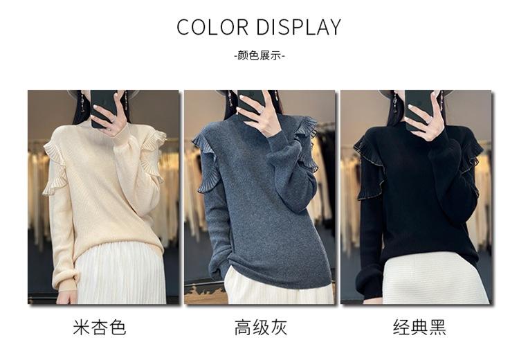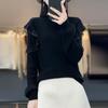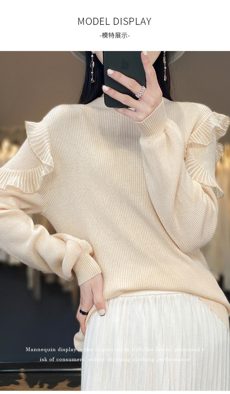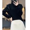Lana Peinada 2025 Otoño e Invierno Nuevo Top de Hongos de Cuello Alto Medio para Mujer Corto Color Puro Sencillo Versátil Tejido de Punto