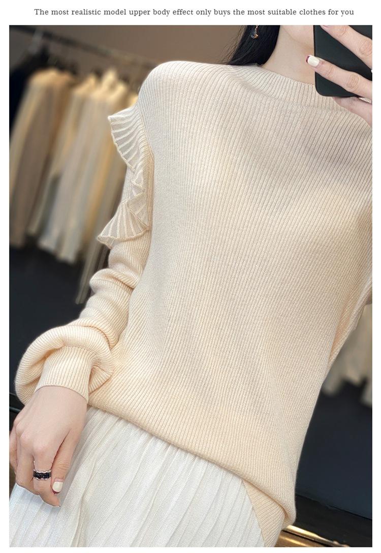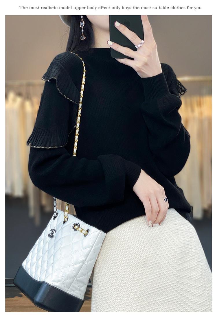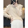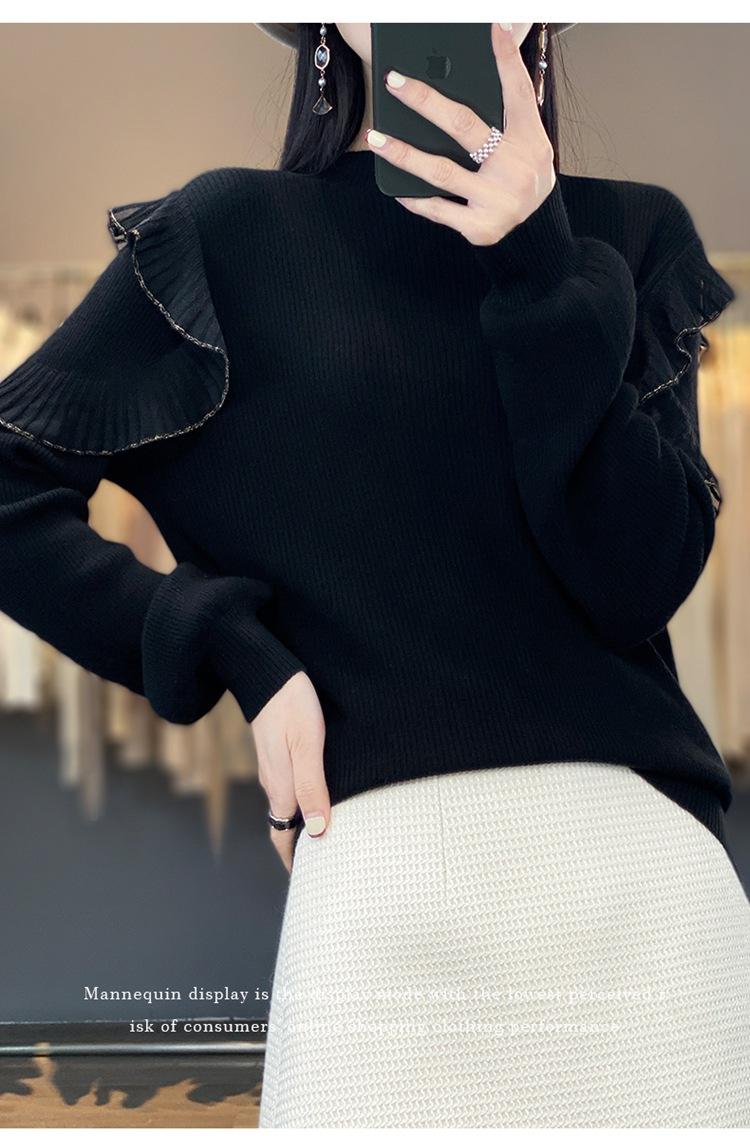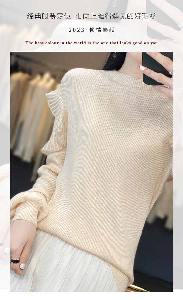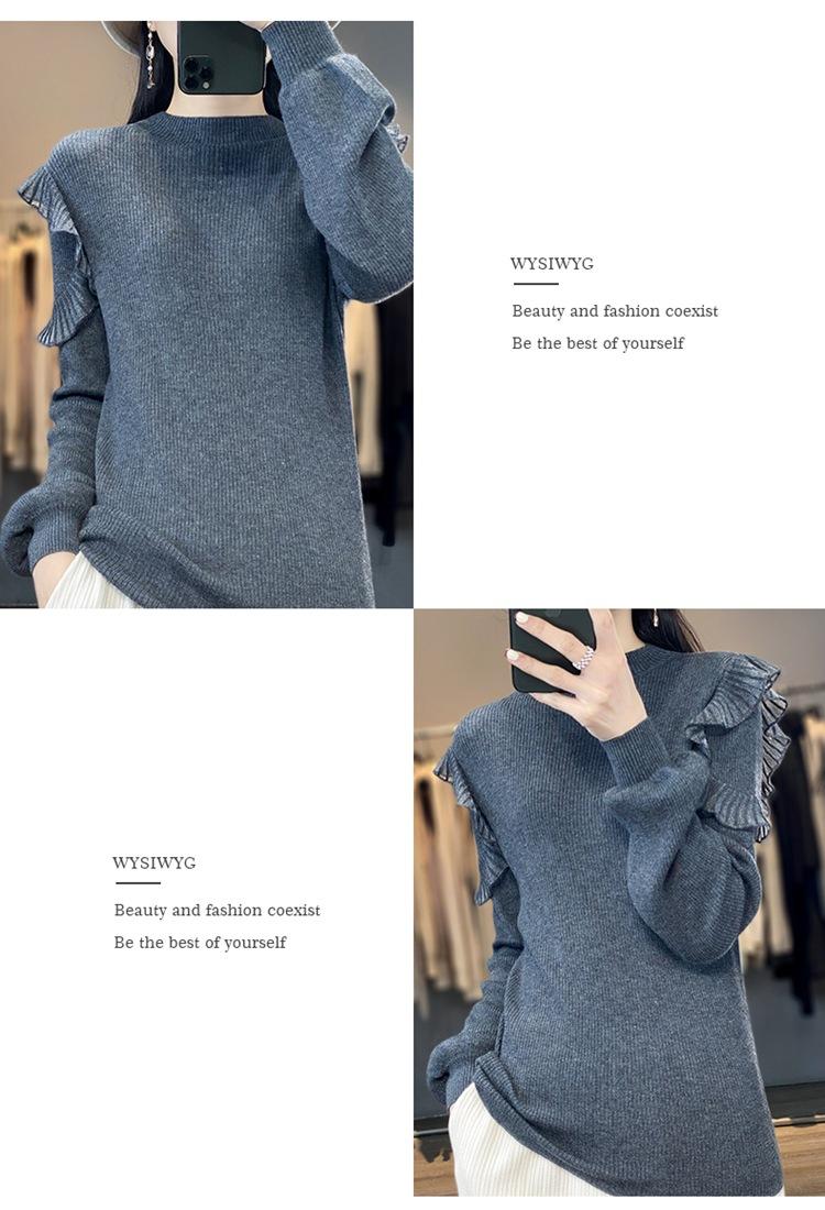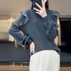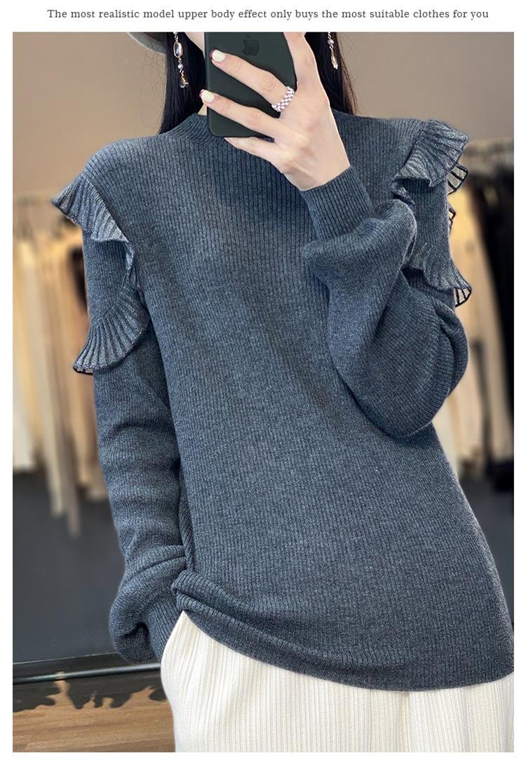 Lana Peinada 2025 Otoño e Invierno Nuevo Top de Hongos de Cuello Alto Medio para Mujer Corto Color Puro Sencillo Versátil Tejido de Punto