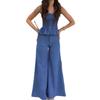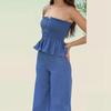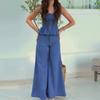 Otoño 2024 nuevo conjunto de dos piezas europeo y americano de Amazon transfronterizo de color sólido, top de tubo elástico y pantalones holgados de pierna ancha para mujer