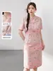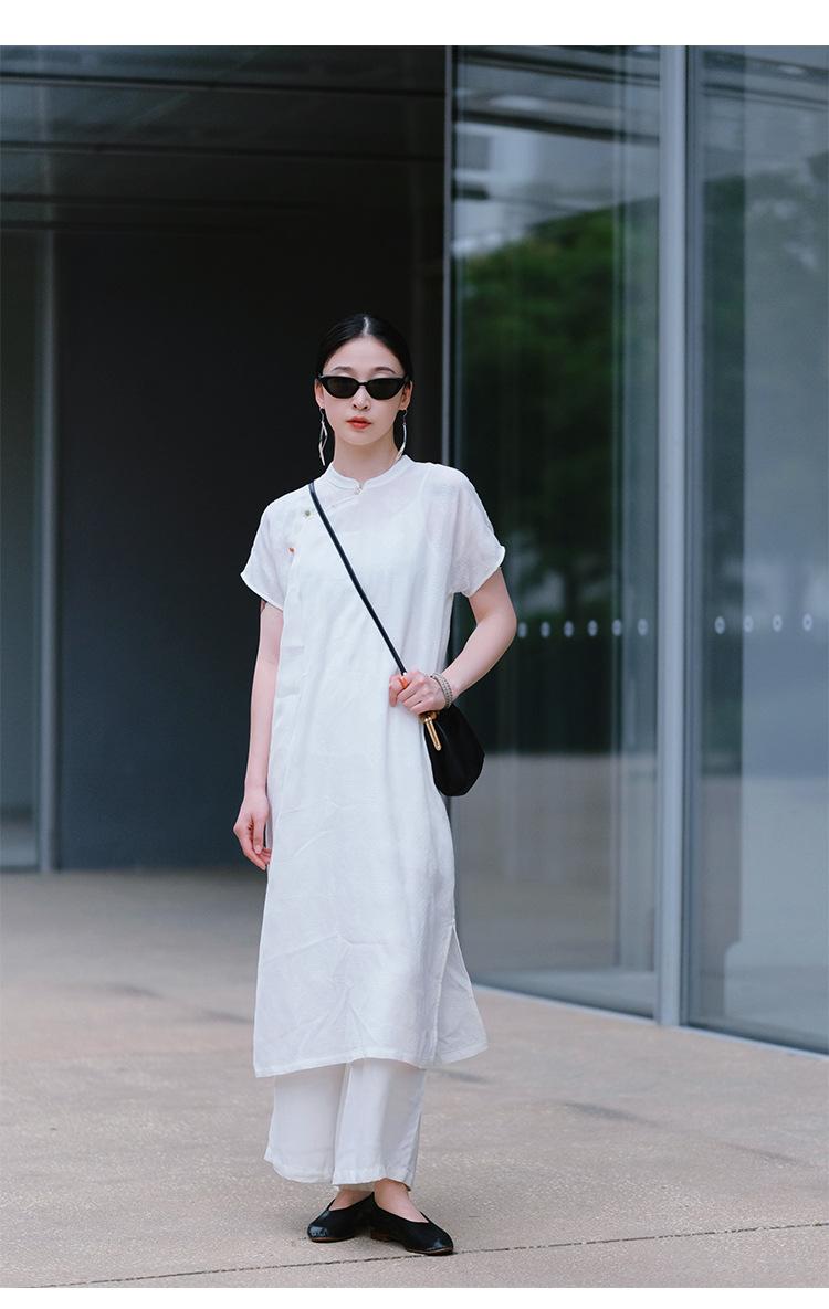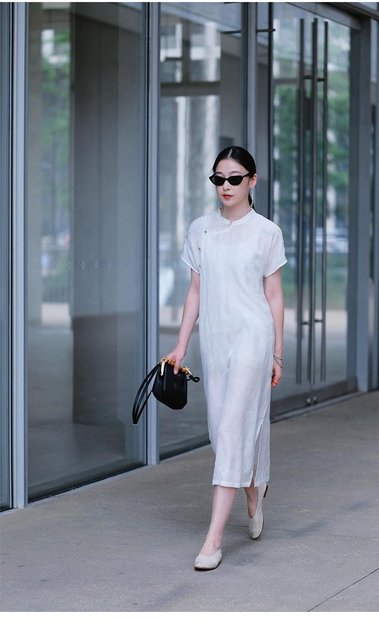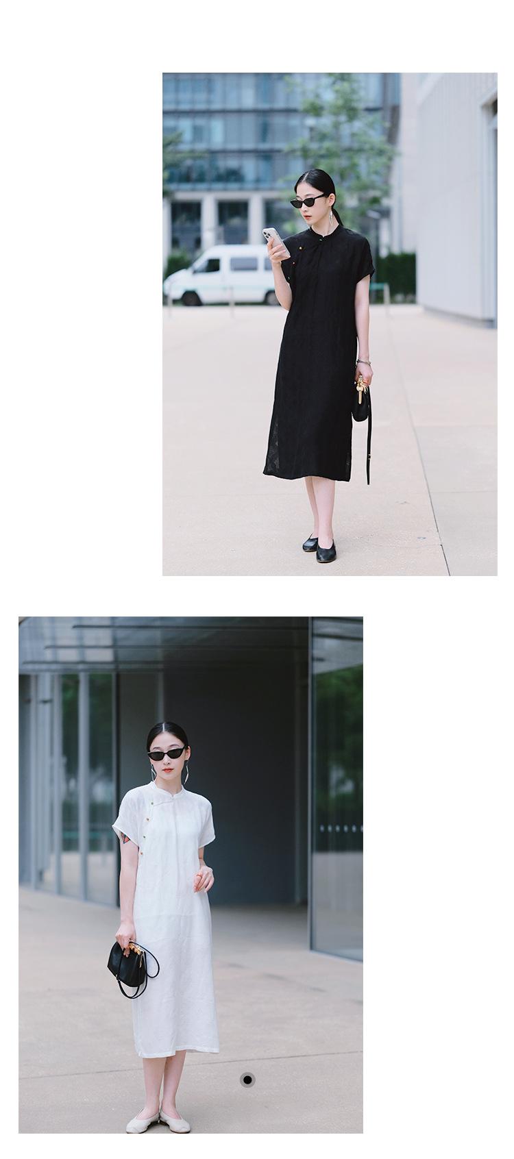Nuevo vestido estilo chino para mujer, primavera y verano, estilo cheongsam modificado, retro, elegante, dividido, bicolor, B0451
