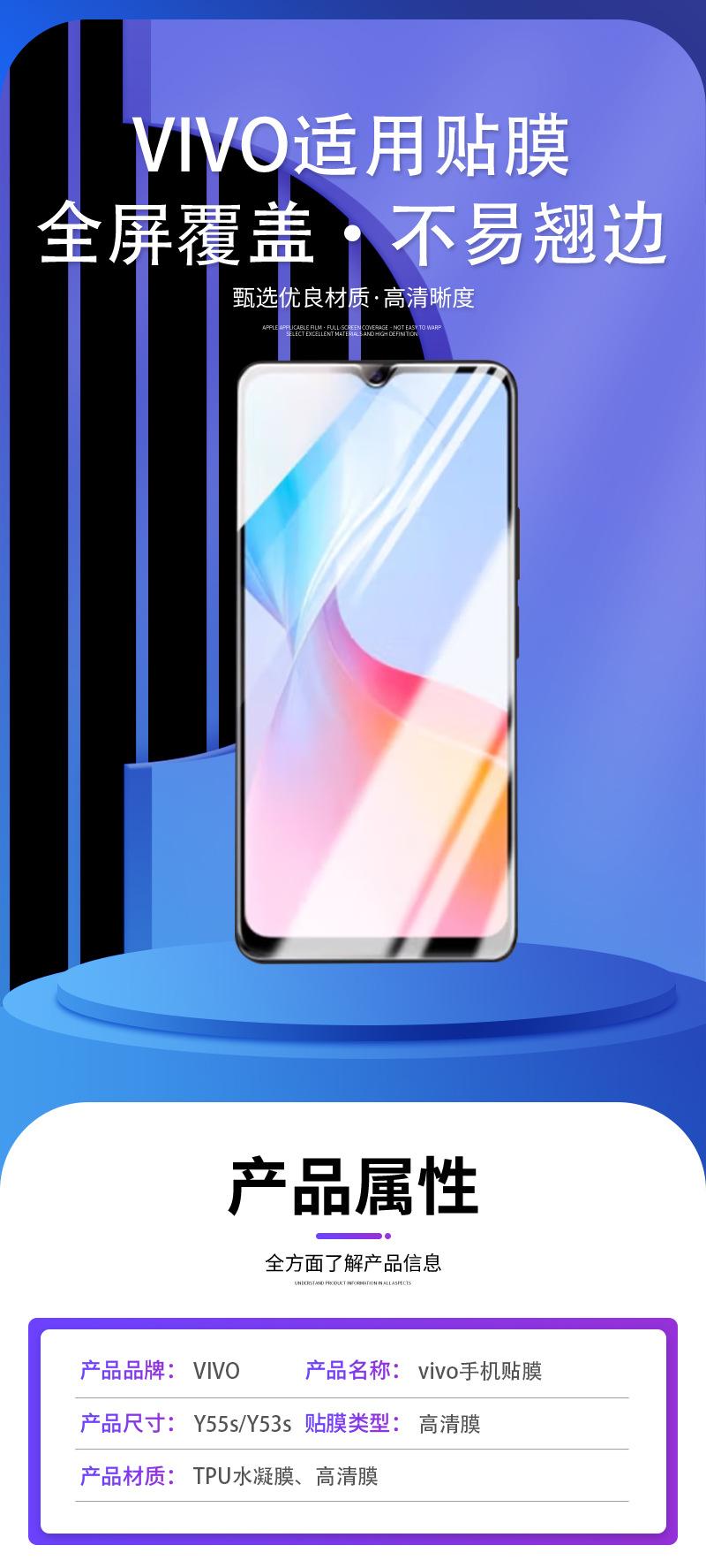 Aplicable a la película transparente del teléfono inteligente VIVO Y55s Y53S película protectora de pantalla completa PET HD a prueba de arañazos 52 en stock