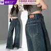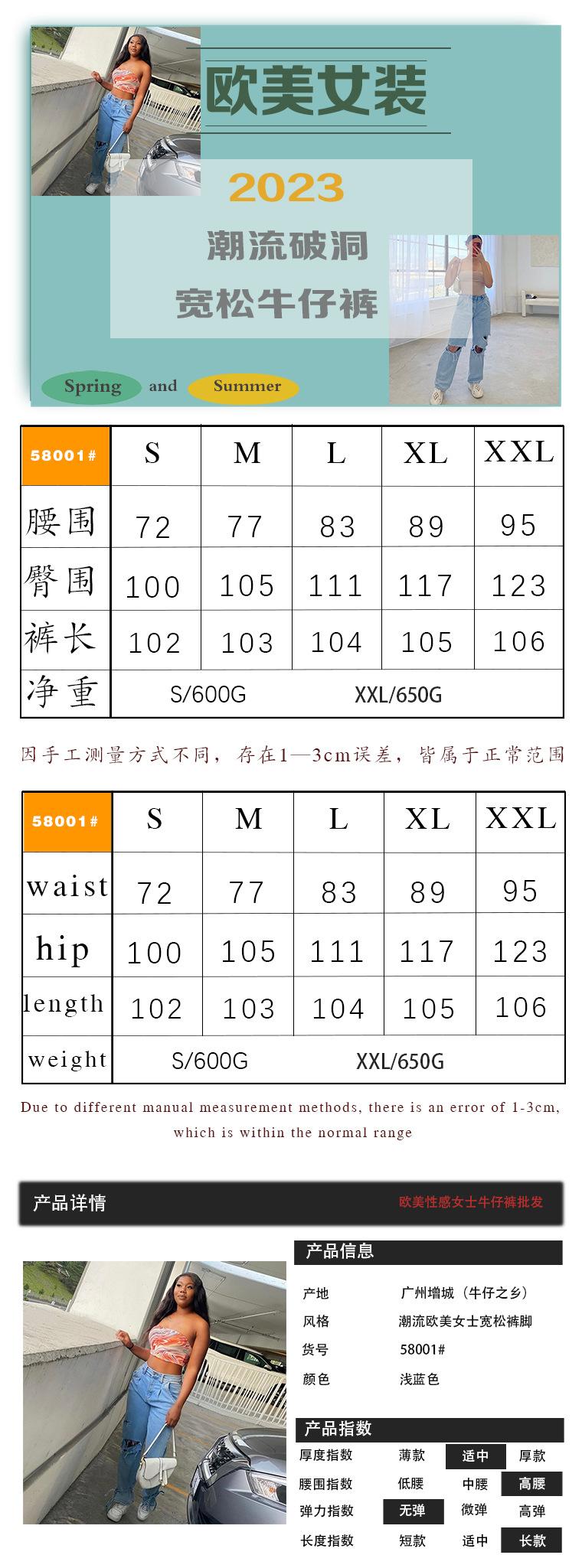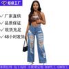 Ventas Directas de Fábrica Jeans Rotos Transfronterizos Europeos y Americanos para Mujer Moda Urbana Cintura Alta Pierna Ancha Denim Pantalones Largos
