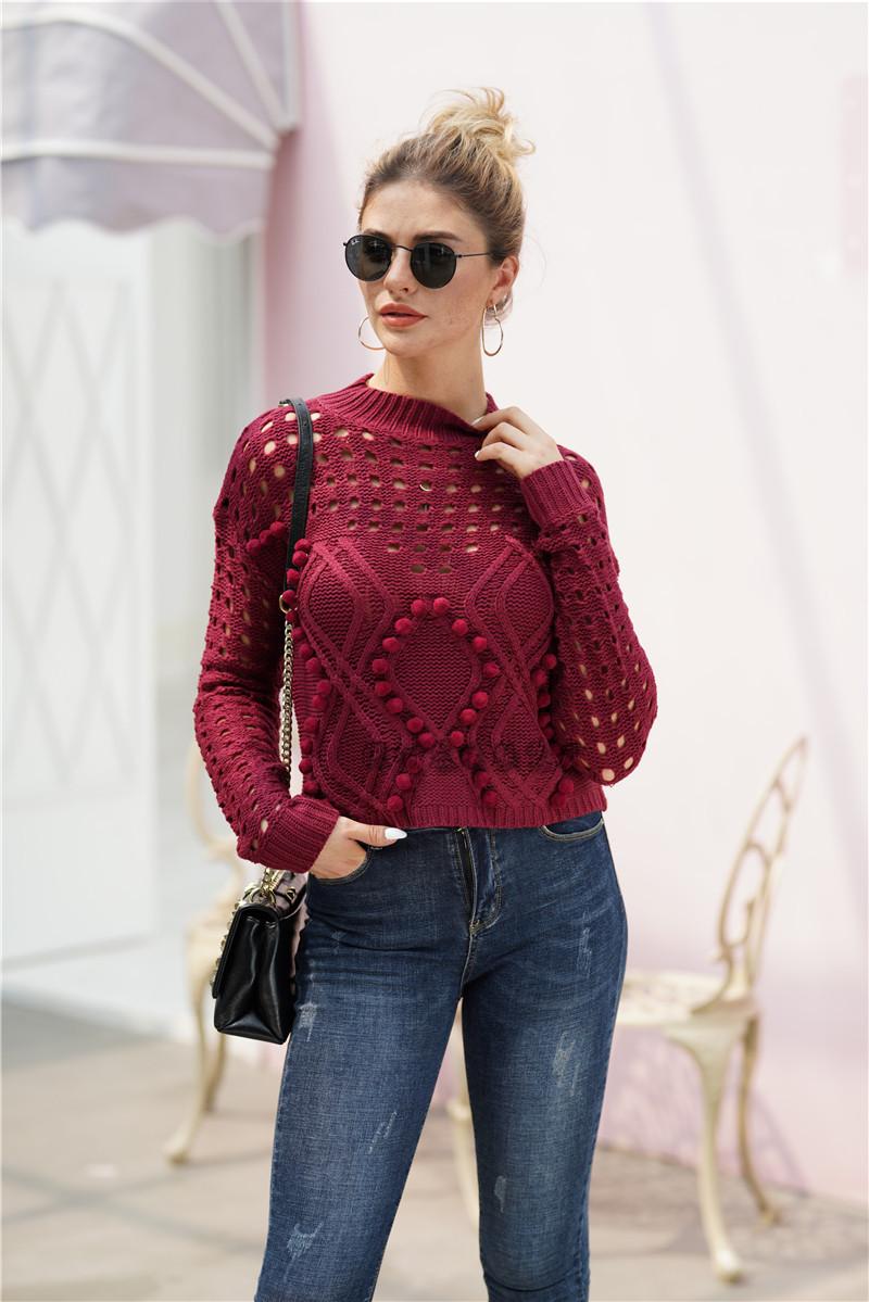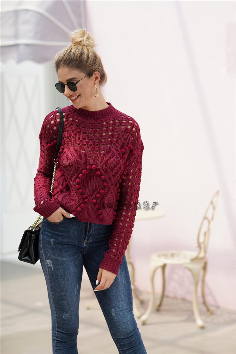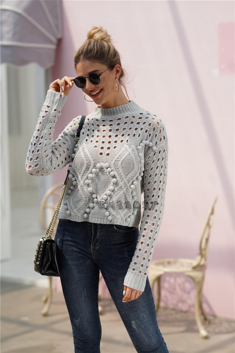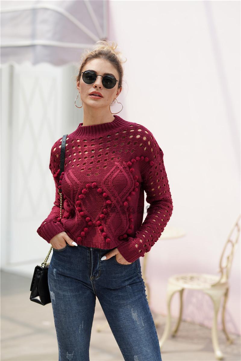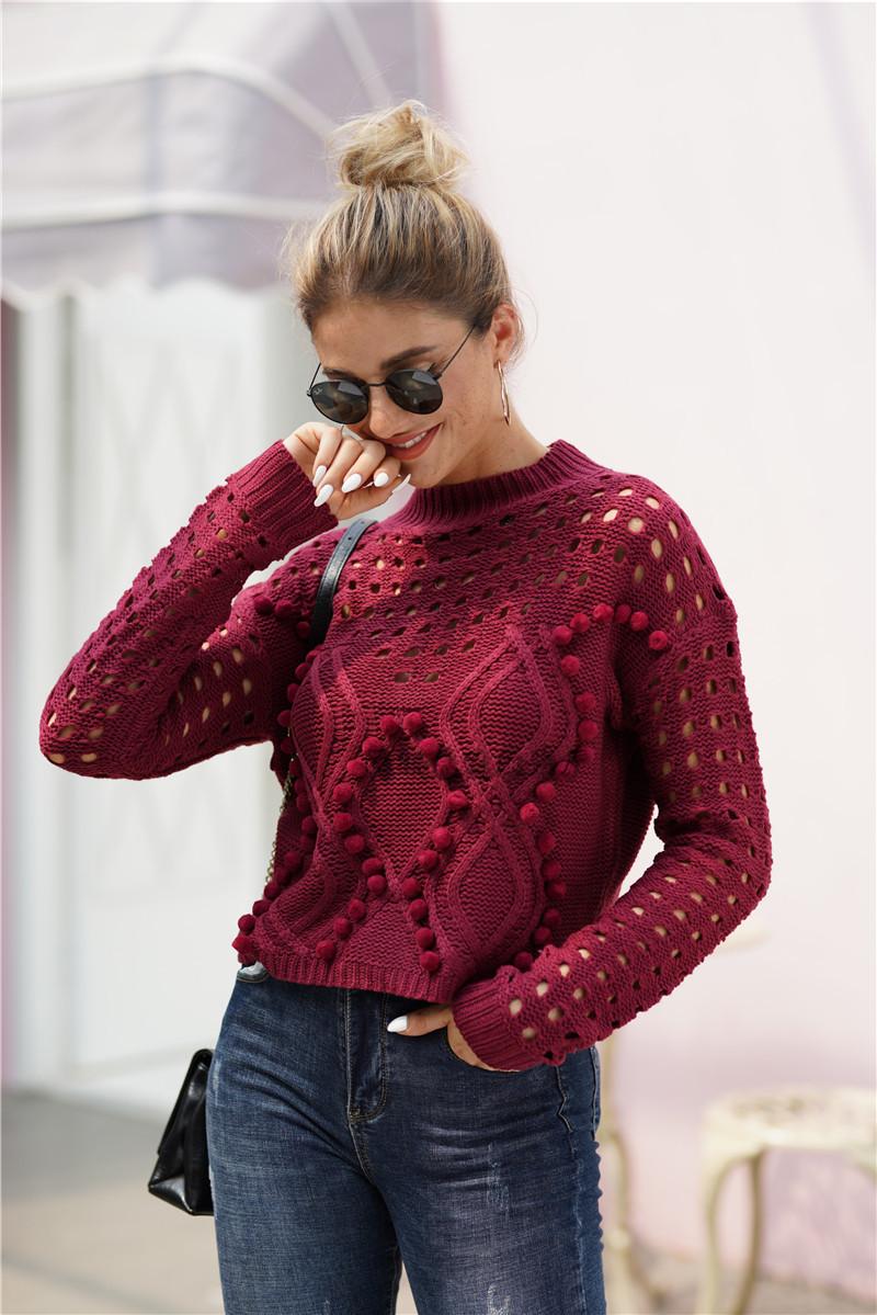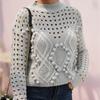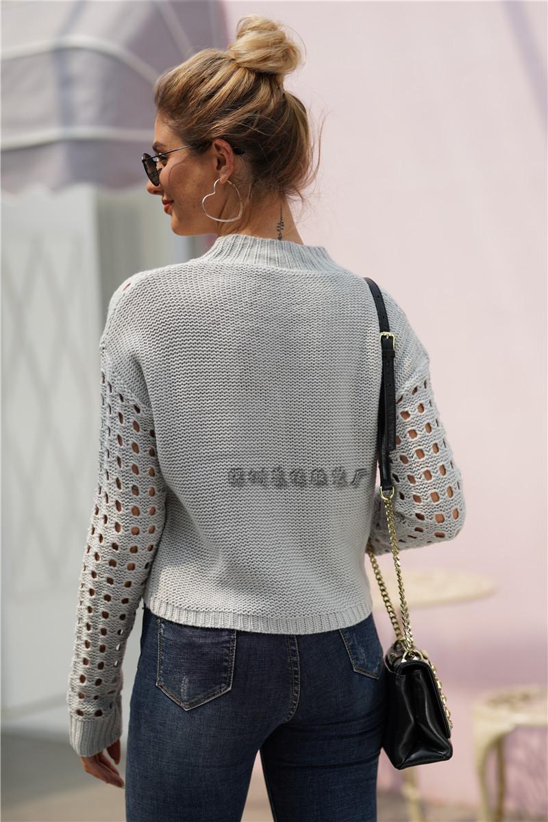 Otoño Transfronterizo Amazon Tejido de Punto Color Sólido Suéter Holgado de Cuello Redondo para Mujer Diseño Patchwork para Mujer Estilo Commuter