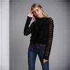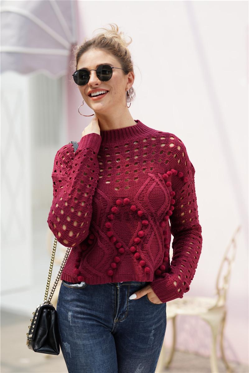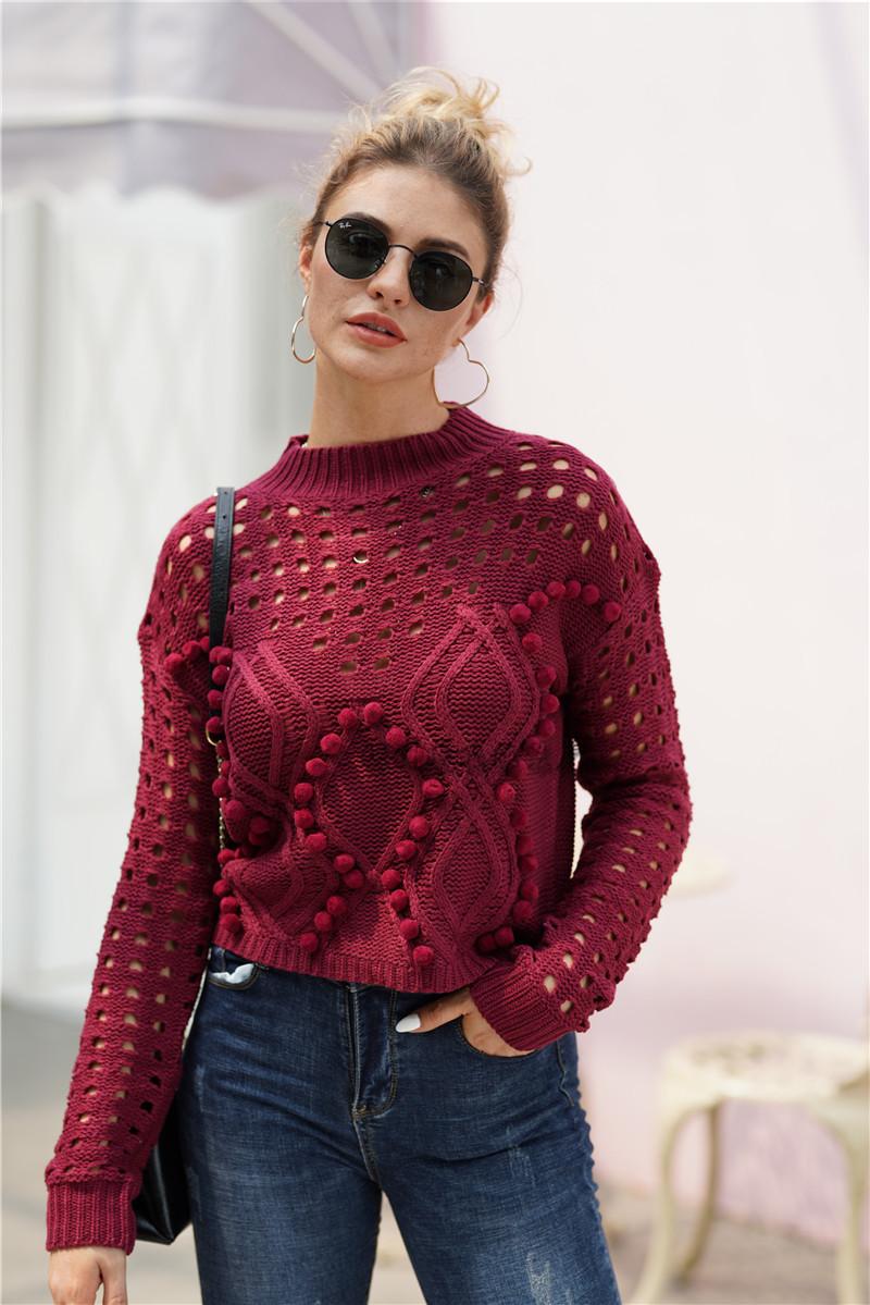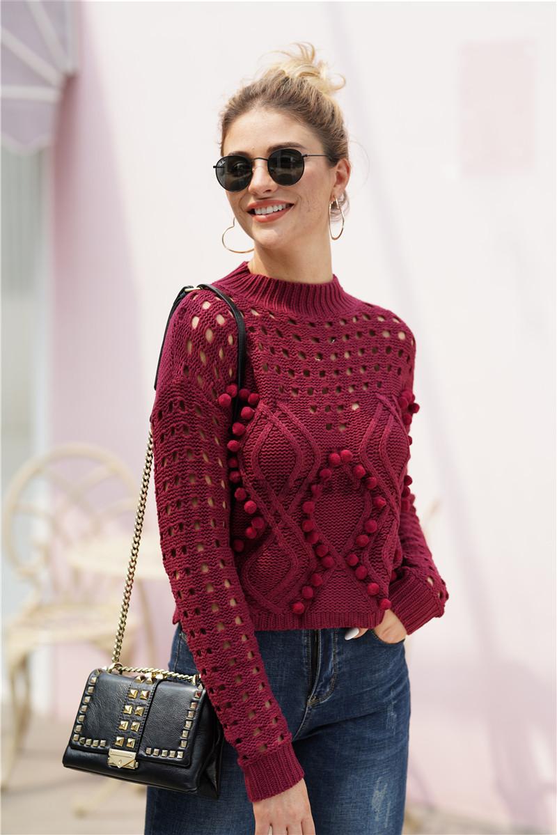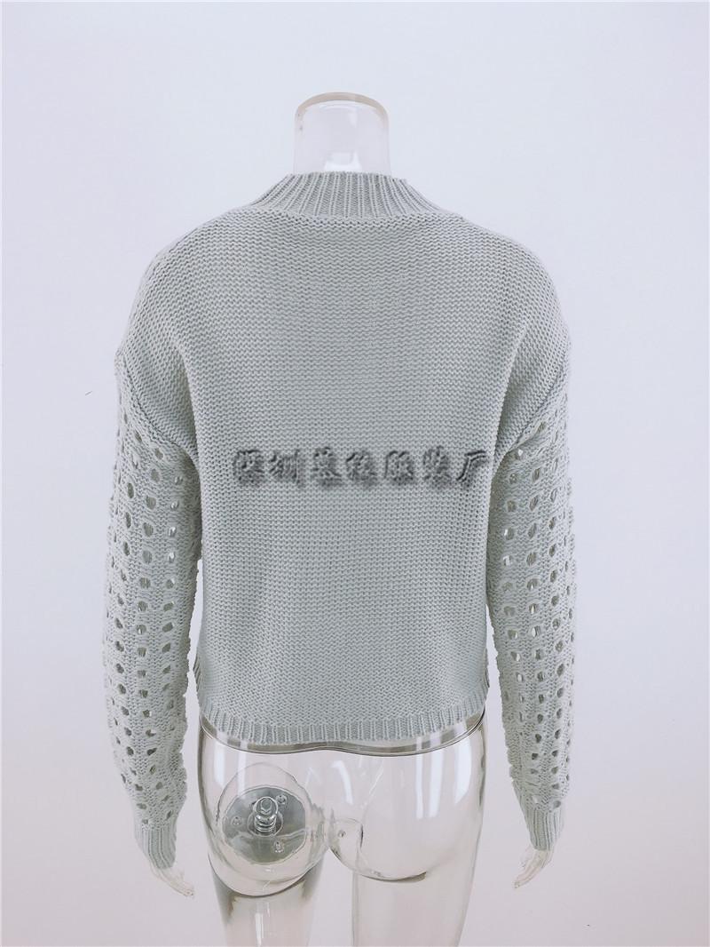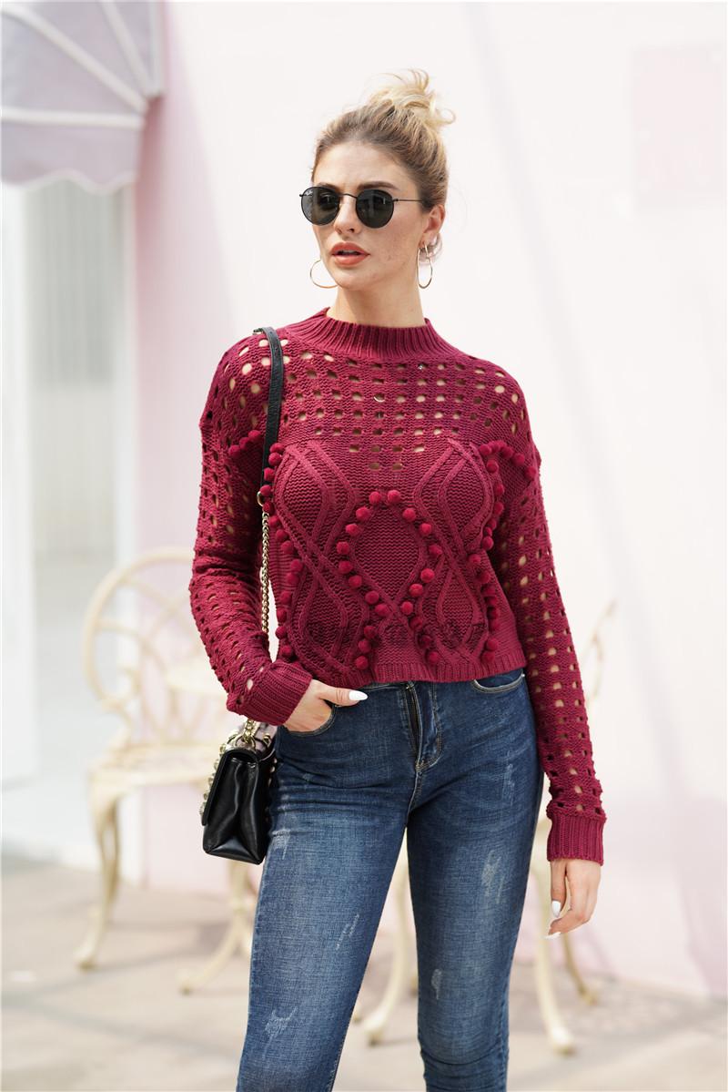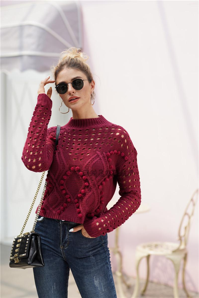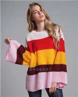 Otoño Transfronterizo Amazon Tejido de Punto Color Sólido Suéter Holgado de Cuello Redondo para Mujer Diseño Patchwork para Mujer Estilo Commuter