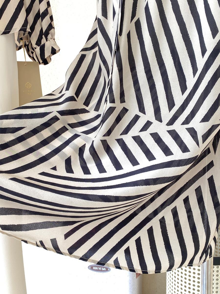 Vestido de seda de manga corta para mujer 2025 primavera y verano nuevo estampado transpirable con cordones 100 seda de morera falda top