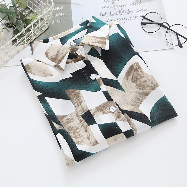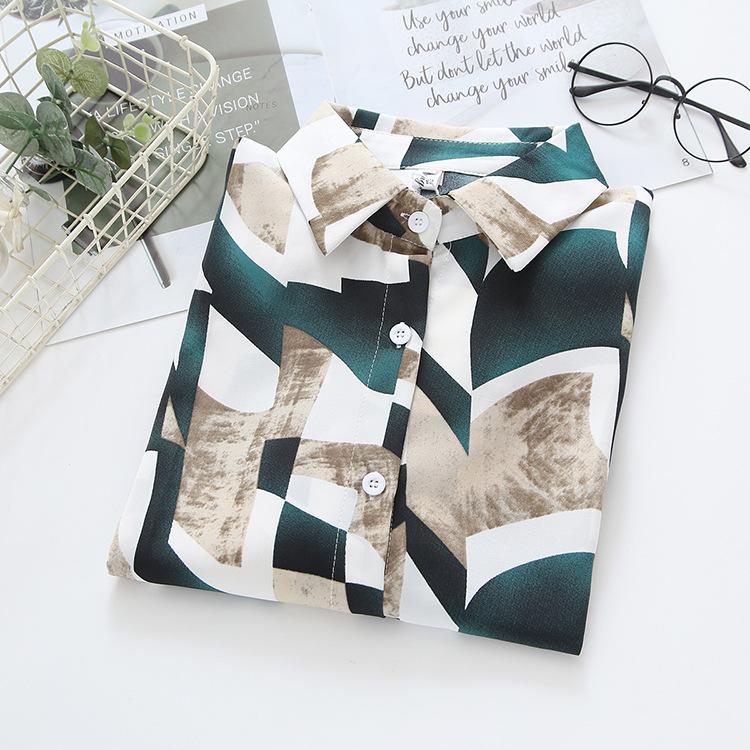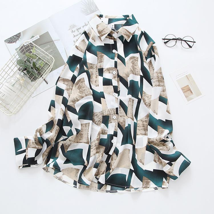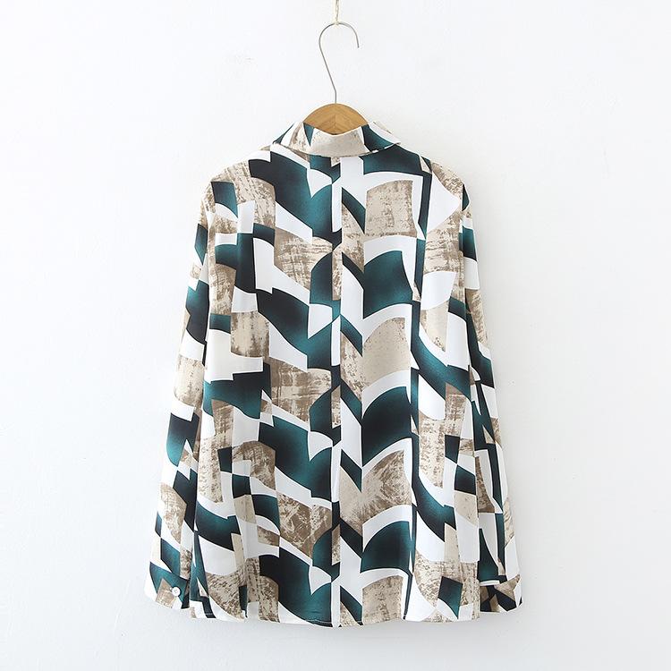 Primavera y Otoño Nuevo estilo temperamento suelto versátil diseño nicho patrón geométrico estampado manga larga camisa de mujer Estilo Hong Kong para mujer
