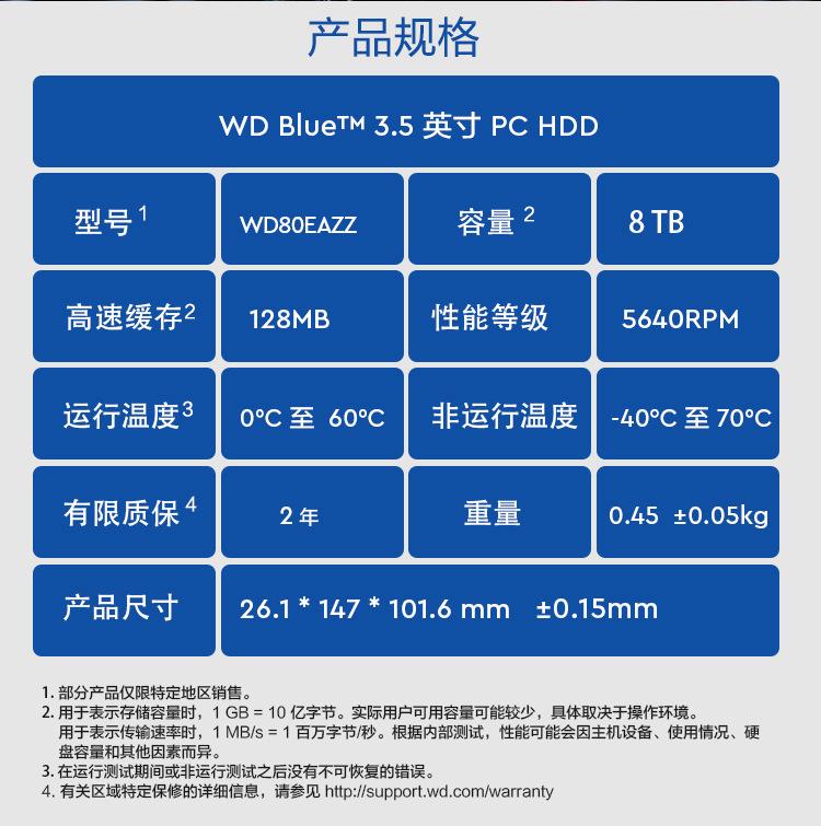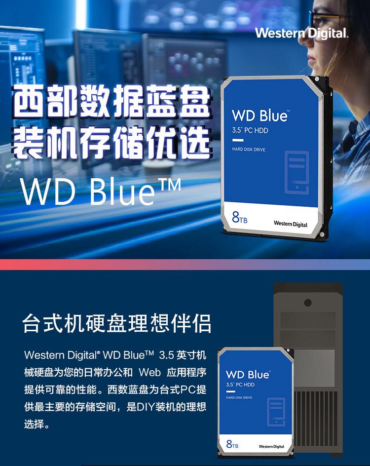 Disco duro mecánico vertical de escritorio Blue Disk de 8 TB, SATA, 128 MB y CMR, nuevo y original. (Wd8