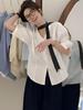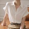 2 023 Nueva camisa elegante de gasa con cuello en V de estilo coreano para mujer, blusa de manga corta, camisa básica sencilla de color sólido que combina con todo, de moda