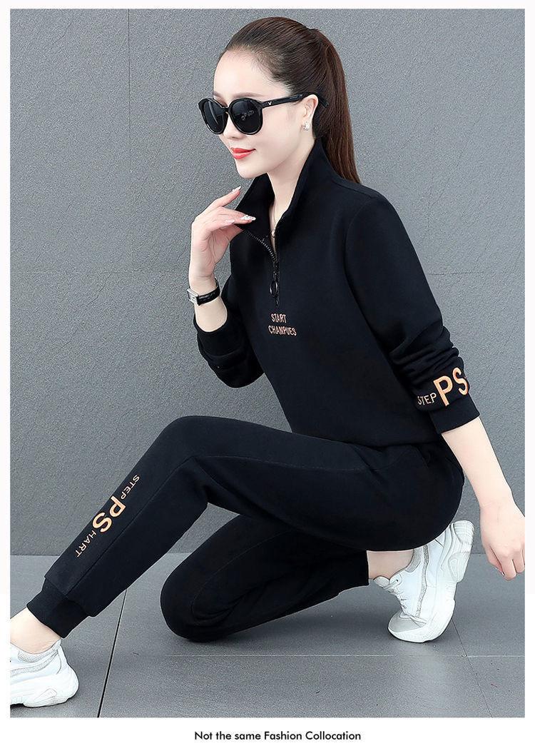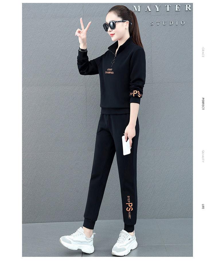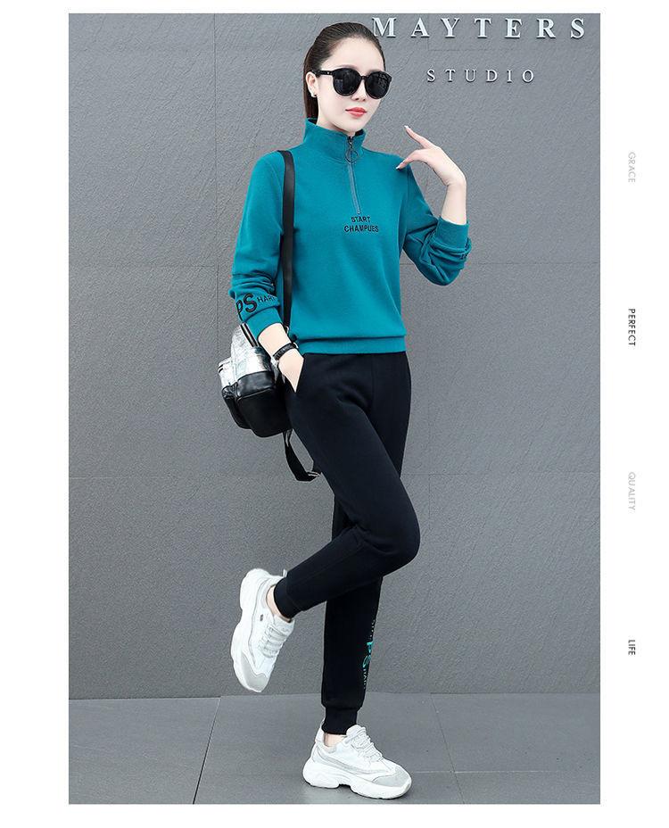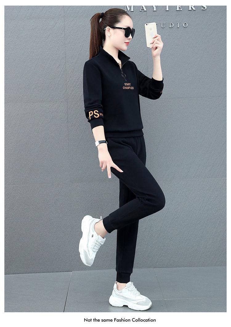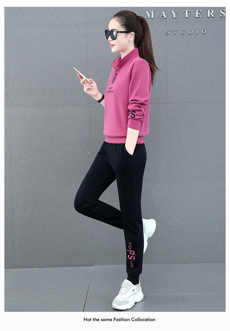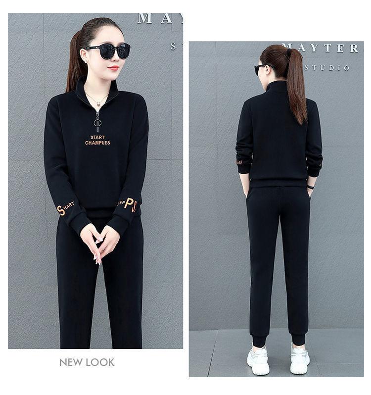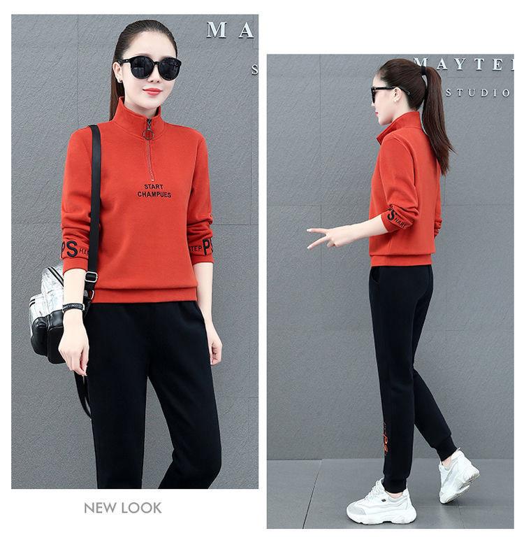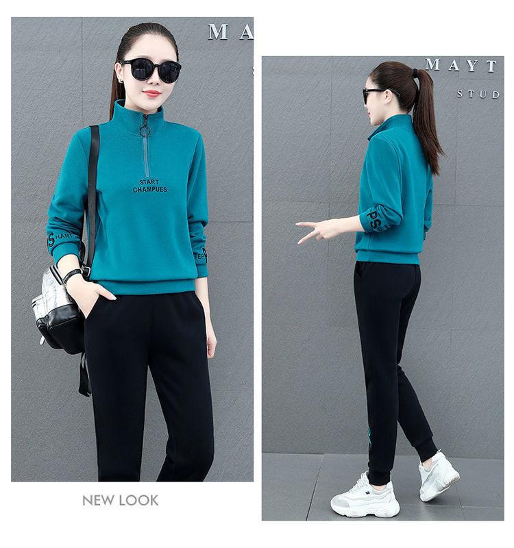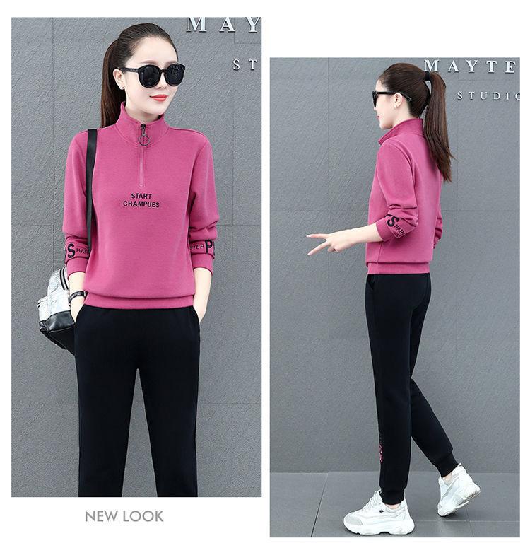 Traje deportivo para mujer, otoño 2021, nueva moda, cuello de aterrizaje, manga larga, traje de correr informal, suéter de mujer, dos piezas, de moda