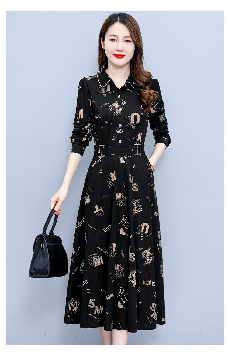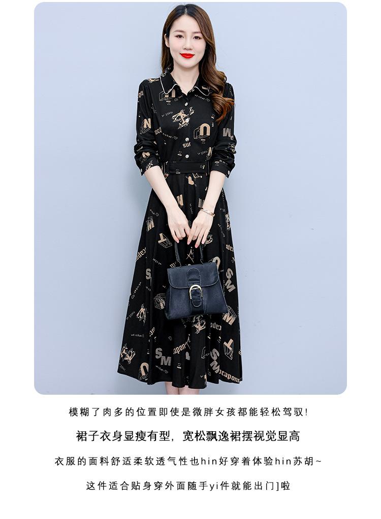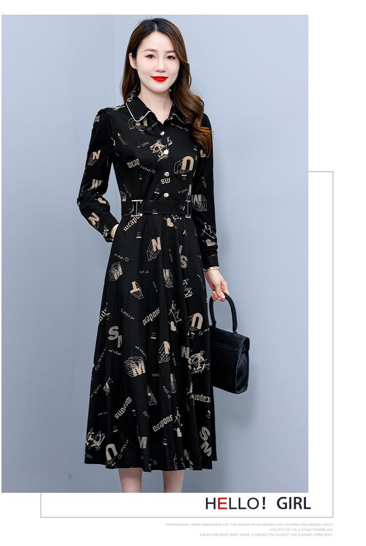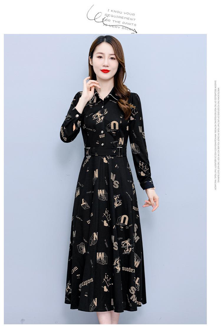 Vestido ajustado vintage estampado estilo coreano para mujer, otoño 2023, nuevo, elegante, de moda, de longitud media, con cintura ajustada y cordones.