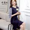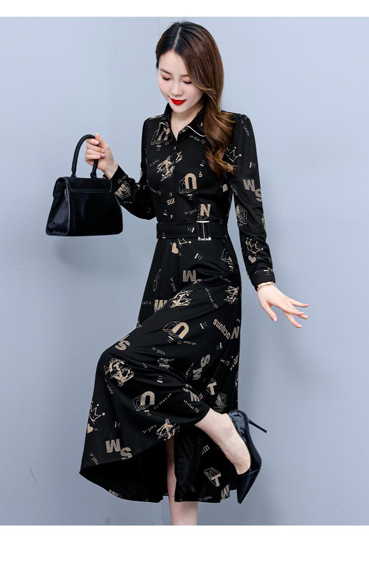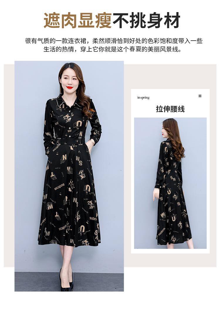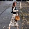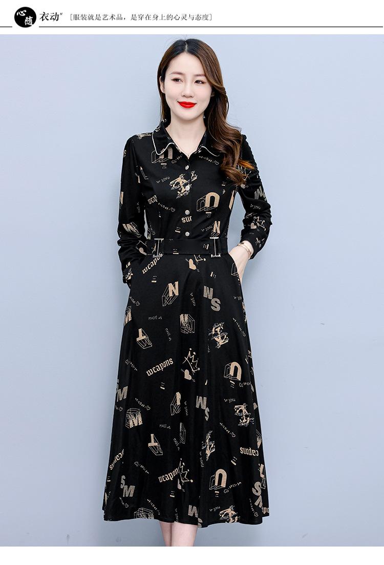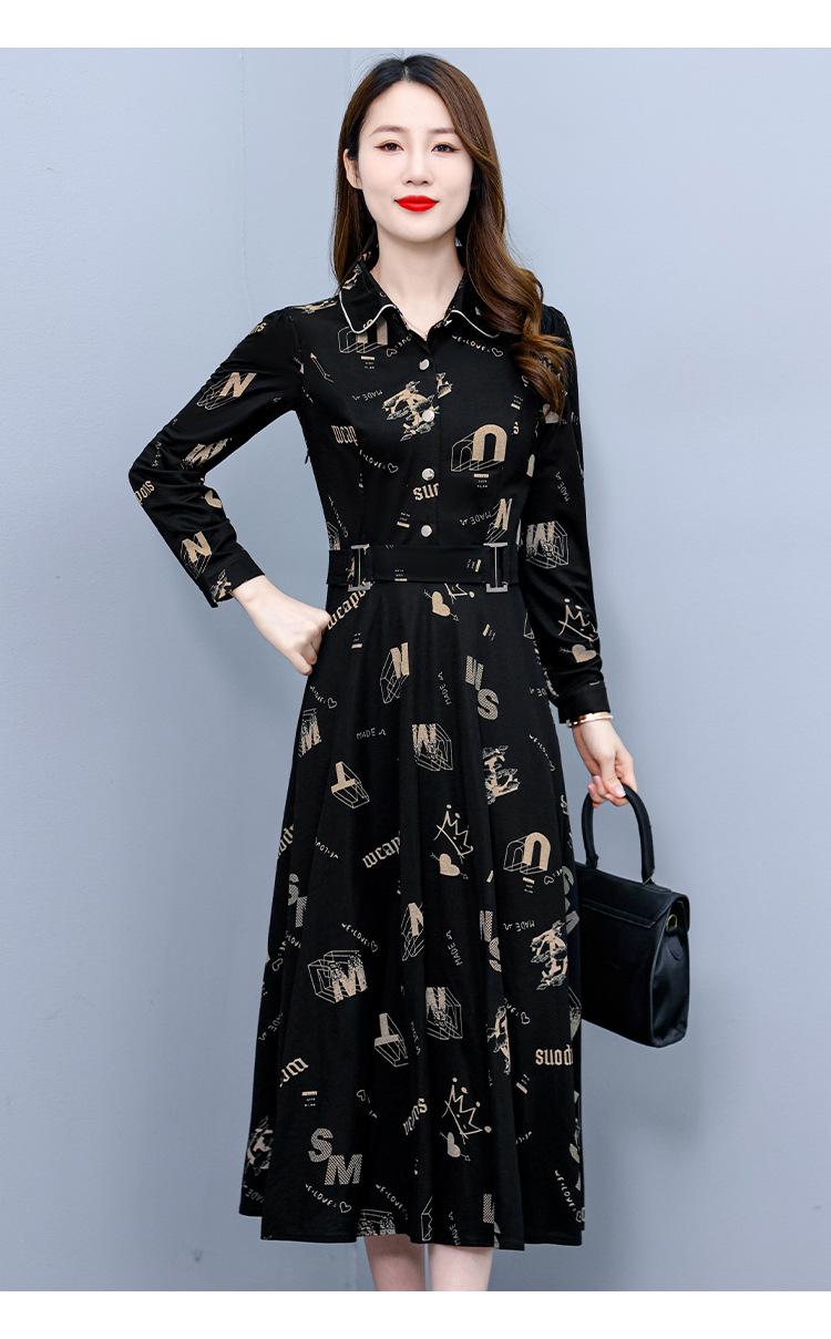 Vestido ajustado vintage estampado estilo coreano para mujer, otoño 2023, nuevo, elegante, de moda, de longitud media, con cintura ajustada y cordones.