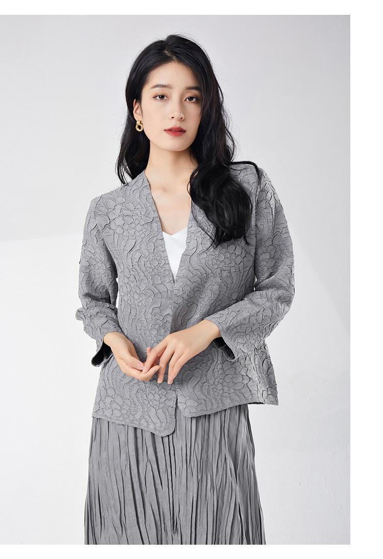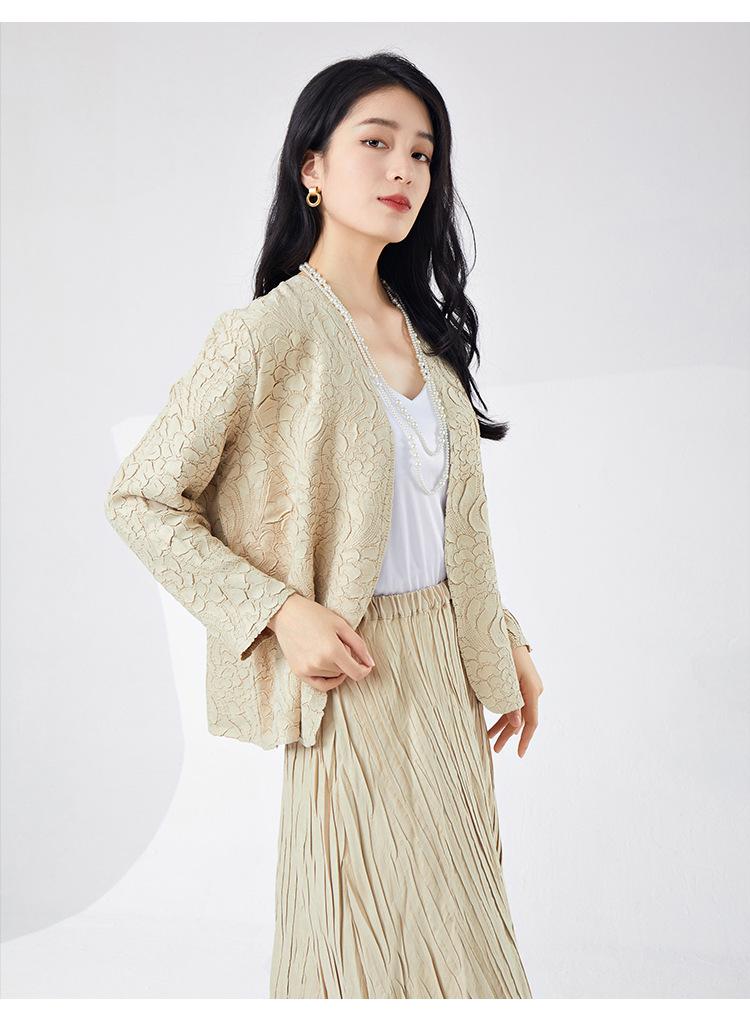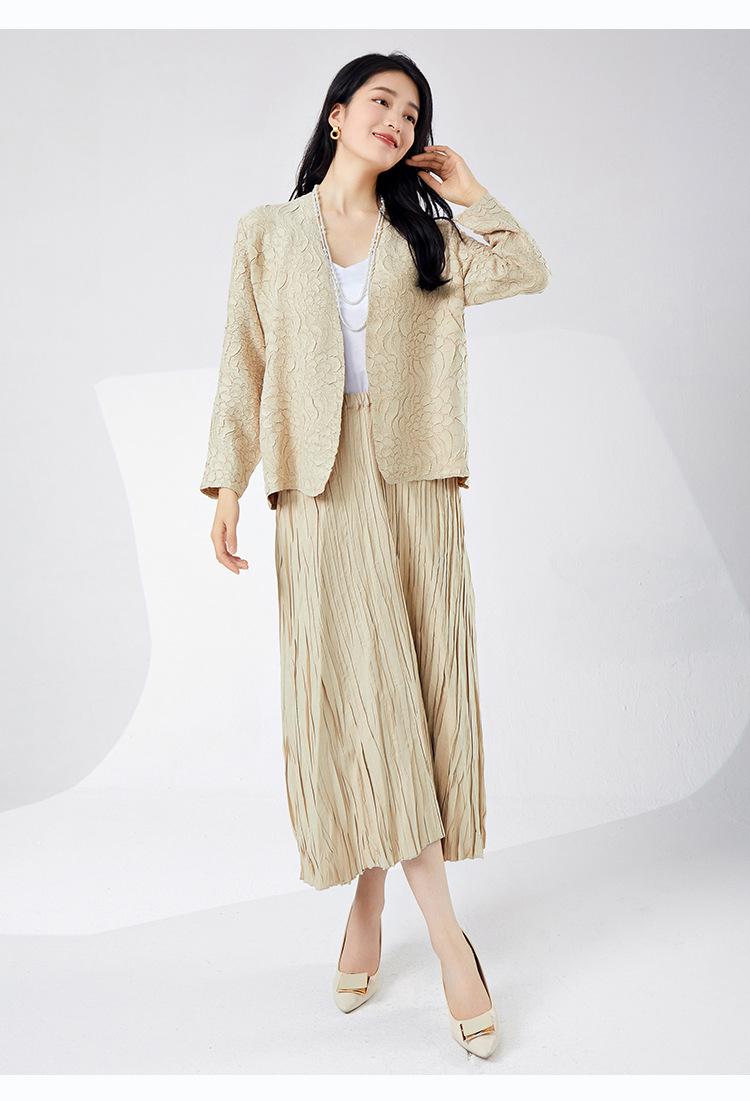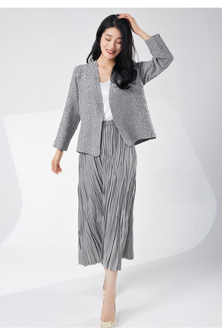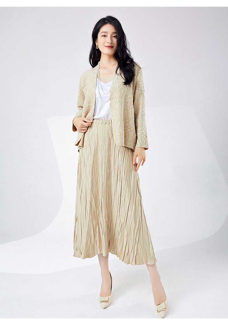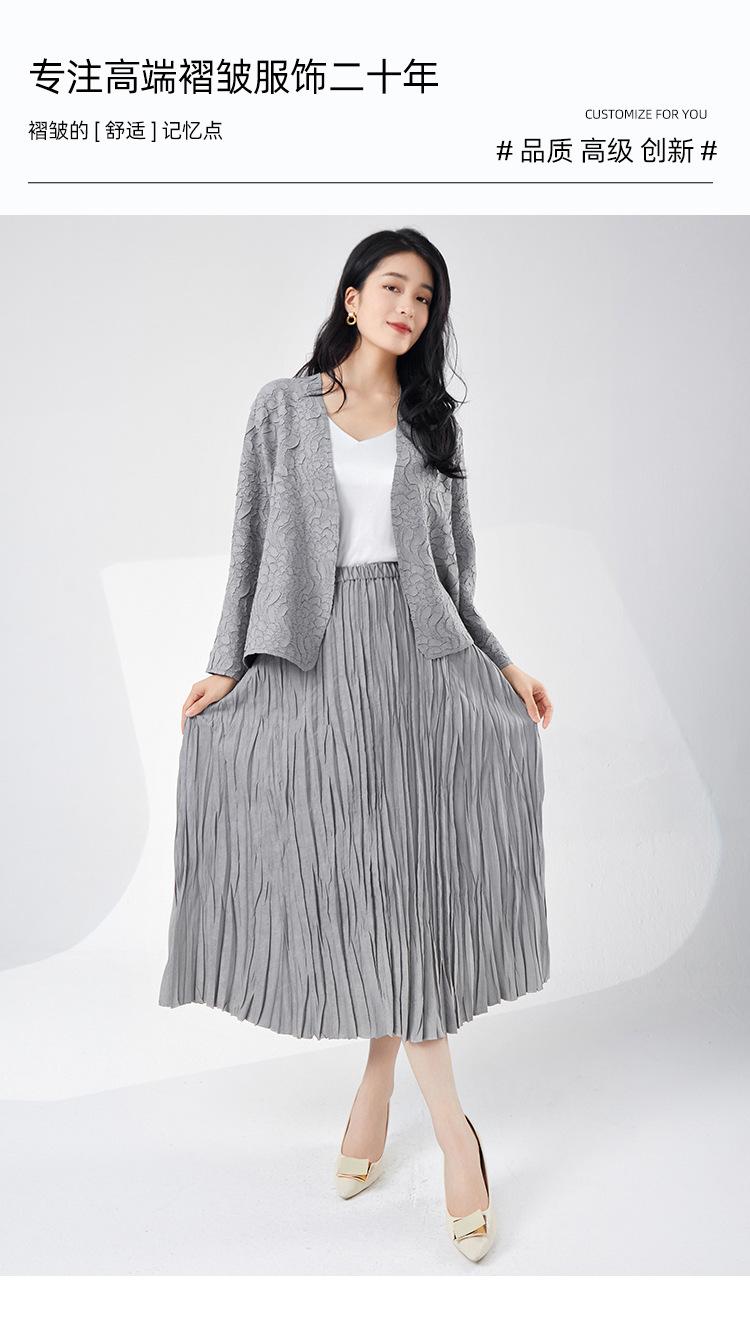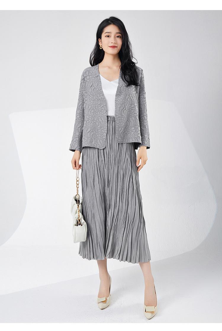 Vestido de mujer de alta gama, cárdigan de diseño de primavera para mujer, abrigo, falda de longitud media, conjunto plisado de dos piezas a juego.