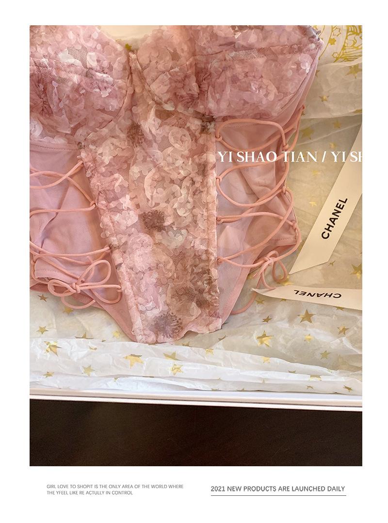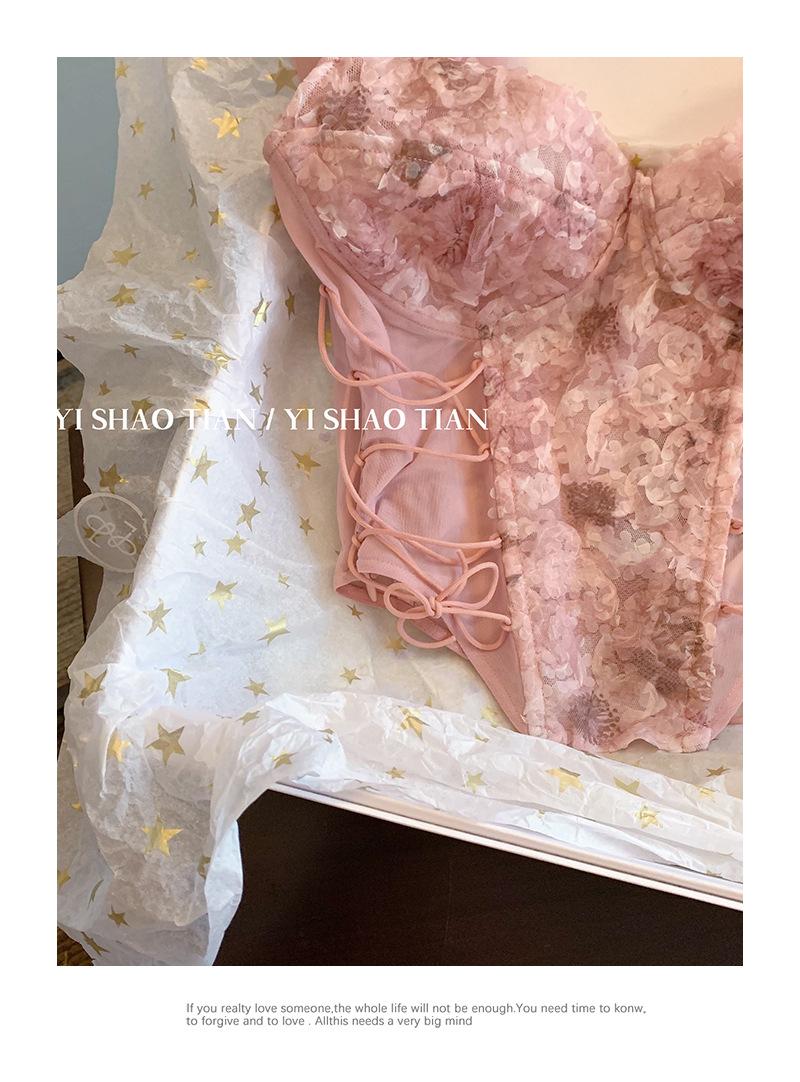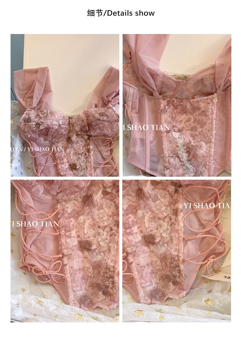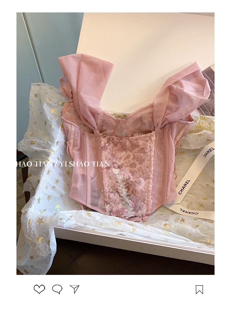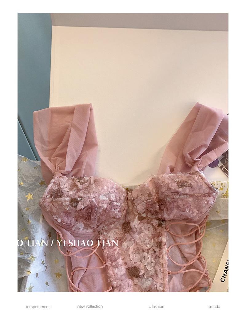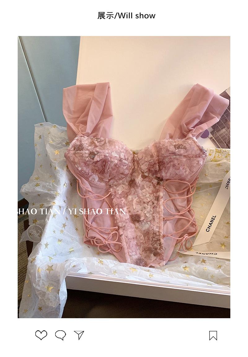 Camisola de encaje rosa estilo Pure Desire para mujer, novedad de verano 2023, estilo francés, sexy, estilo Spice Girl, prenda exterior ajustada.