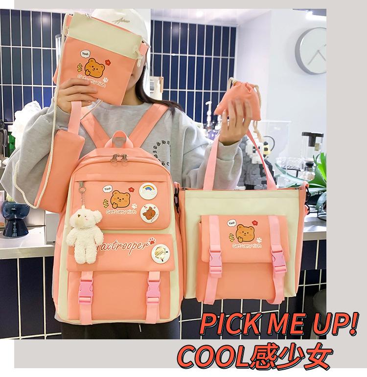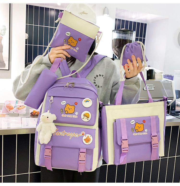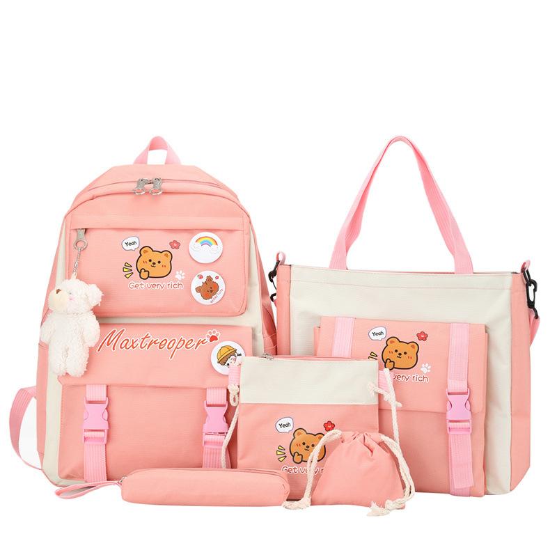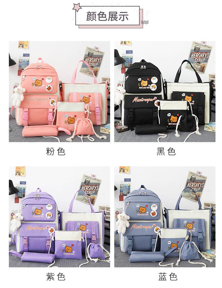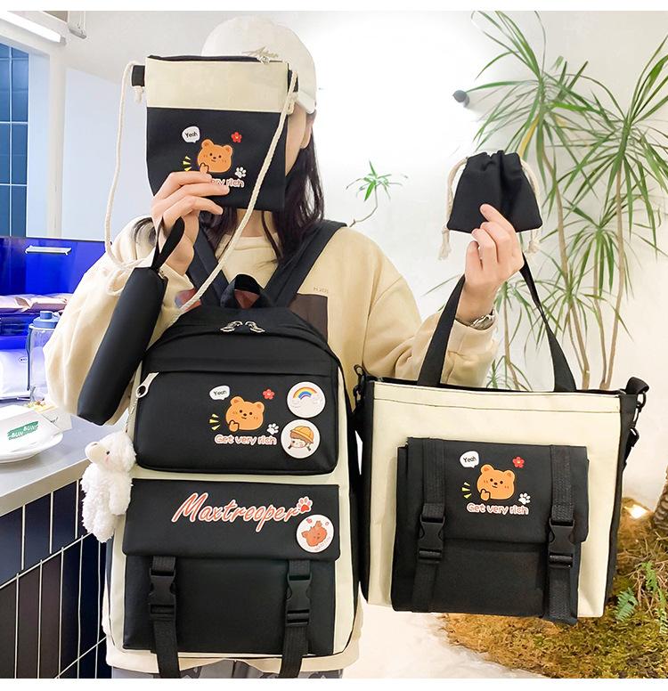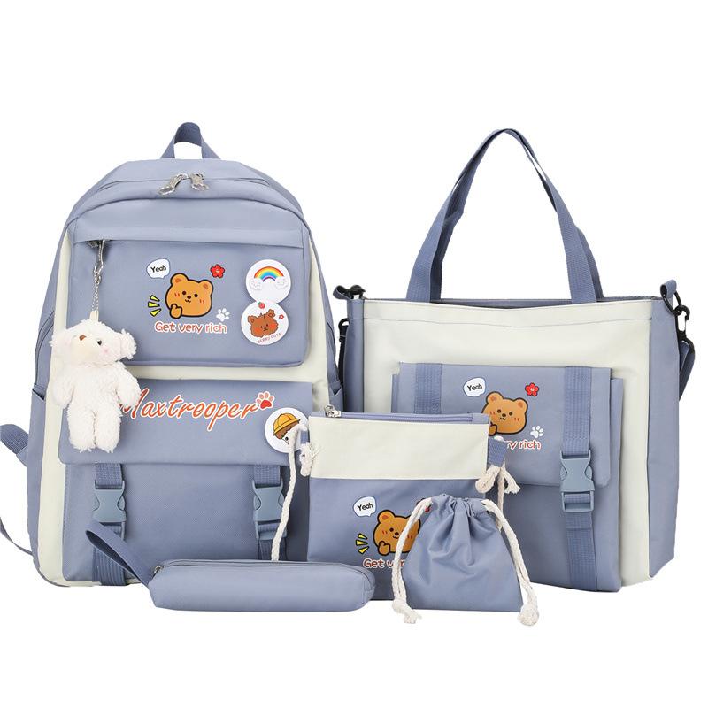 Mochila escolar estudiantil de cinco piezas 2024 Nueva mochila de campus bolso de entrenamiento nylon color de contraste mochila grande