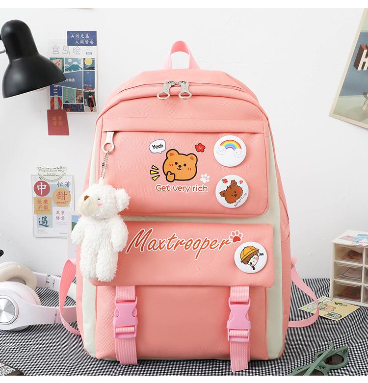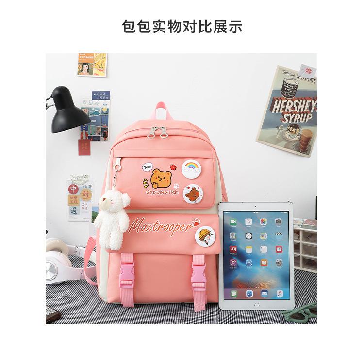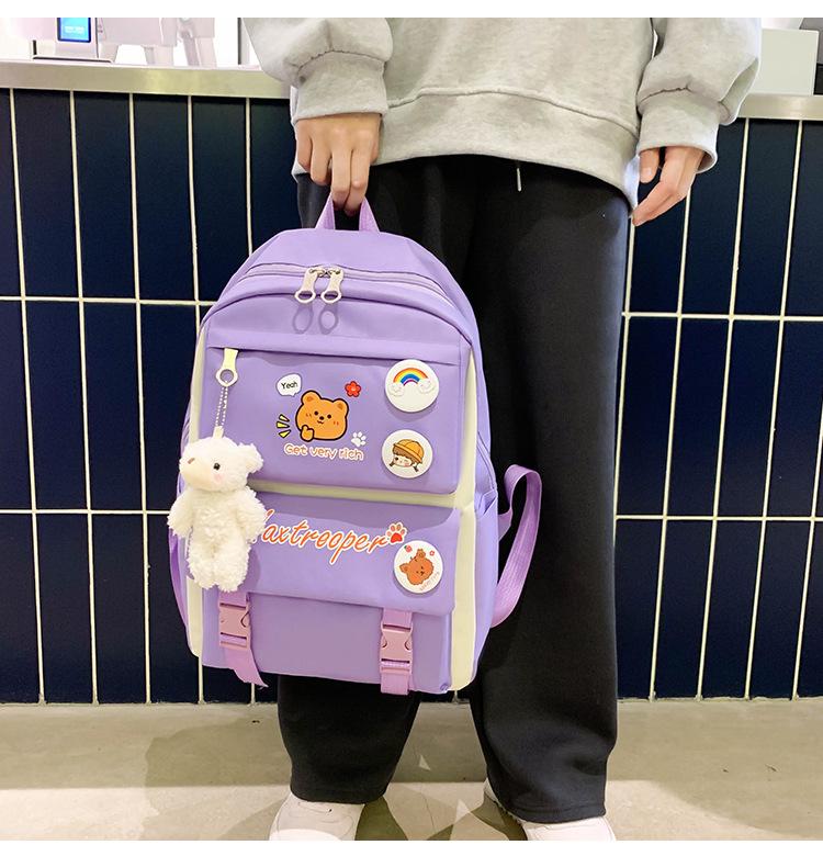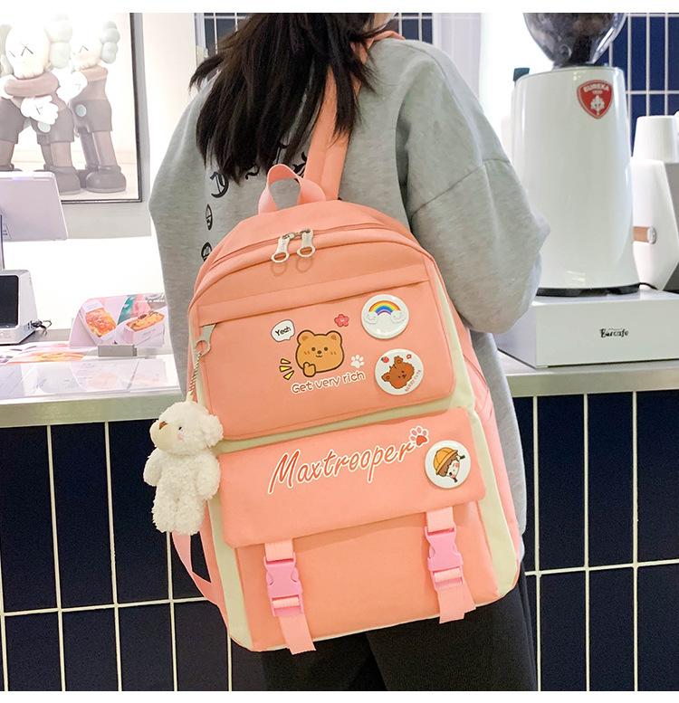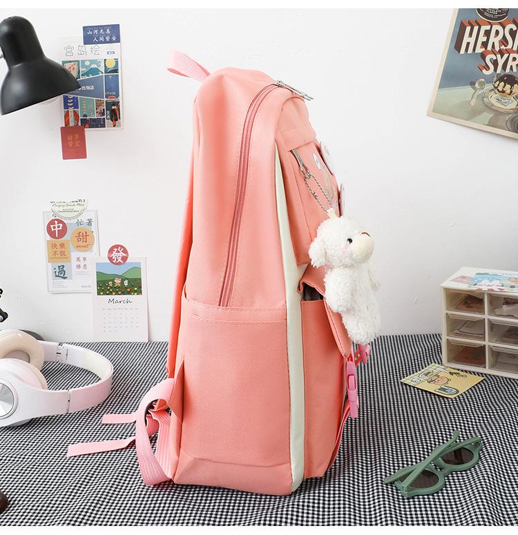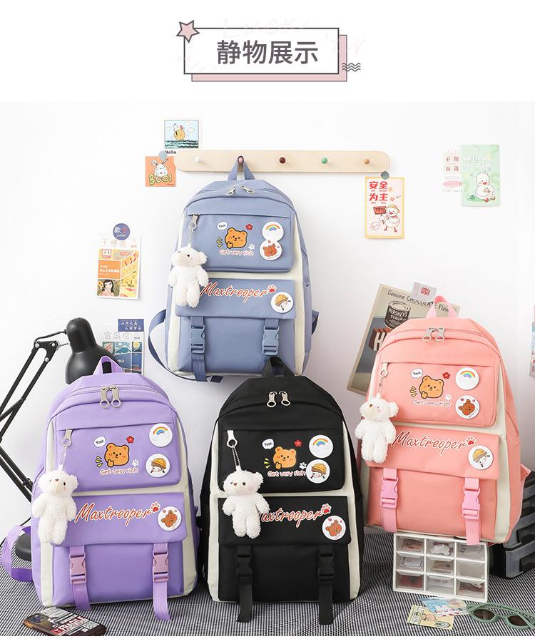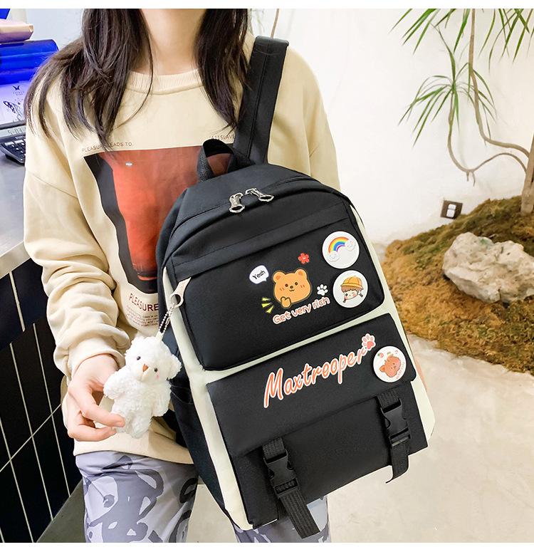Mochila escolar estudiantil de cinco piezas 2024 Nueva mochila de campus bolso de entrenamiento nylon color de contraste mochila grande