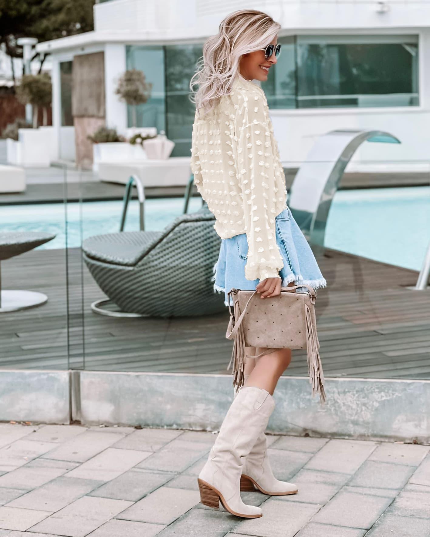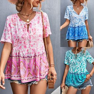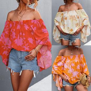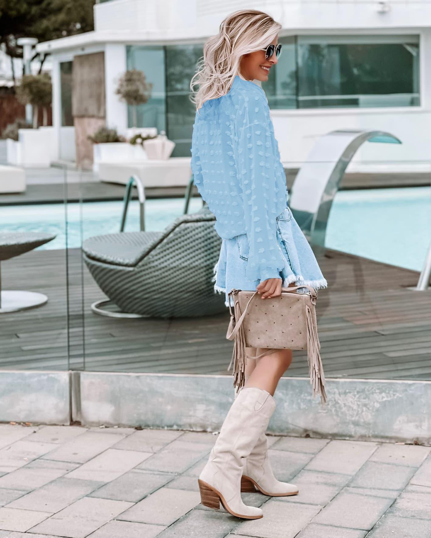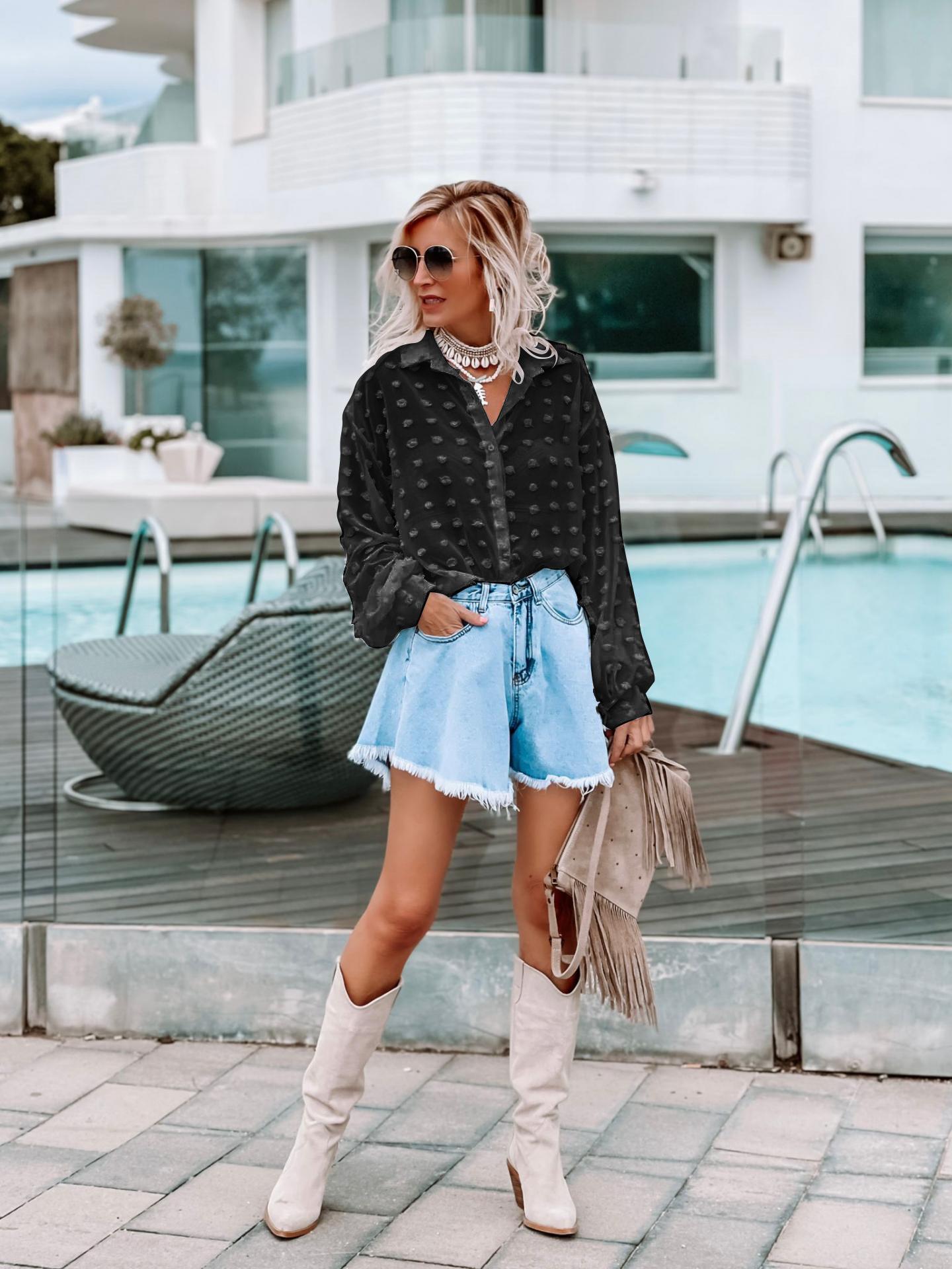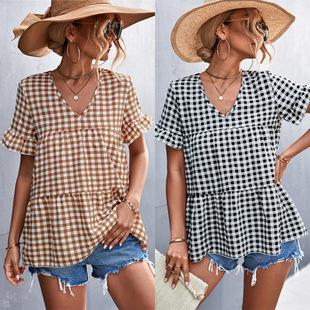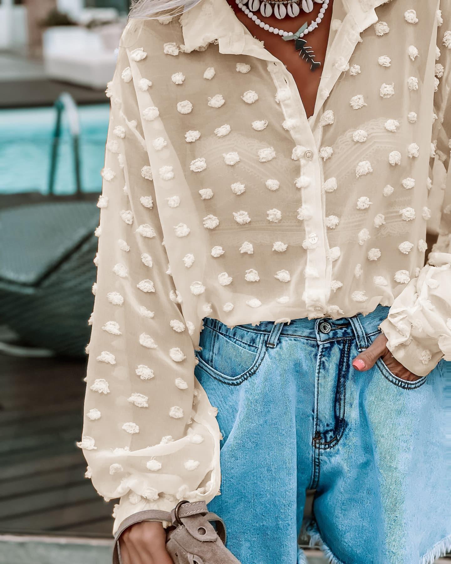 Primavera y Otoño 2022 Transfronterizo Amazon wish Venta Caliente Color Sólido Cuello en V Jacquard Manga Larga Camisa Top Mujer