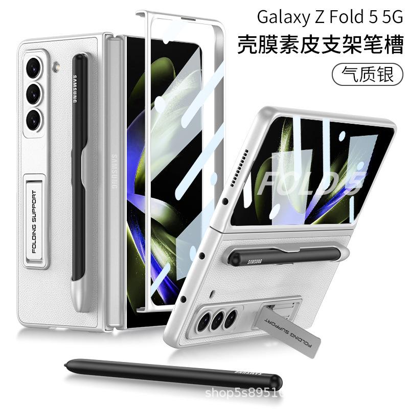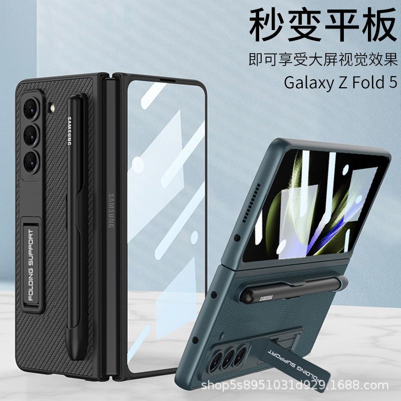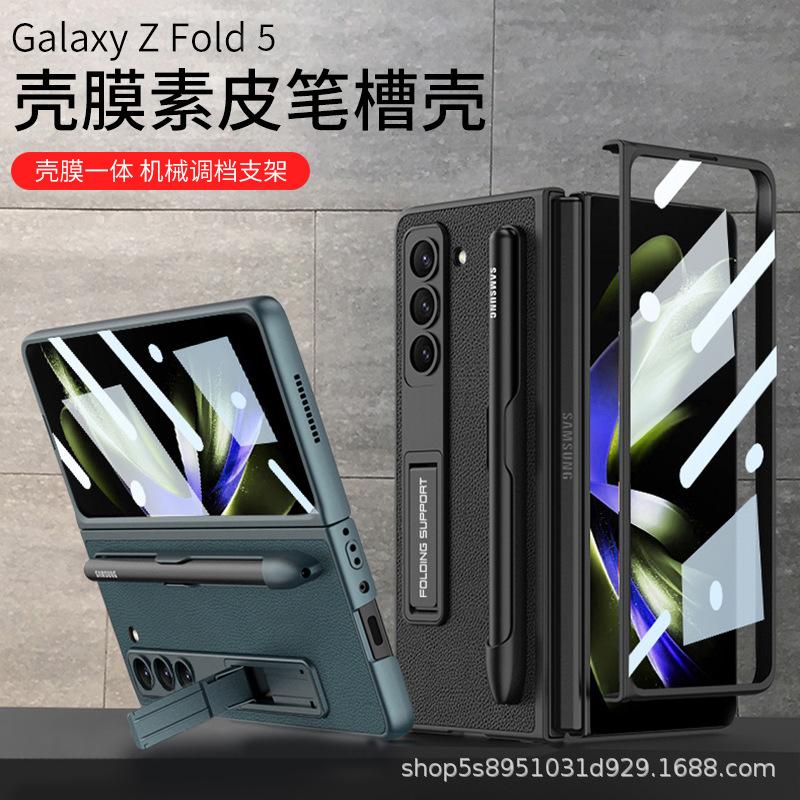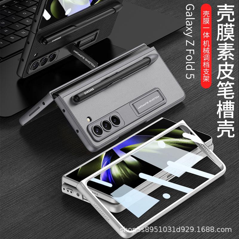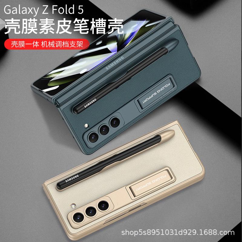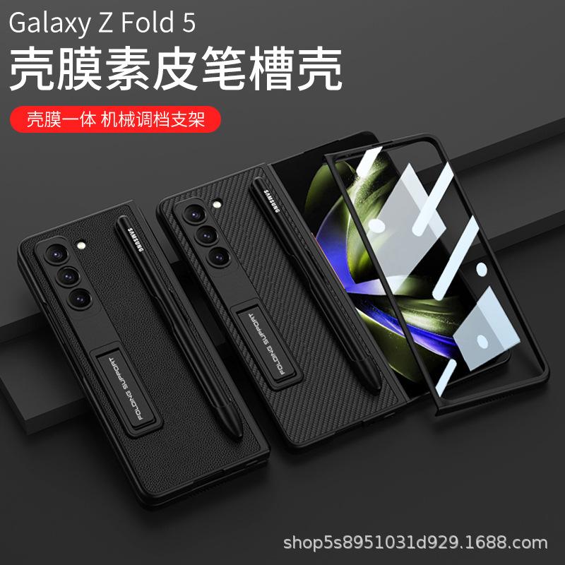 Para Samsung SM-Fold5 funda para teléfono móvil película integrada ultrafina piel lisa soporte ajustable ranura para bolígrafo cubierta protectora