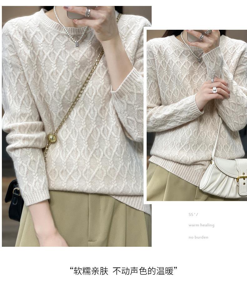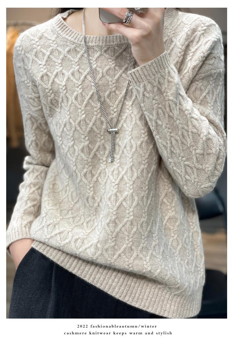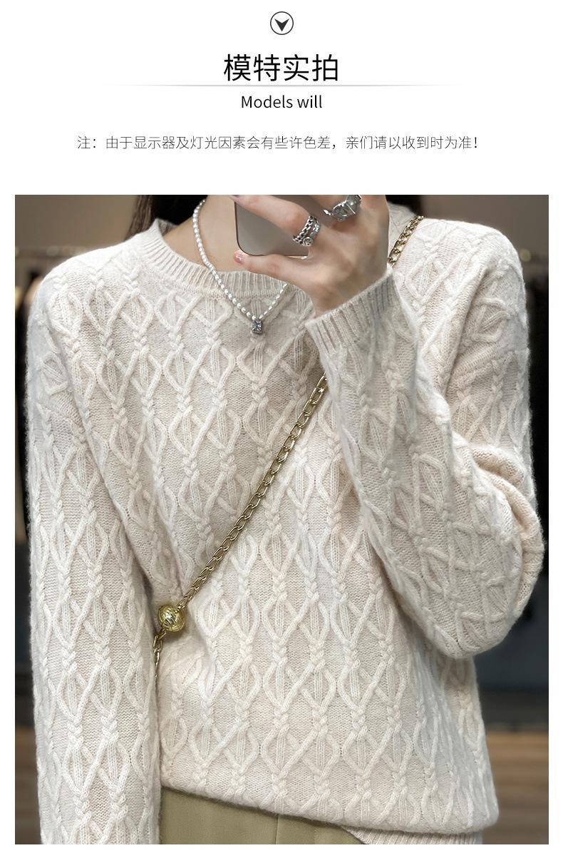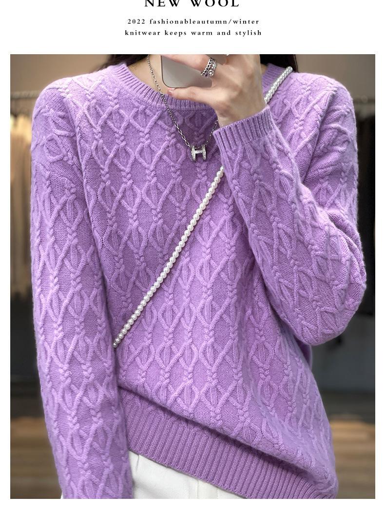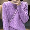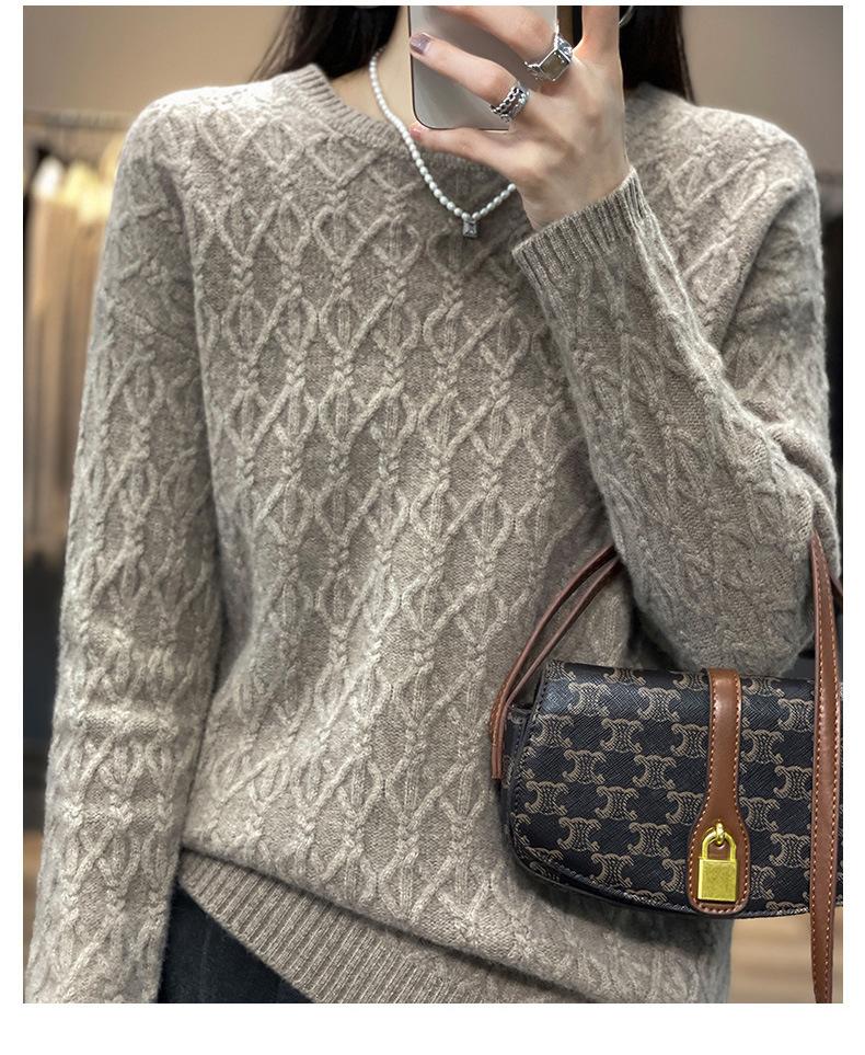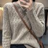 Runshi suéter de lana pura de cuello redondo de manga larga, jersey trenzado holgado, camisa básica versátil, otoño e invierno Nuevo