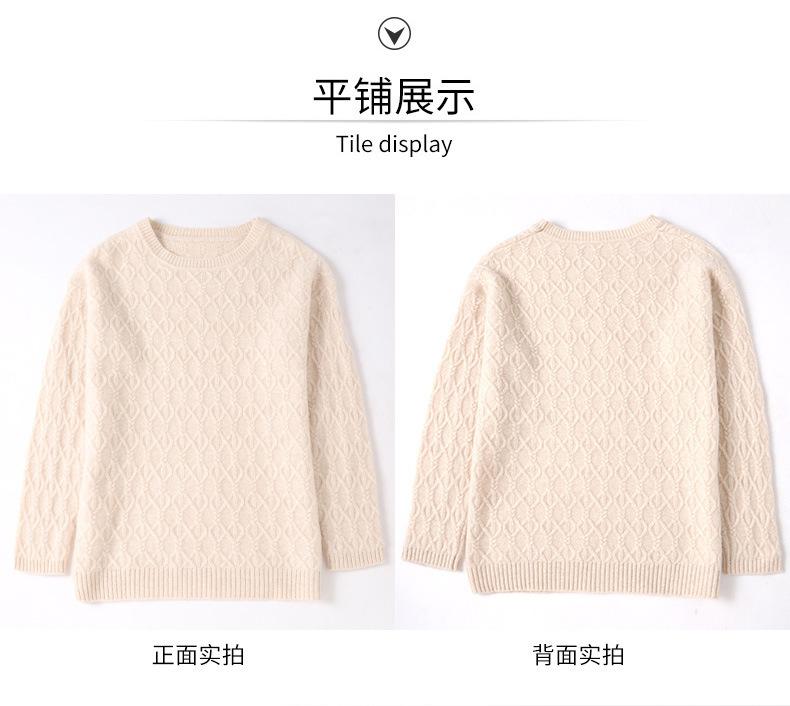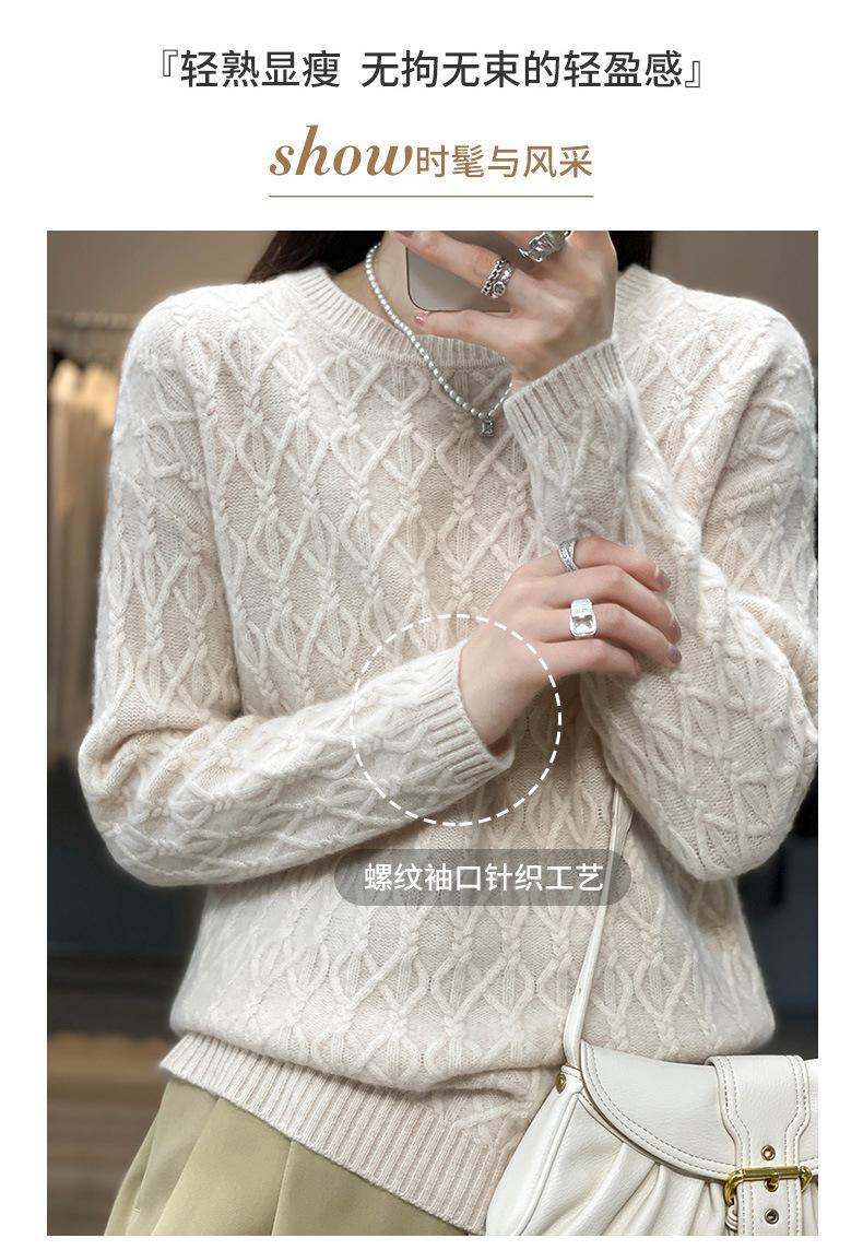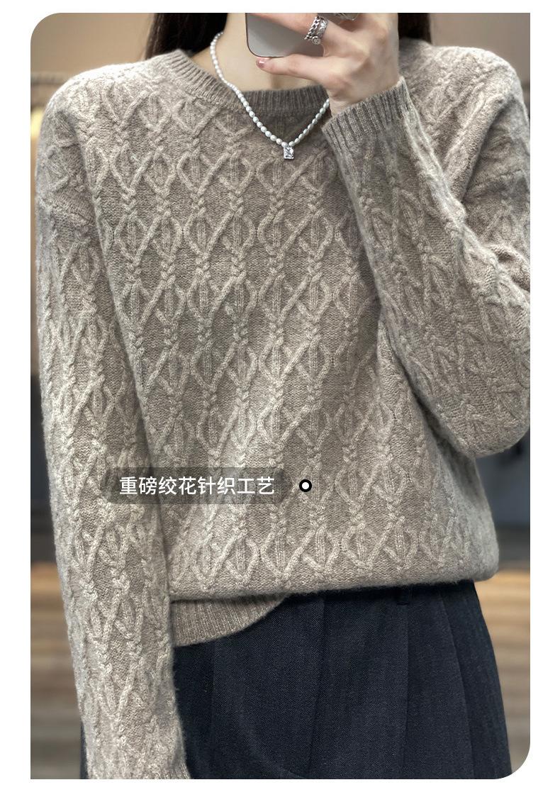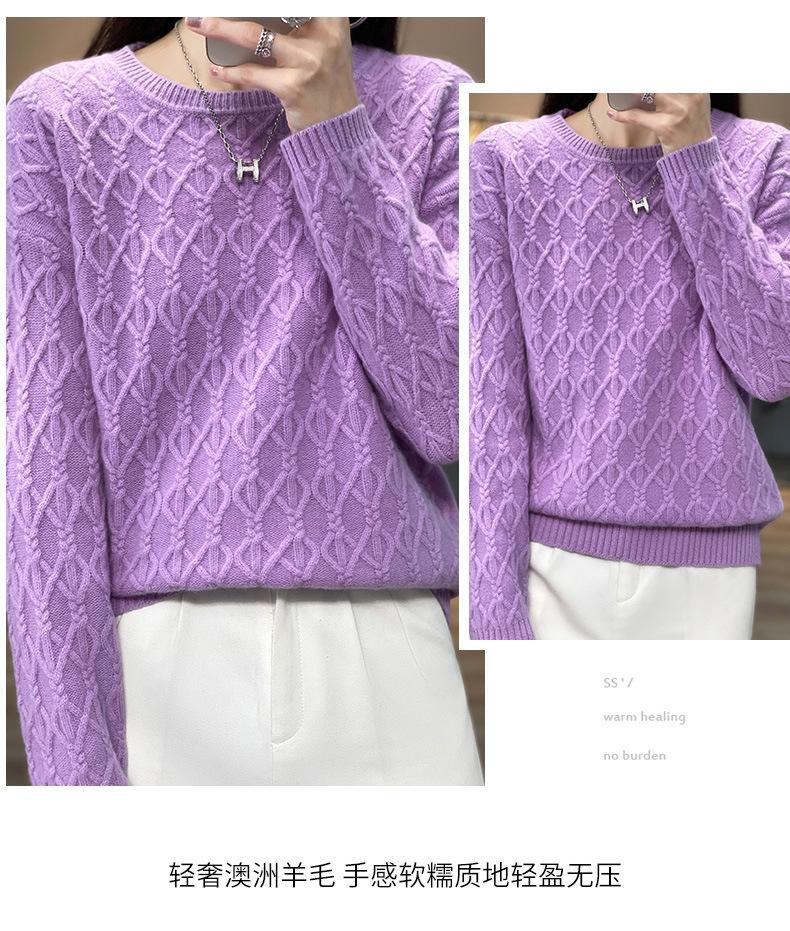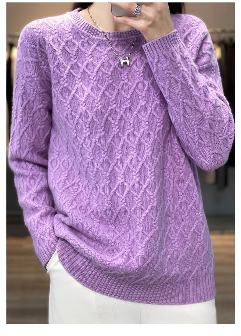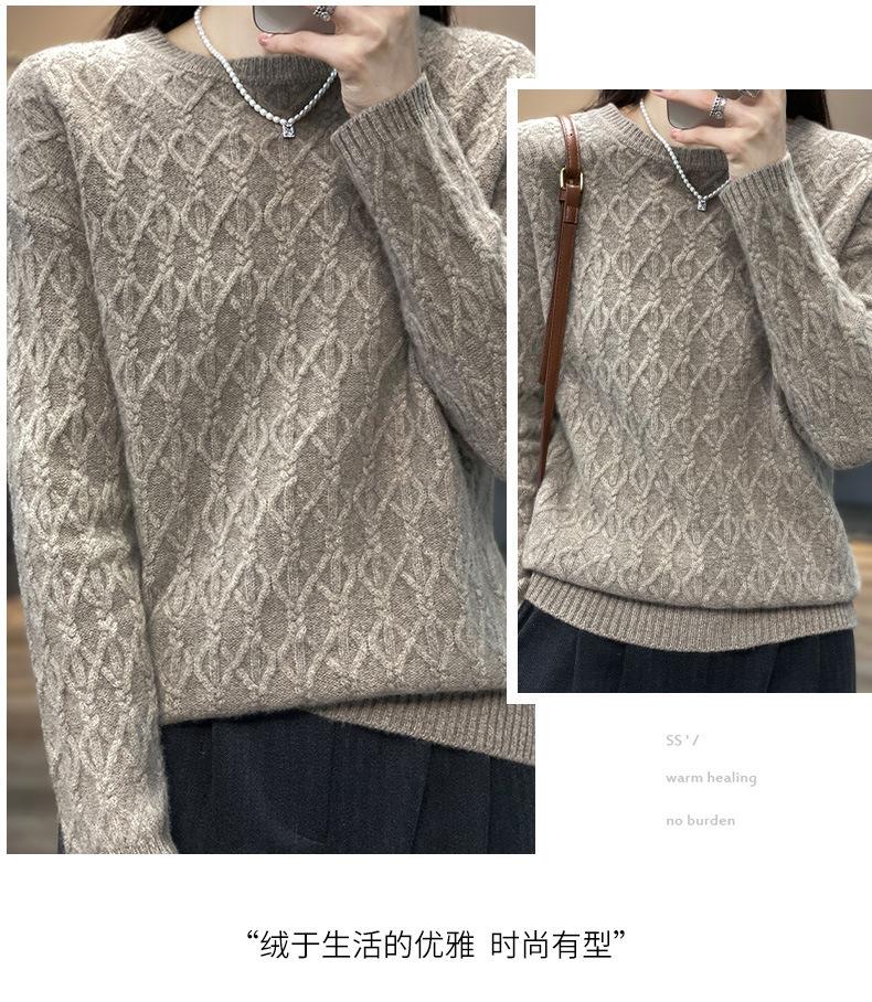 Runshi suéter de lana pura de cuello redondo de manga larga, jersey trenzado holgado, camisa básica versátil, otoño e invierno Nuevo