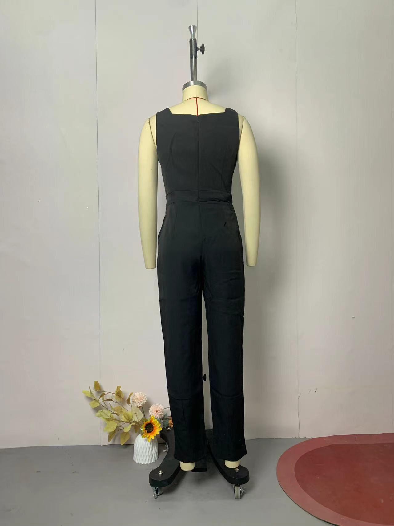 Mono ajustado de cintura alta sin mangas con cuello redondo de color sólido de moda transfronteriza de Amazon de Europa y América 2023