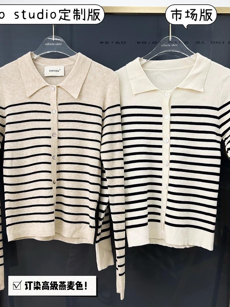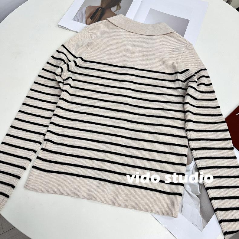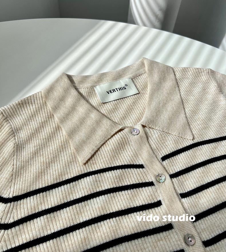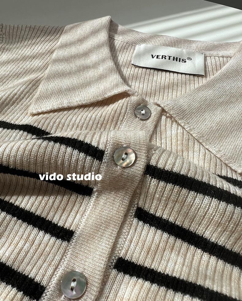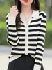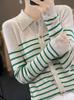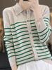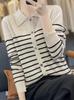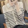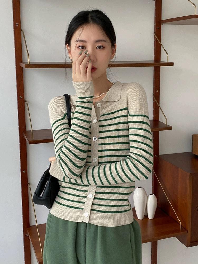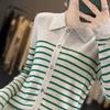 Cárdigan de punto de manga larga a rayas con cuello POLO, abrigo para mujer, suéter ajustado, adelgazante, versátil, de moda, temperamento, top corto
