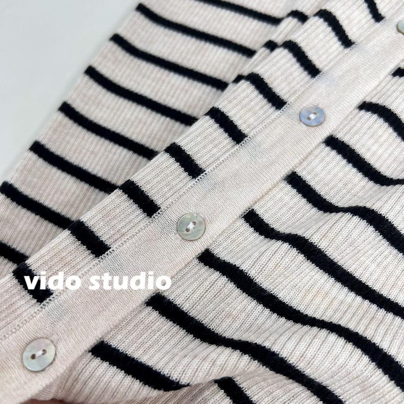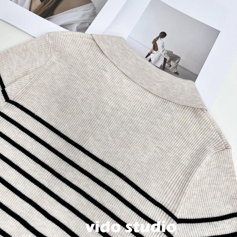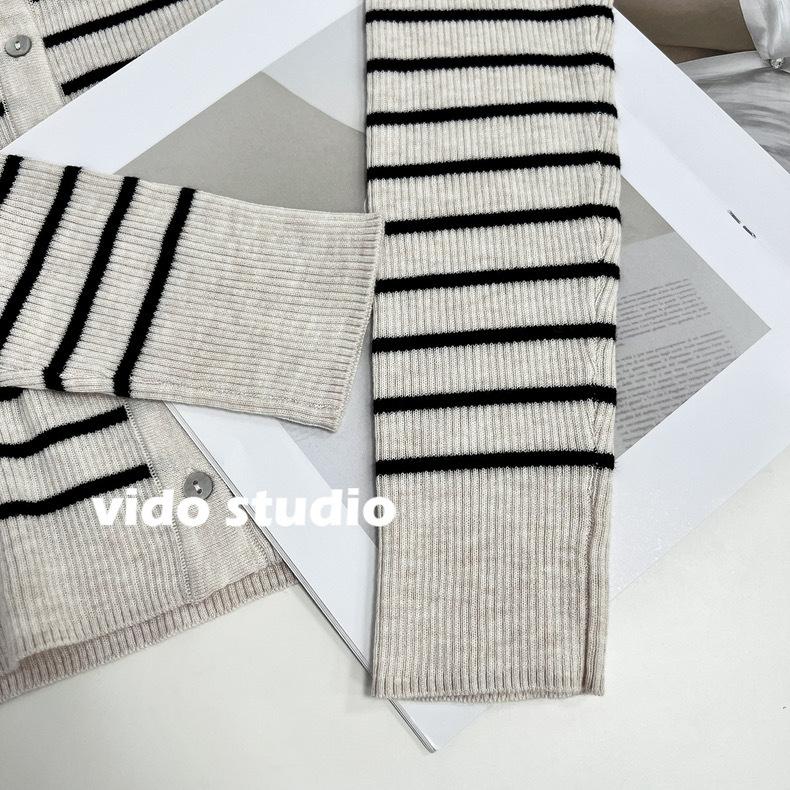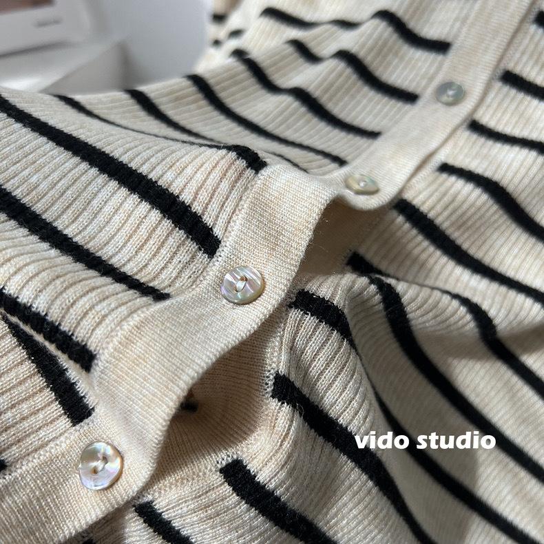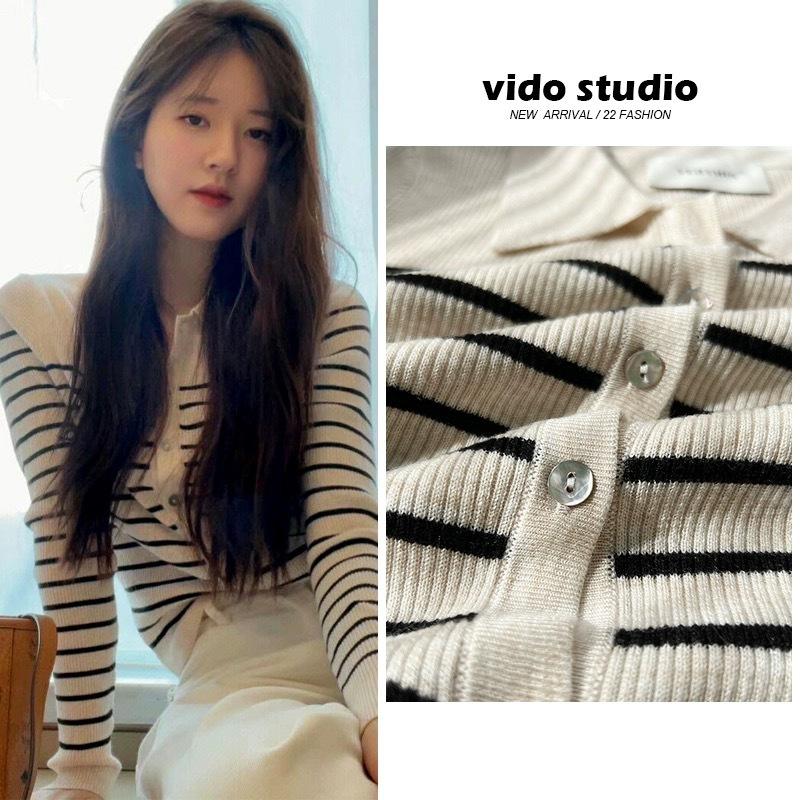 Cárdigan de punto de manga larga a rayas con cuello POLO, abrigo para mujer, suéter ajustado, adelgazante, versátil, de moda, temperamento, top corto