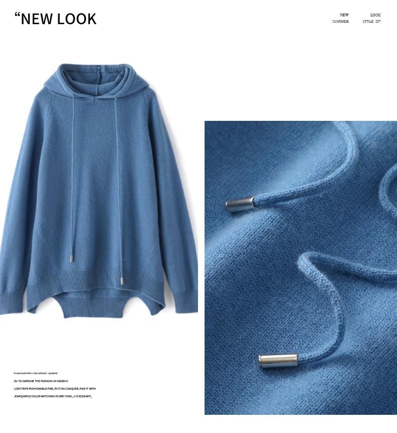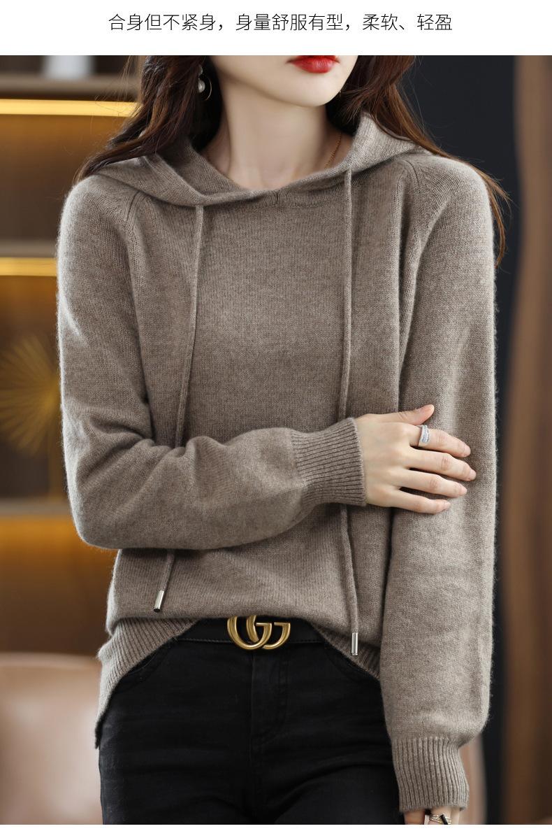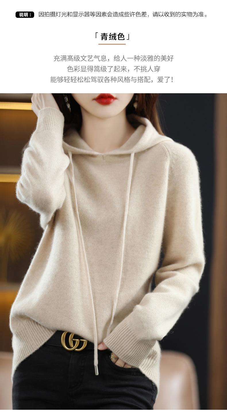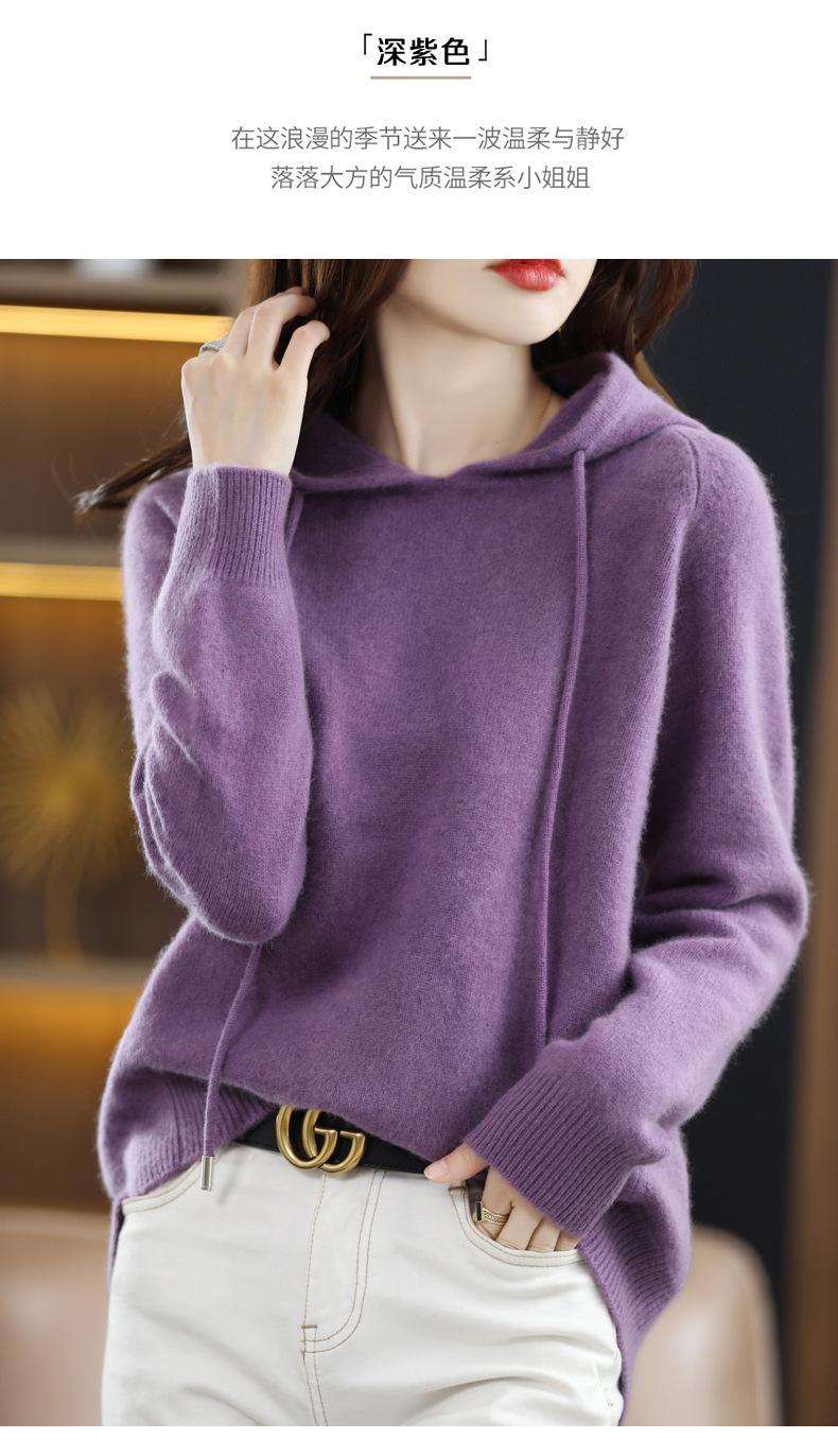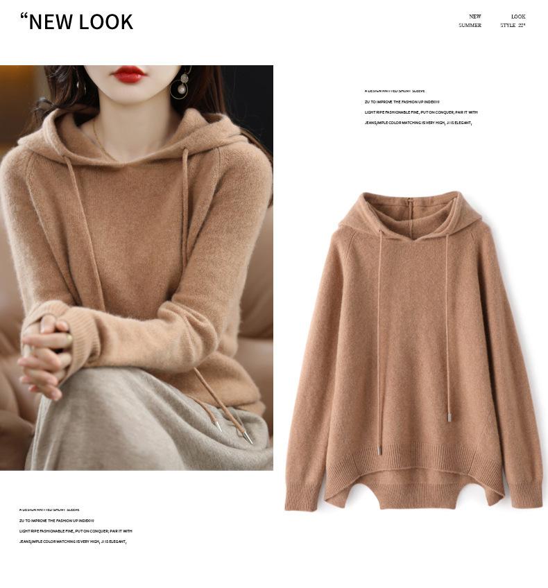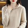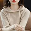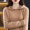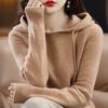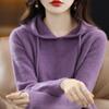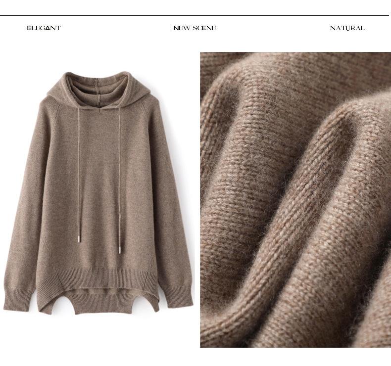 Suéter informal holgado de lana pura para mujer, grueso e irregular, con capucha, de punto de color sólido, camisa de manga larga