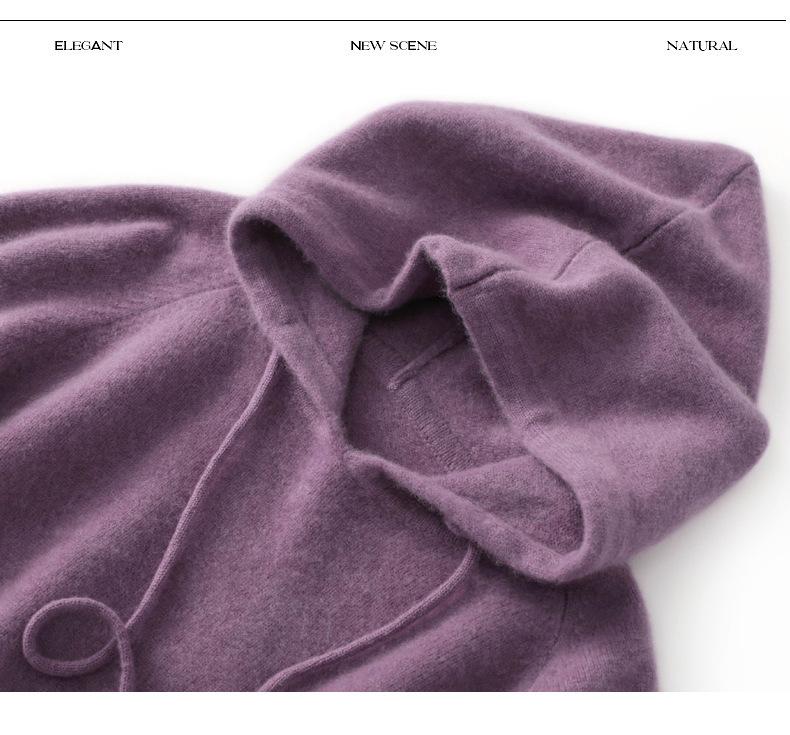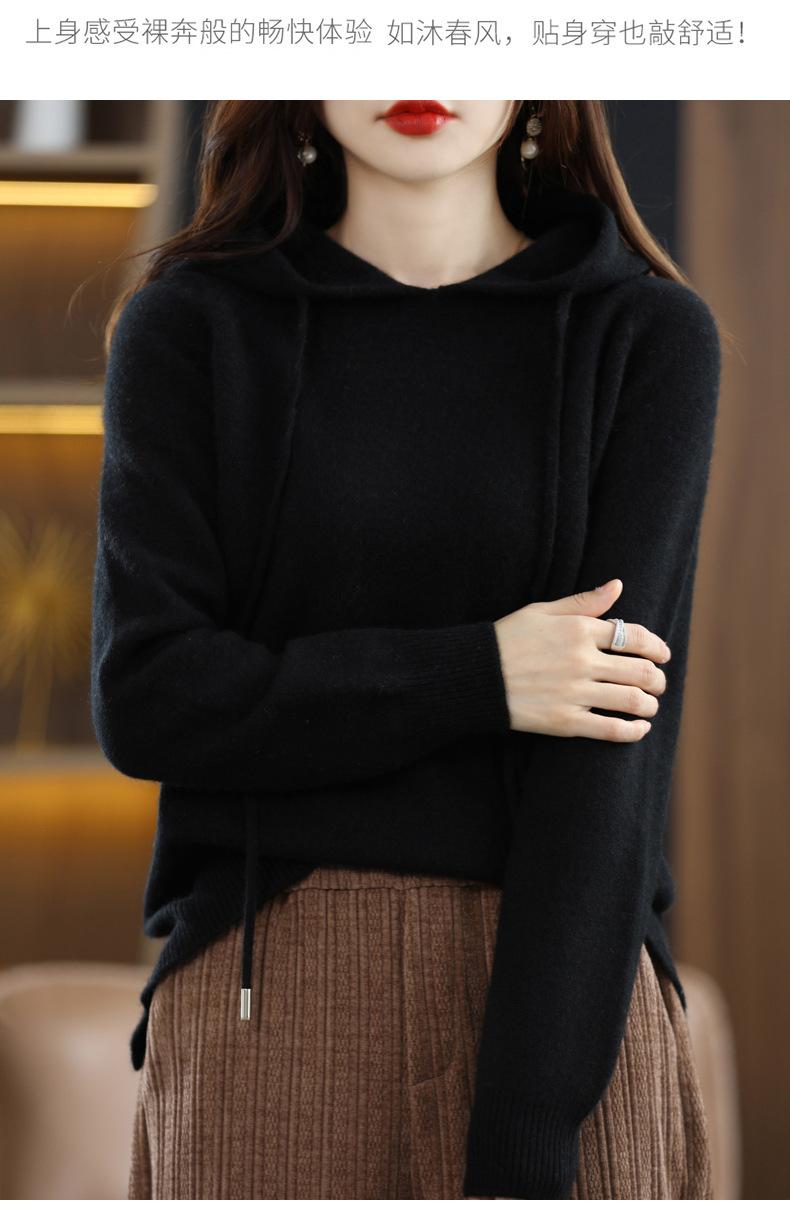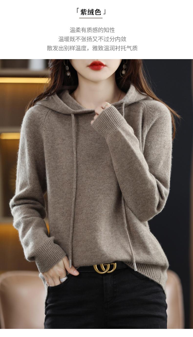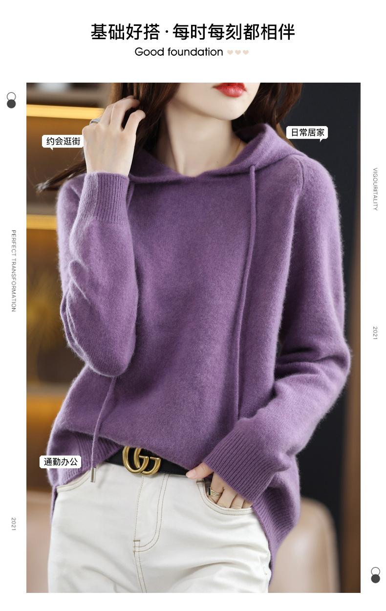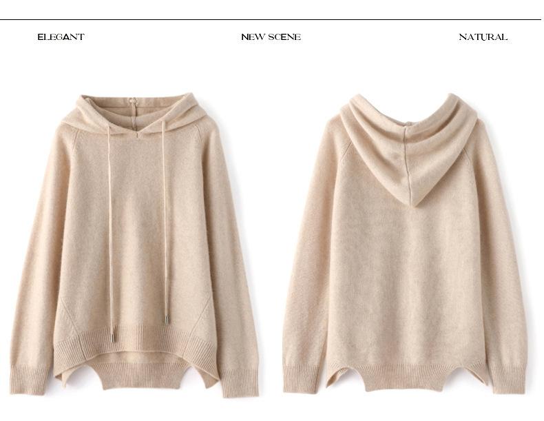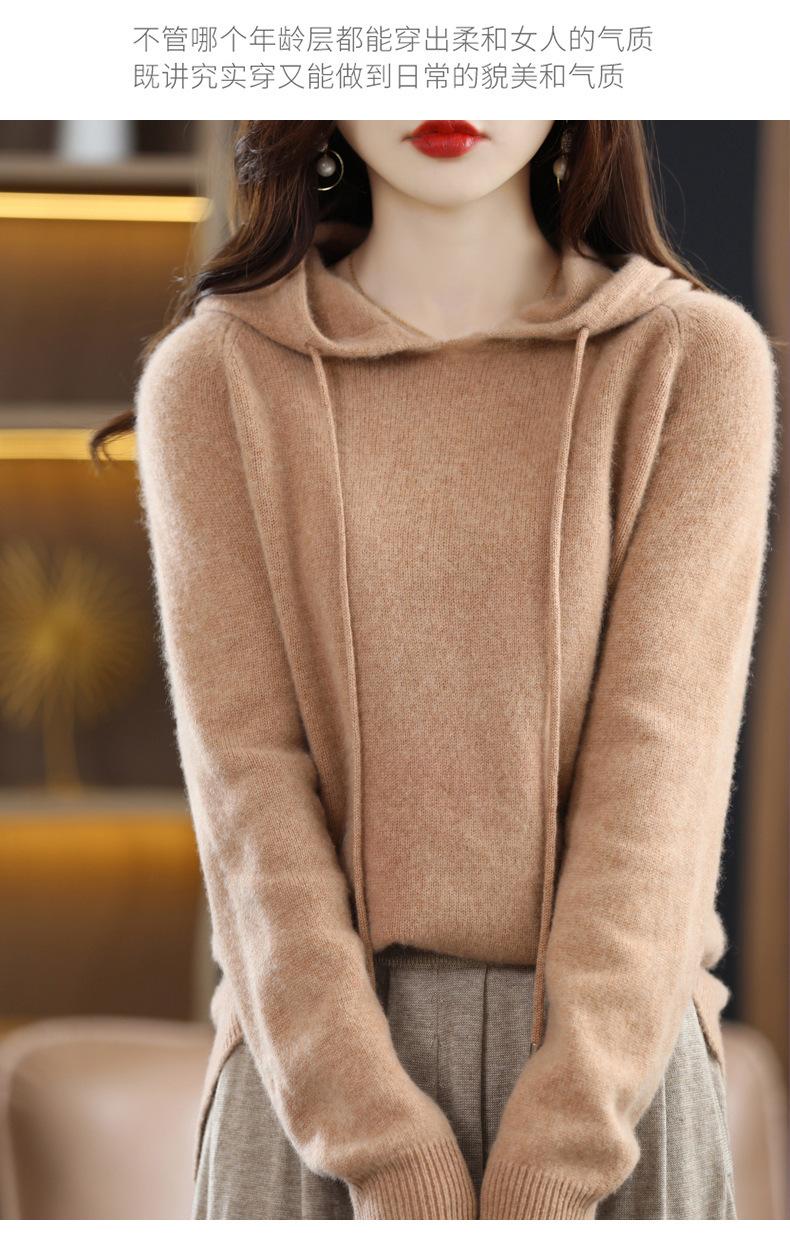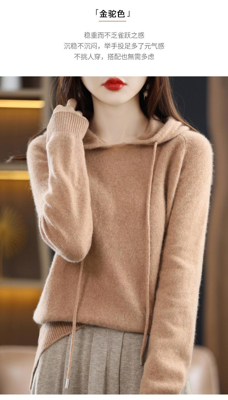Suéter informal holgado de lana pura para mujer, grueso e irregular, con capucha, de punto de color sólido, camisa de manga larga