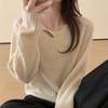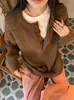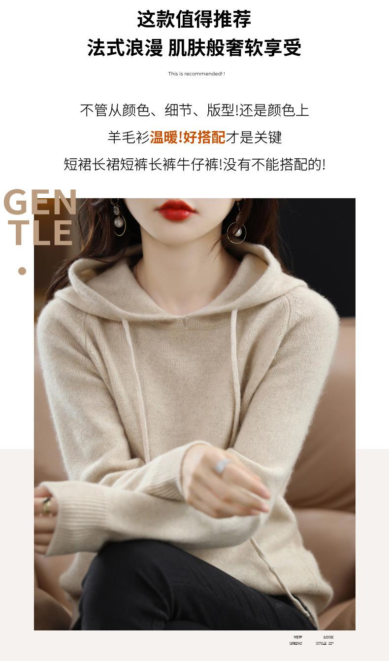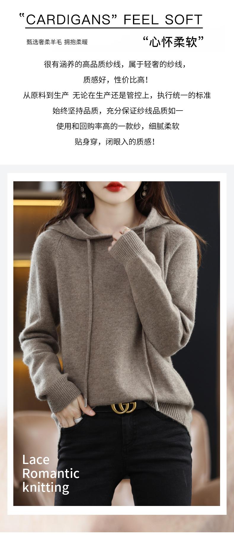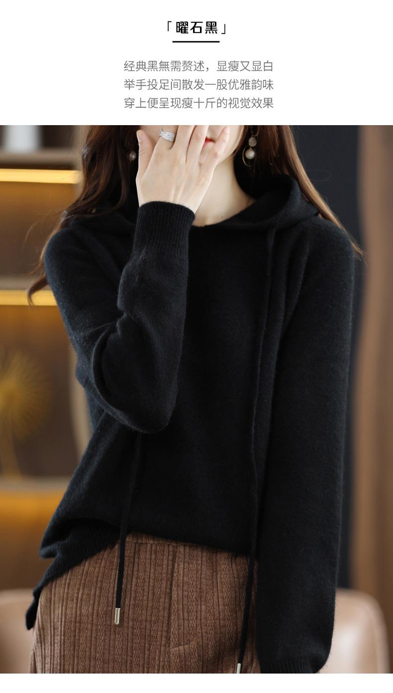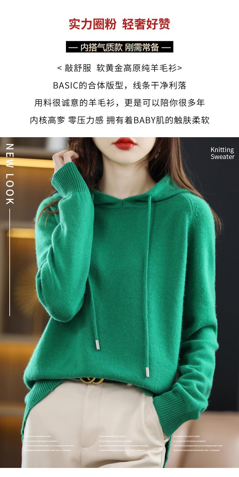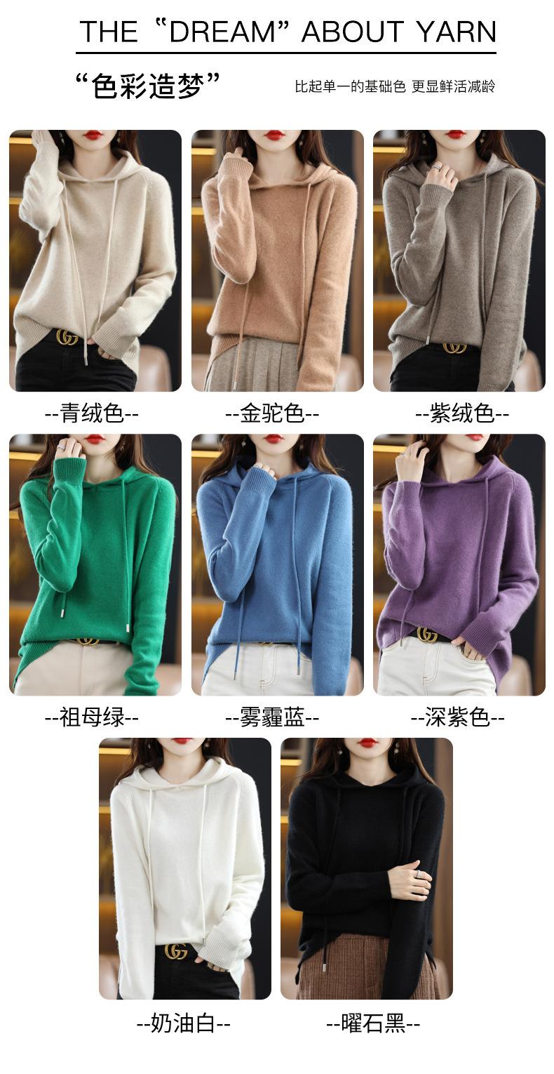 Suéter informal holgado de lana pura para mujer, grueso e irregular, con capucha, de punto de color sólido, camisa de manga larga