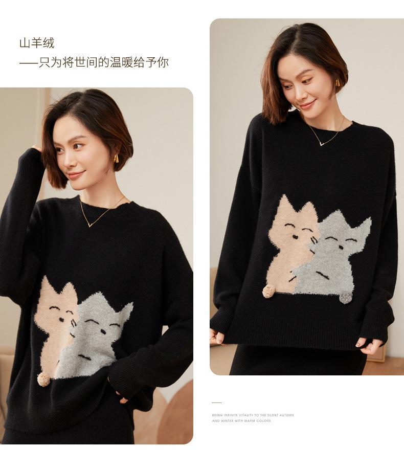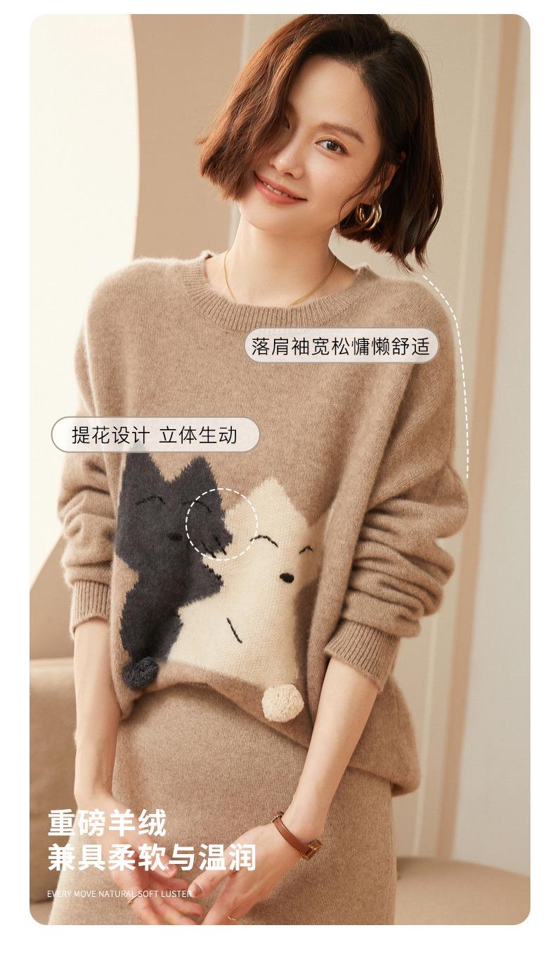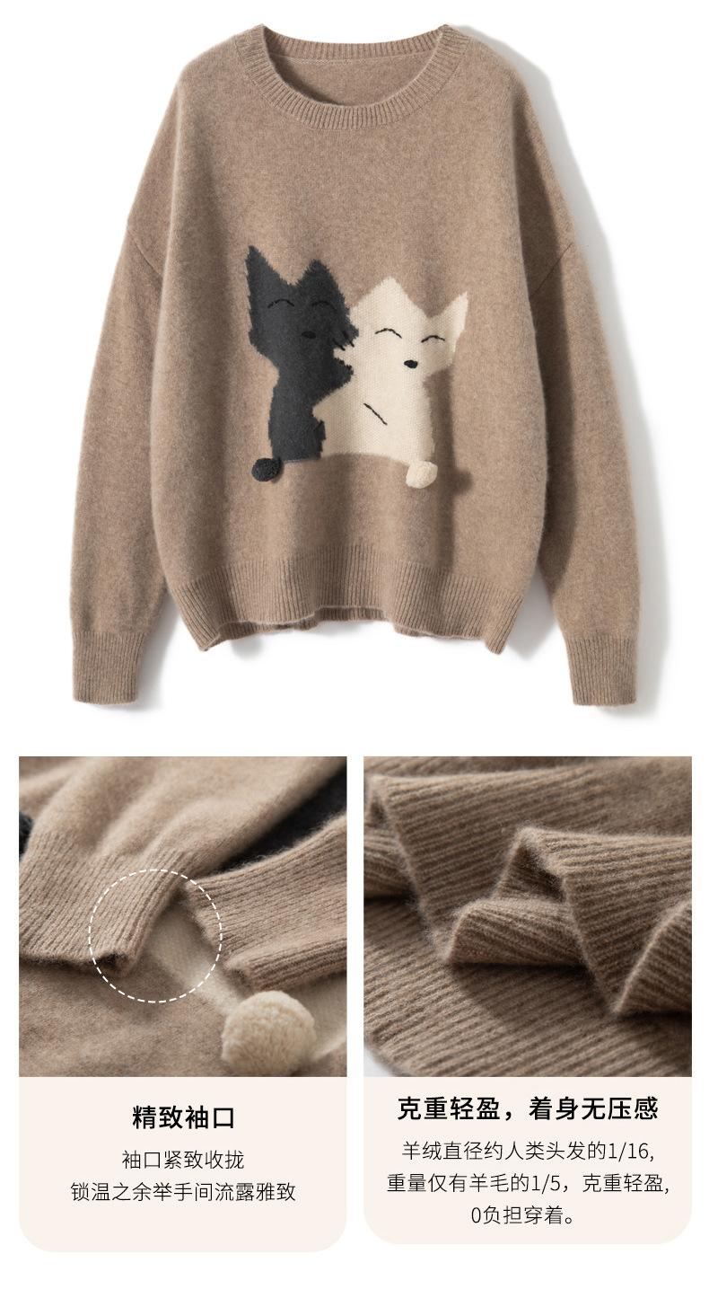 Suéter de cachemira con cuello redondo para mujer, suéter holgado de cachemira 100%, suéter grueso, suéter holgado de moda, otoño e invierno