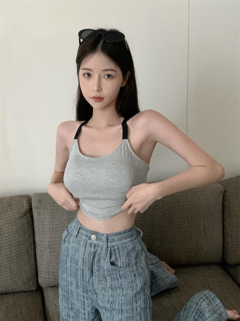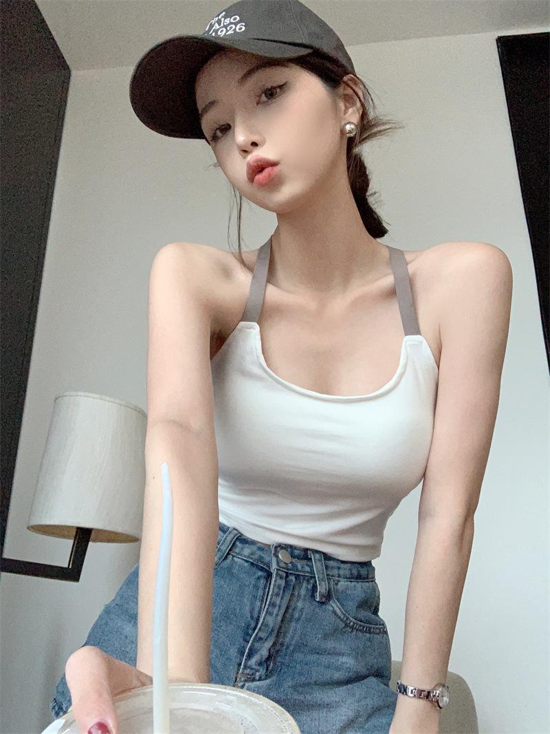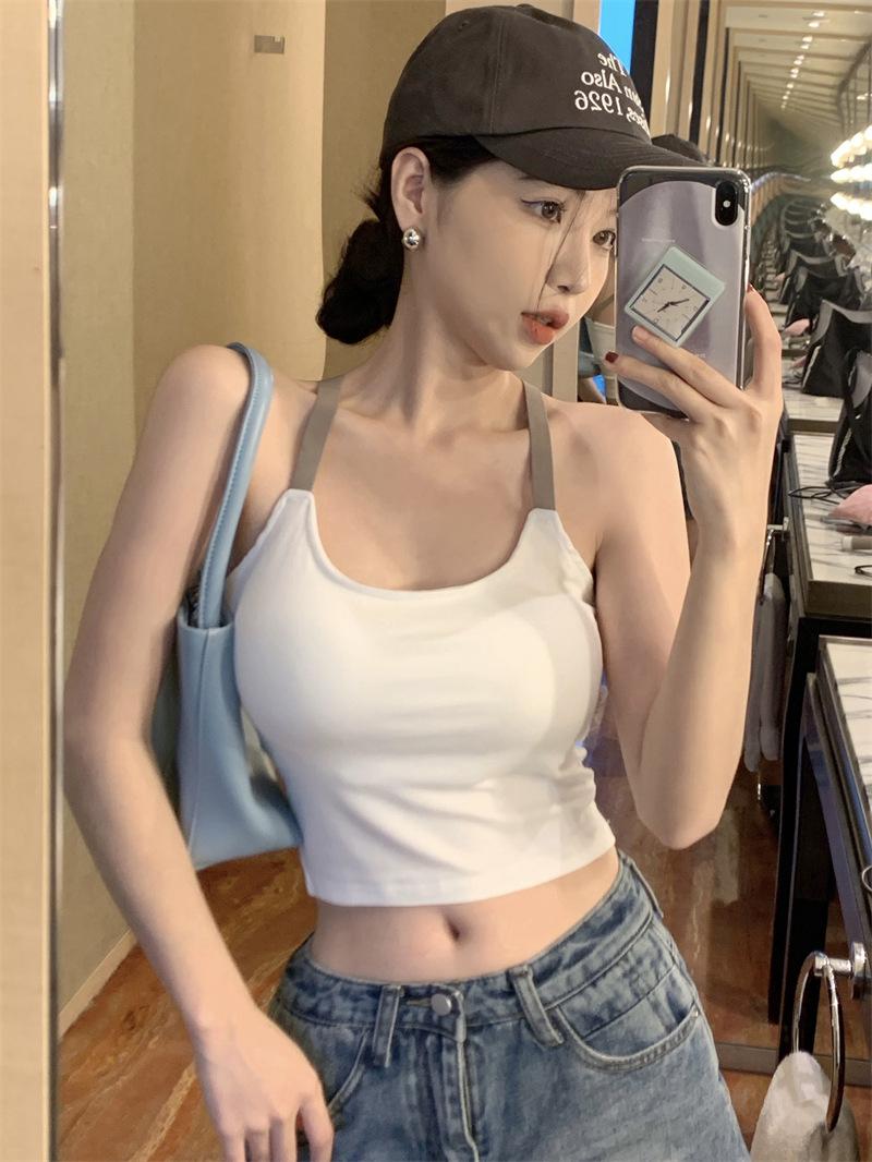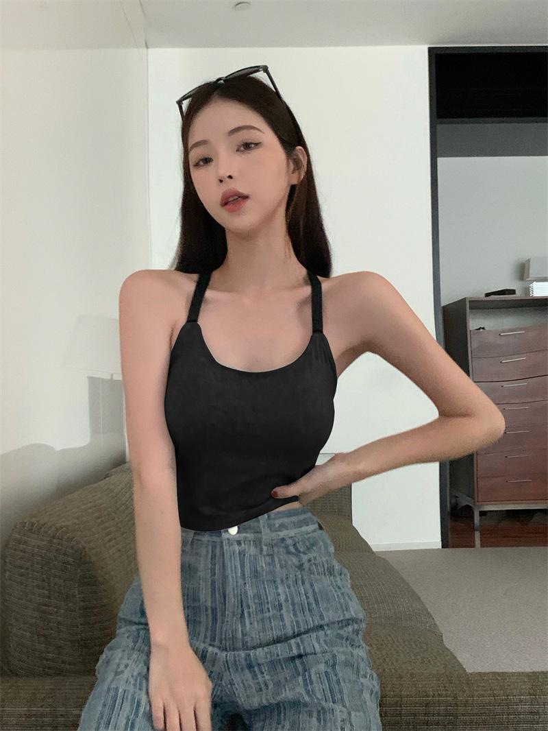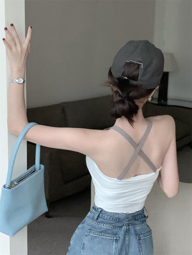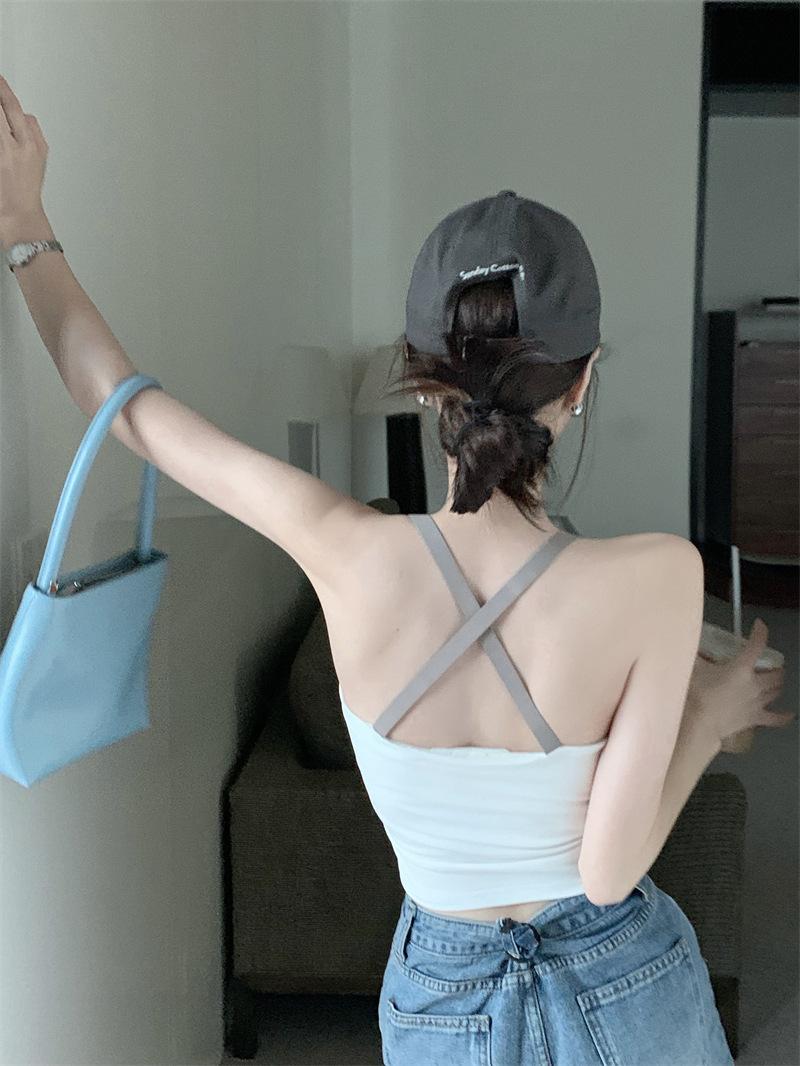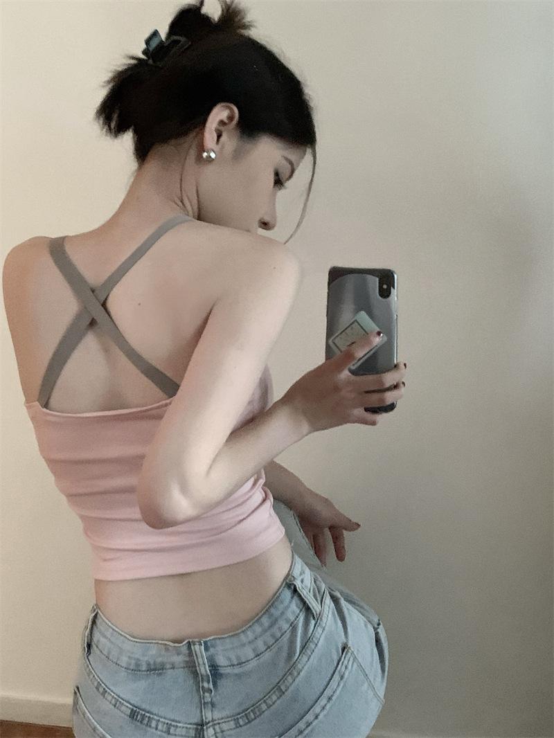 Chaleco pequeño con tirantes de cuello rosa para mujer, ropa interior de verano corta y exterior con almohadilla para el pecho, hermoso sujetador de espalda, top de base de una pieza