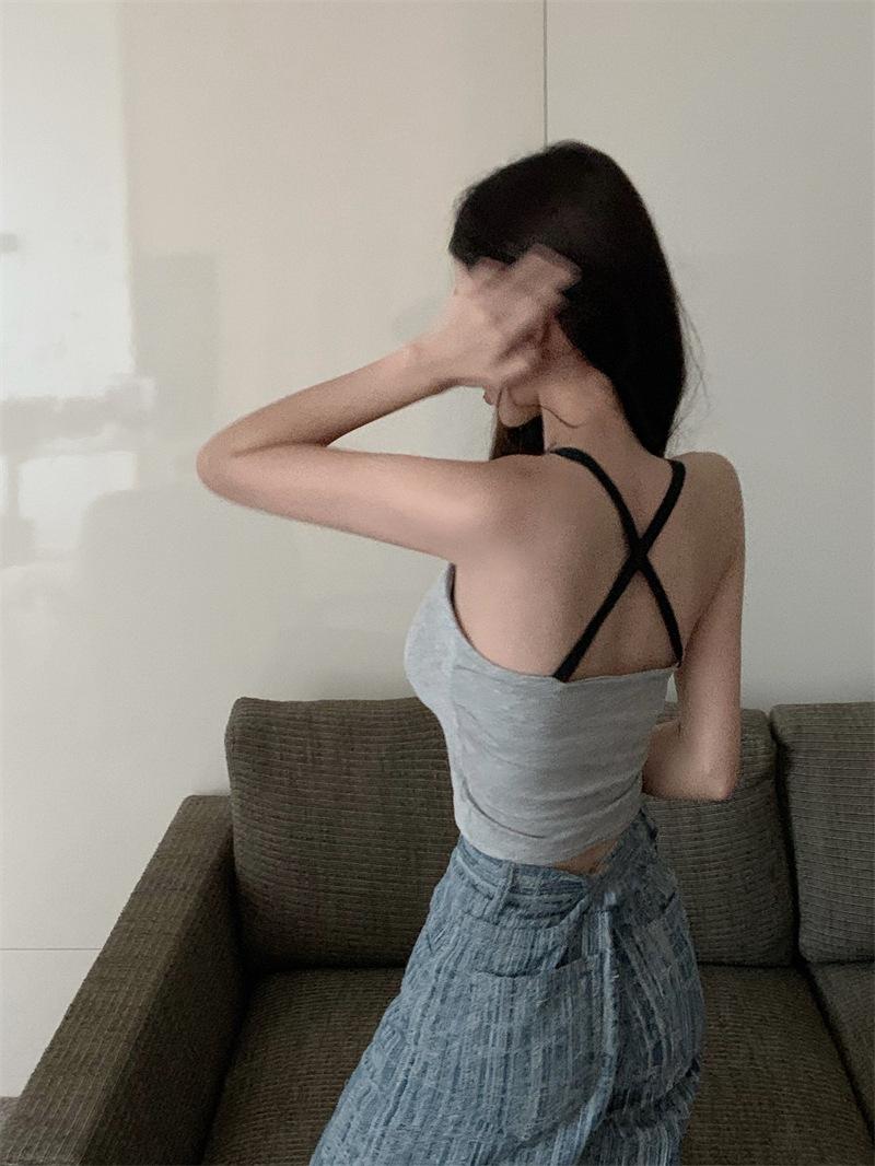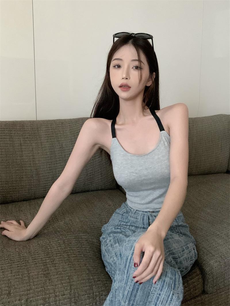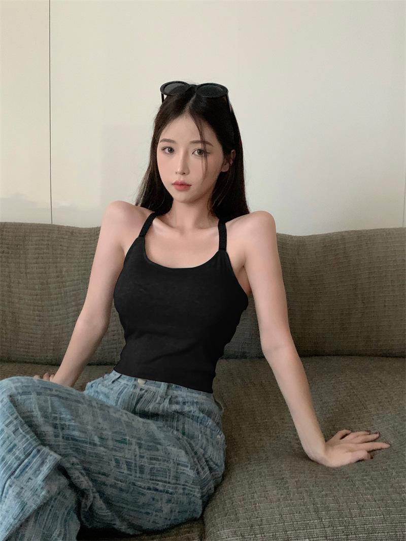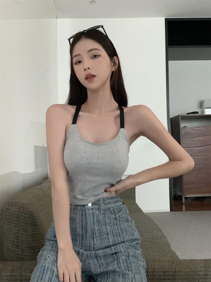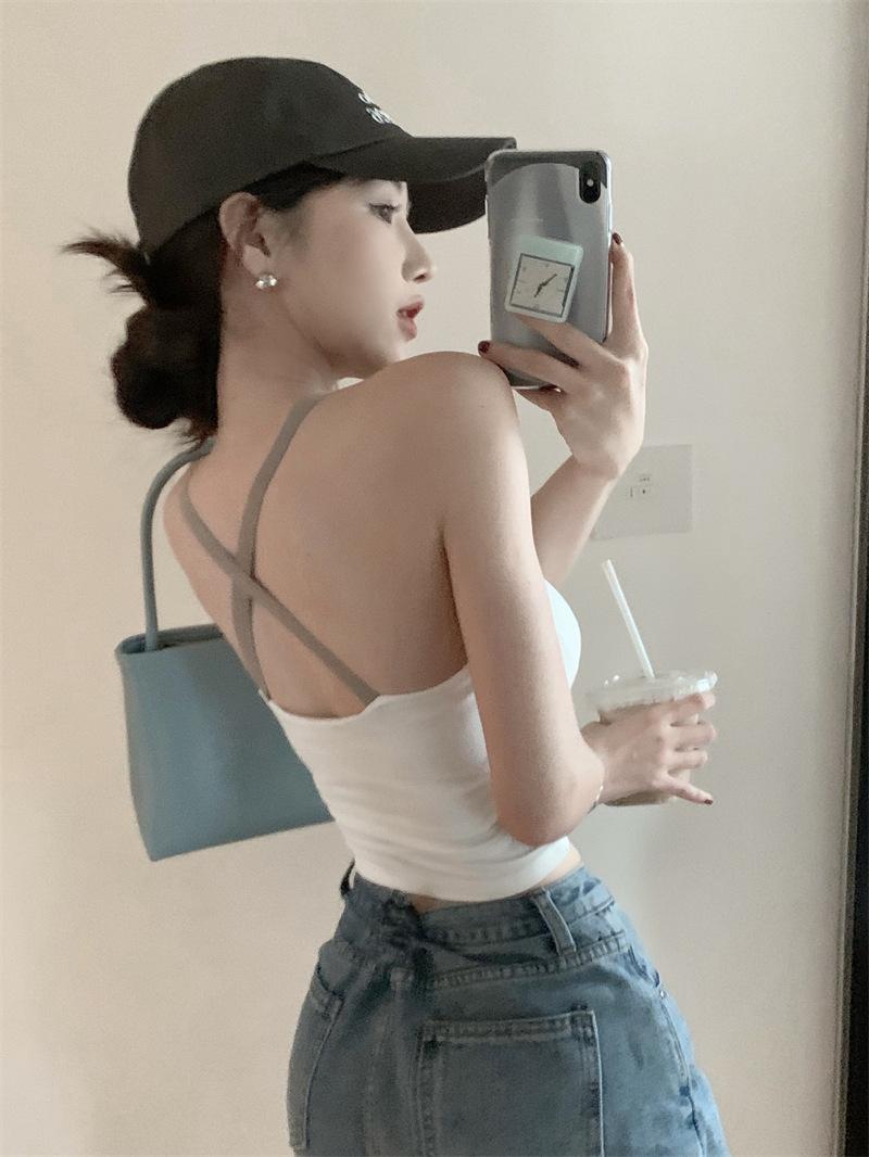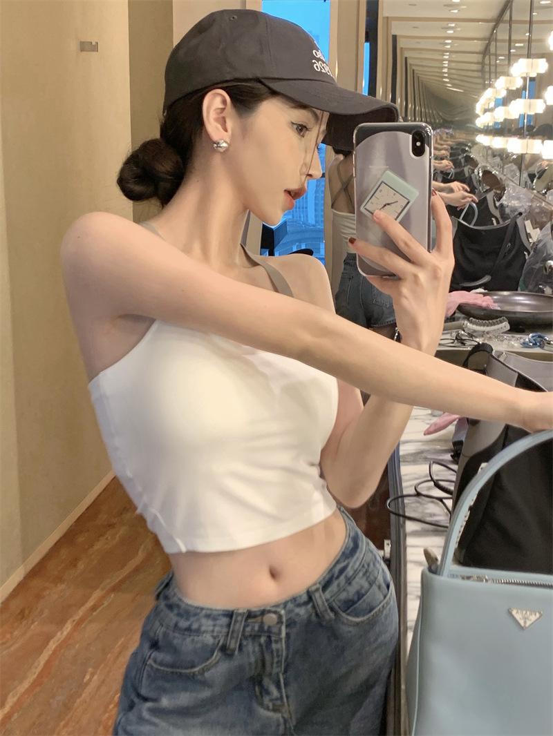 Chaleco pequeño con tirantes de cuello rosa para mujer, ropa interior de verano corta y exterior con almohadilla para el pecho, hermoso sujetador de espalda, top de base de una pieza