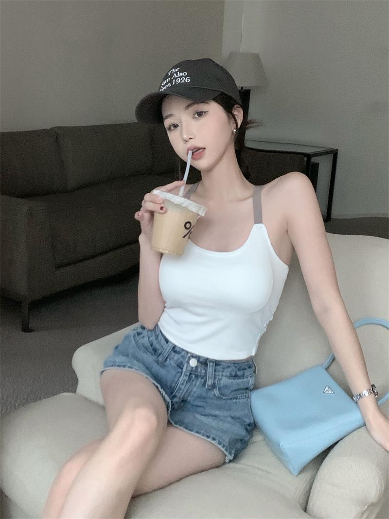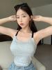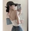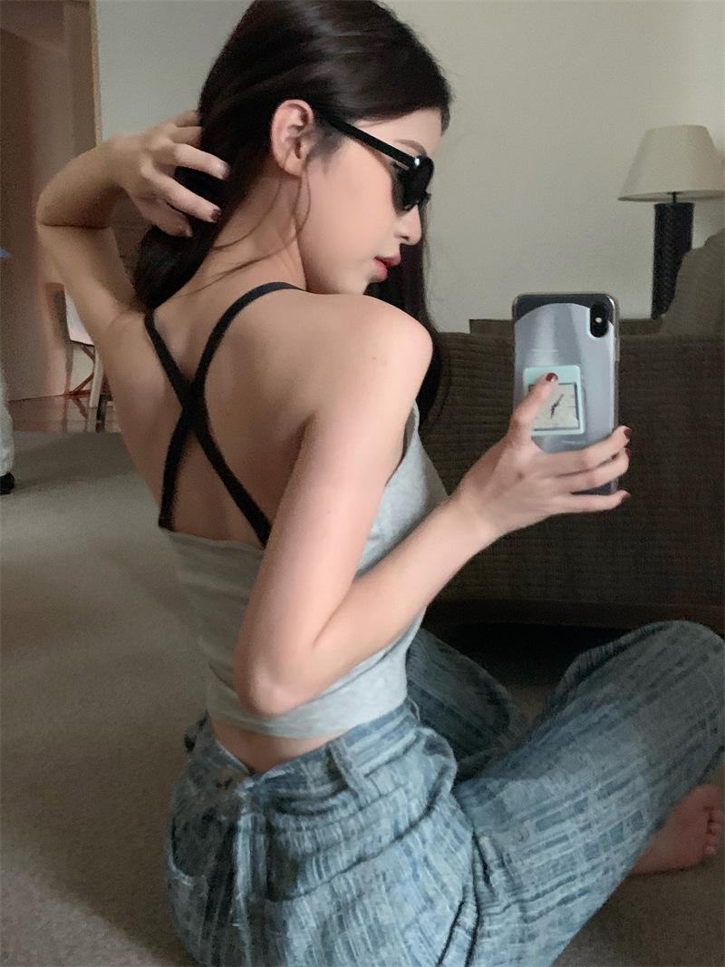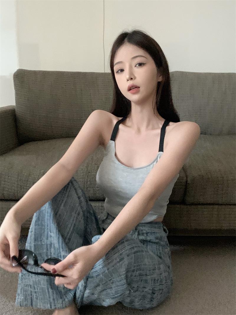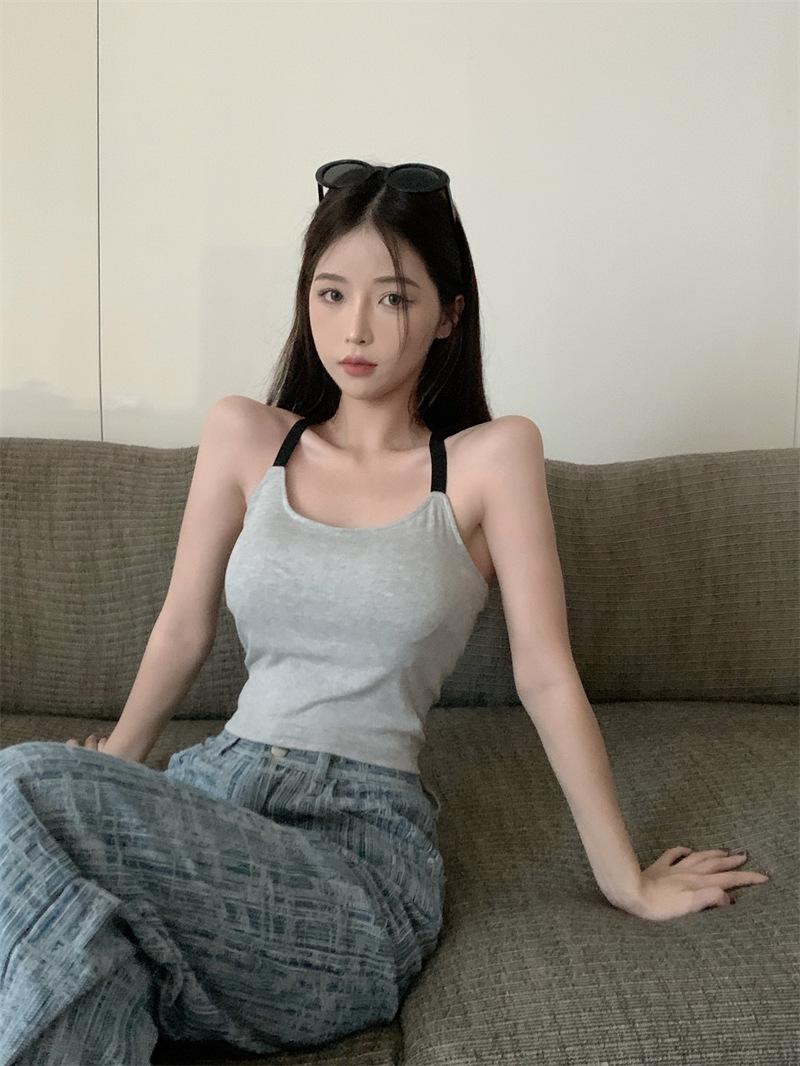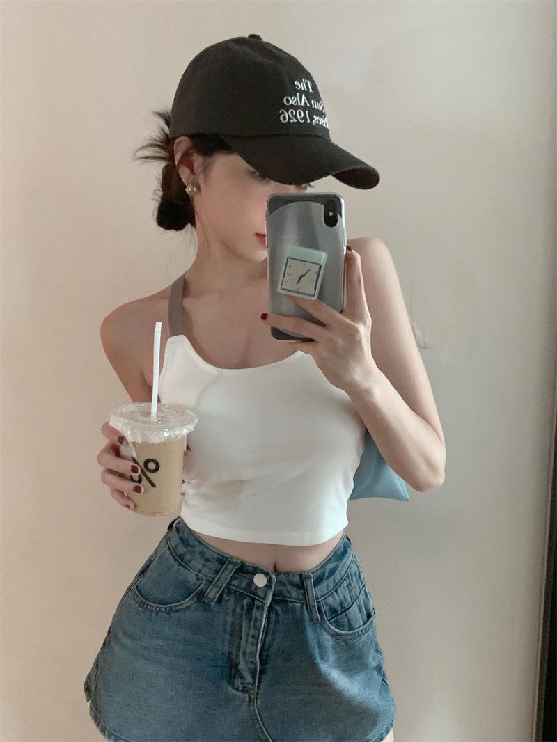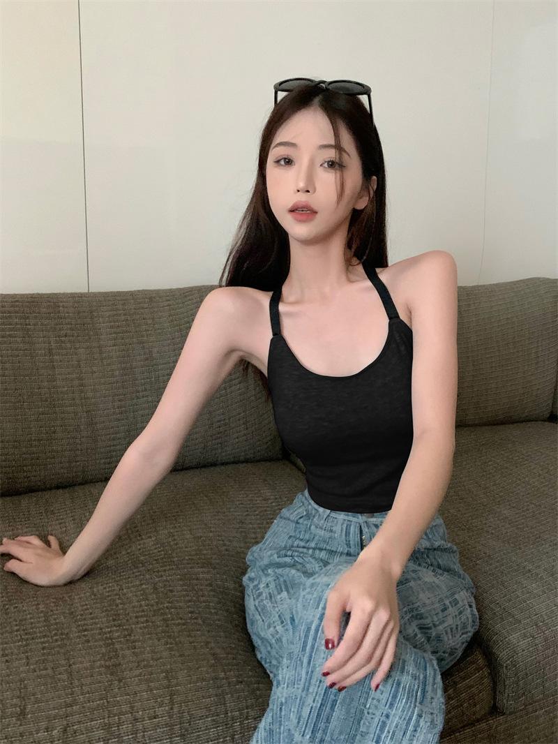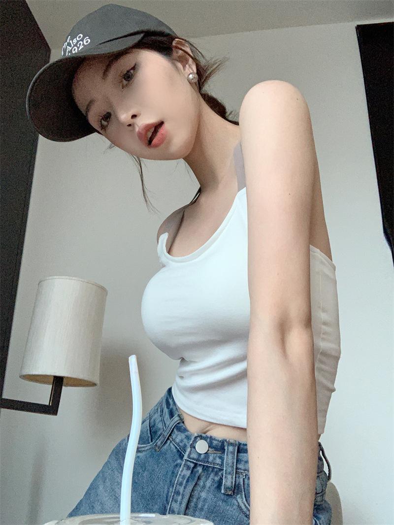 Chaleco pequeño con tirantes de cuello rosa para mujer, ropa interior de verano corta y exterior con almohadilla para el pecho, hermoso sujetador de espalda, top de base de una pieza