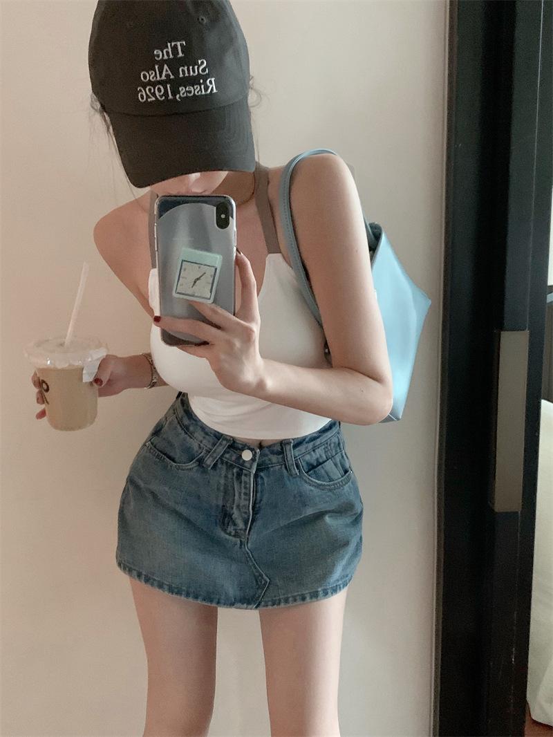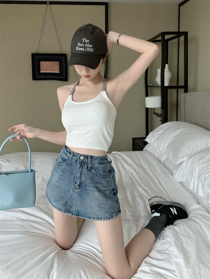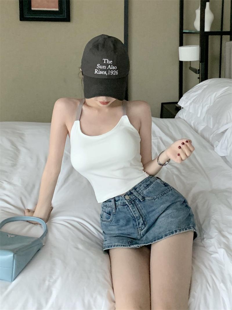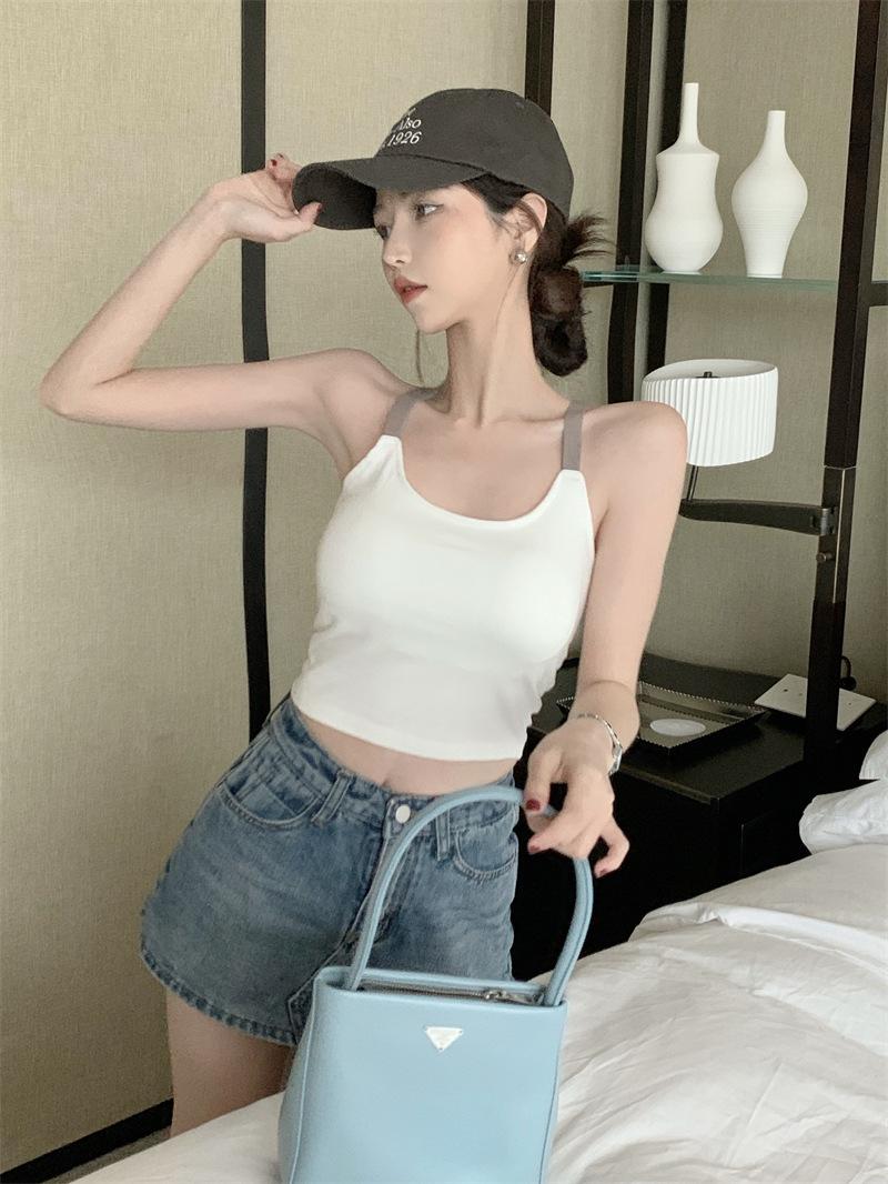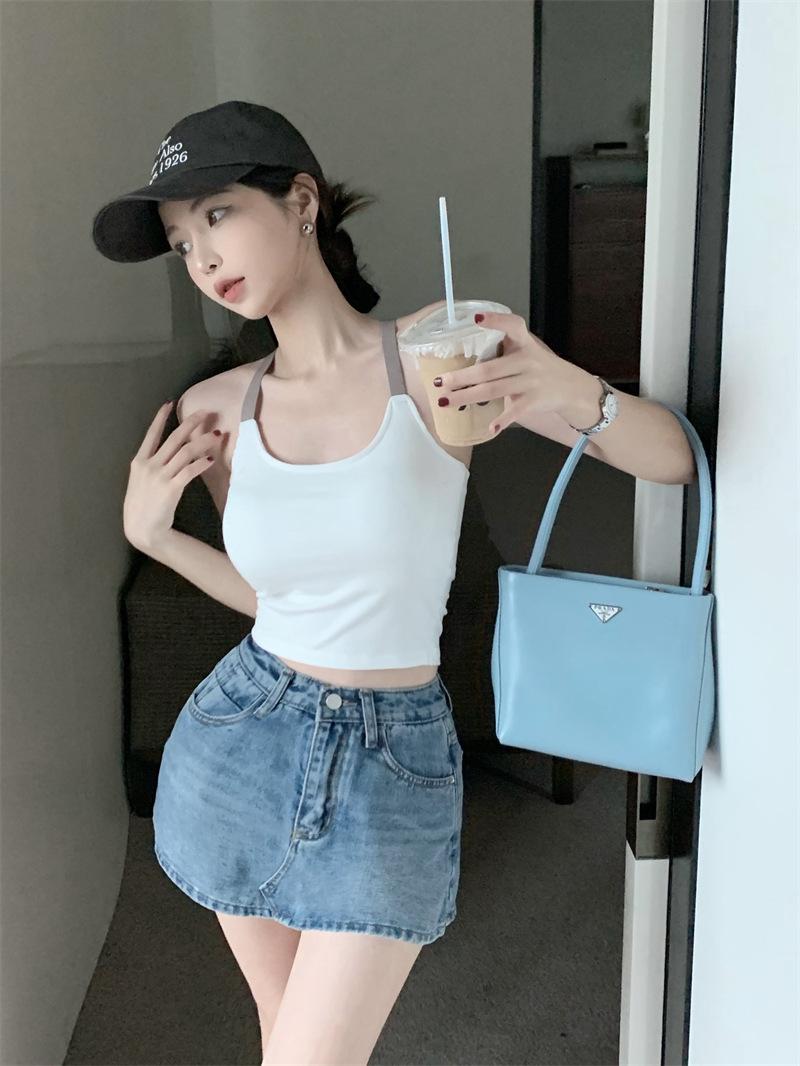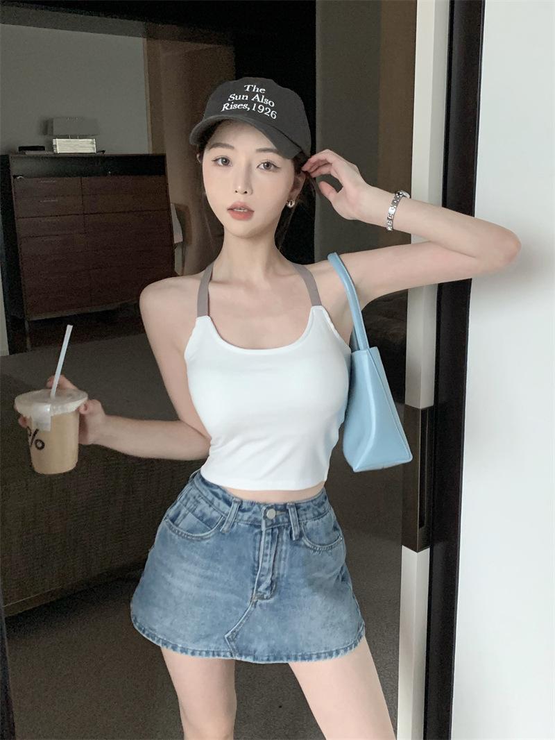 Chaleco pequeño con tirantes de cuello rosa para mujer, ropa interior de verano corta y exterior con almohadilla para el pecho, hermoso sujetador de espalda, top de base de una pieza