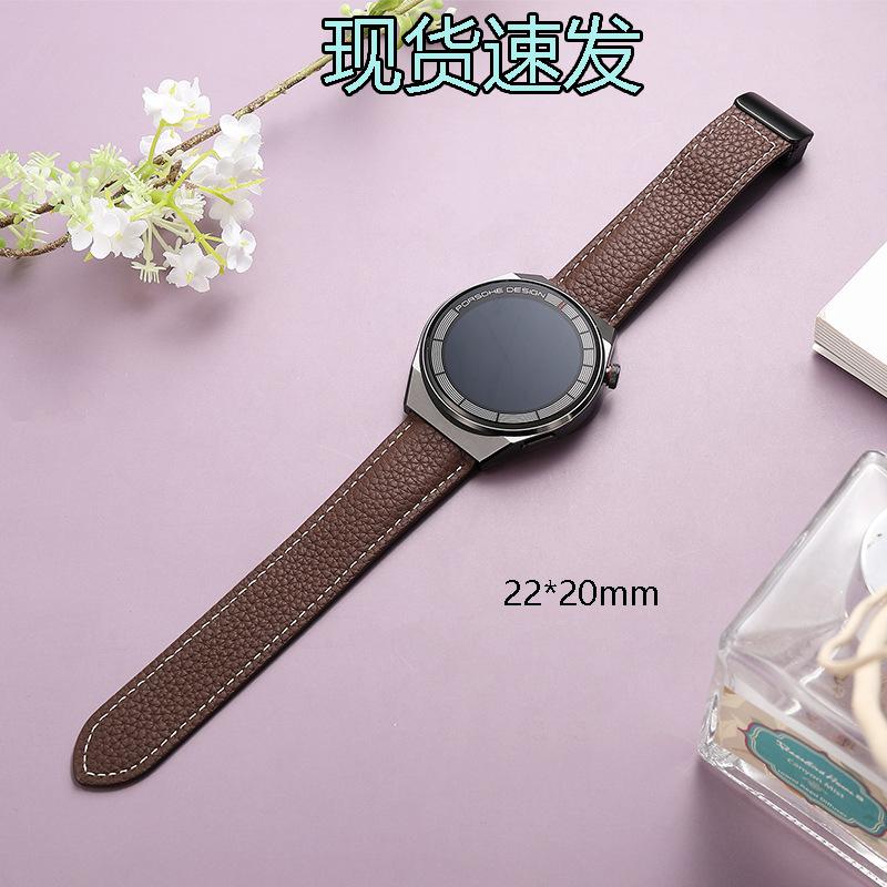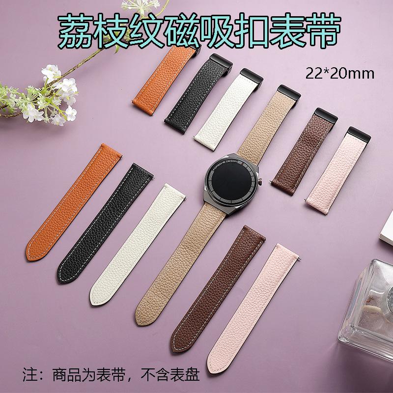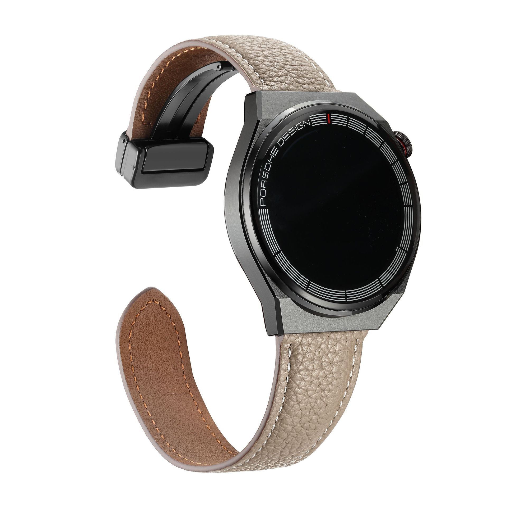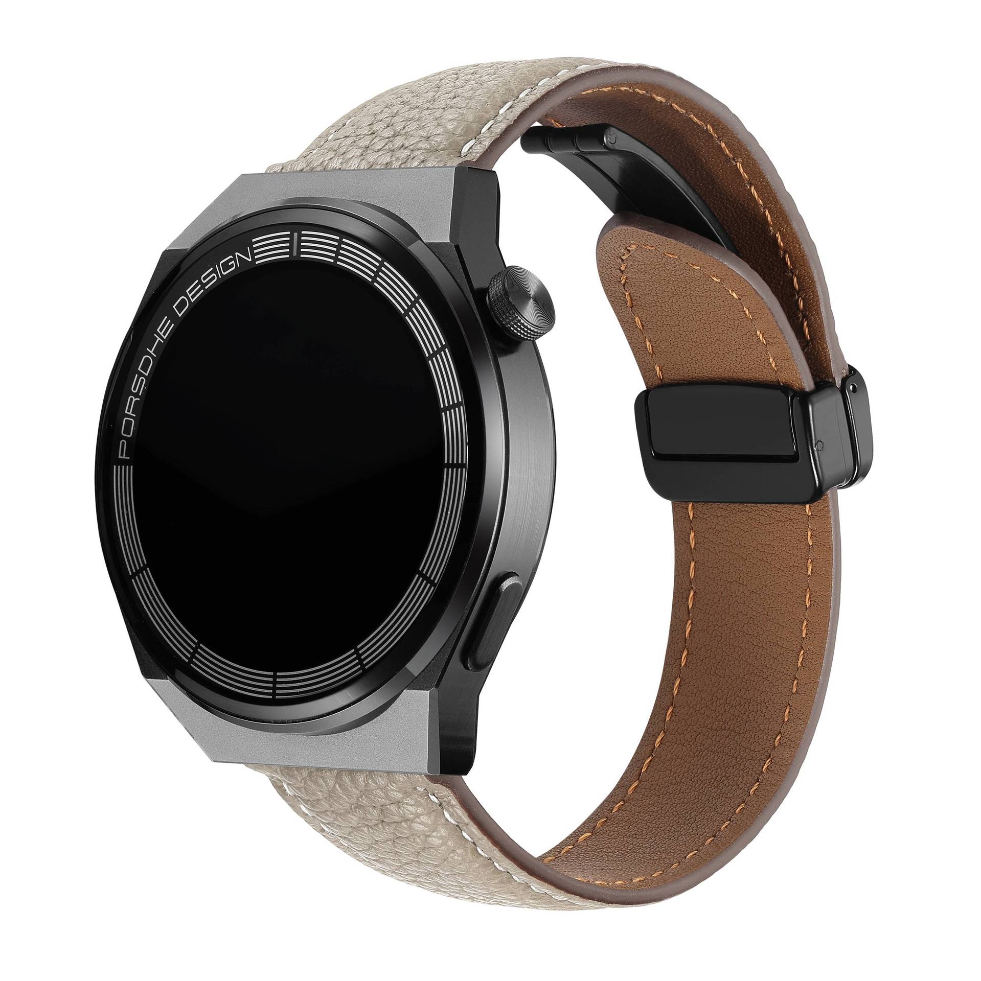 Correa de reloj inteligente de piel de becerro de primera capa de doble cara con hebilla magnética y patrón de litchi de Huawei de 22 x 20 mm.
