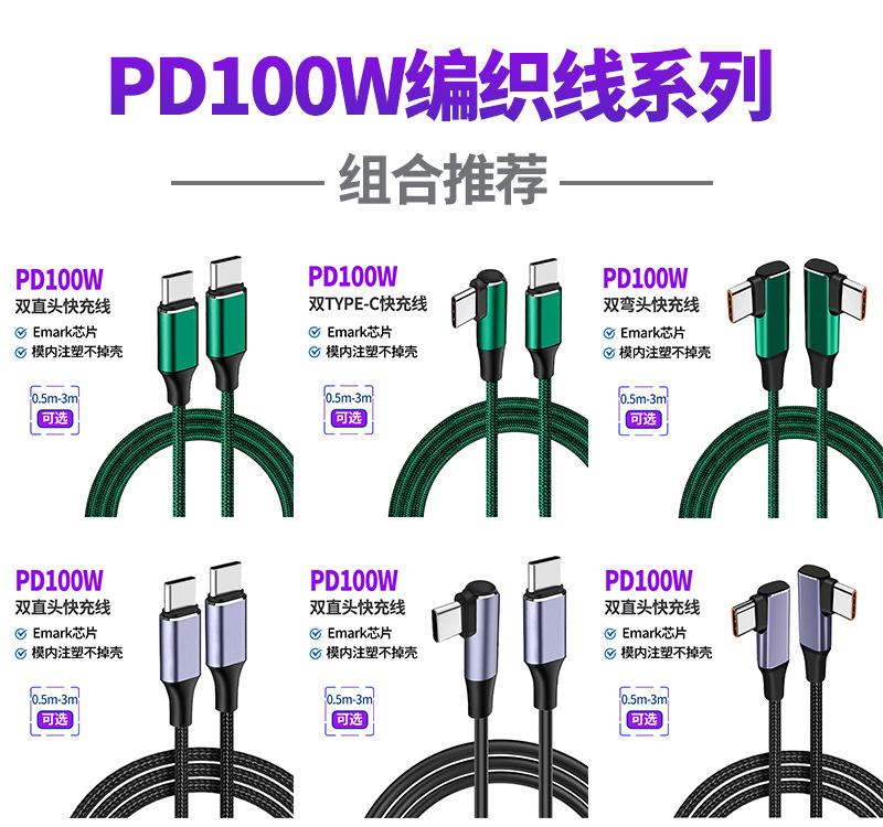 Cable de datos tipo C transfronterizo macho a macho para carga rápida Huawei 5A PD100w, cable de carga en codo para Huawei