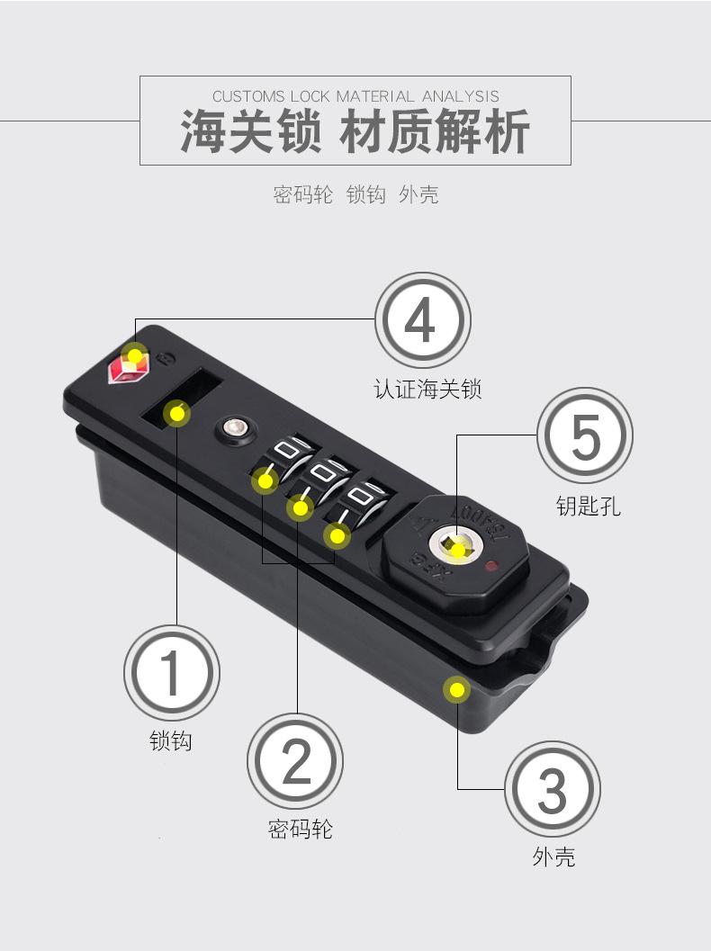 Candado de seguridad TSA para caja de aluminio hundida con hebilla para maleta, con contraseña, para aduanas transfronterizas
