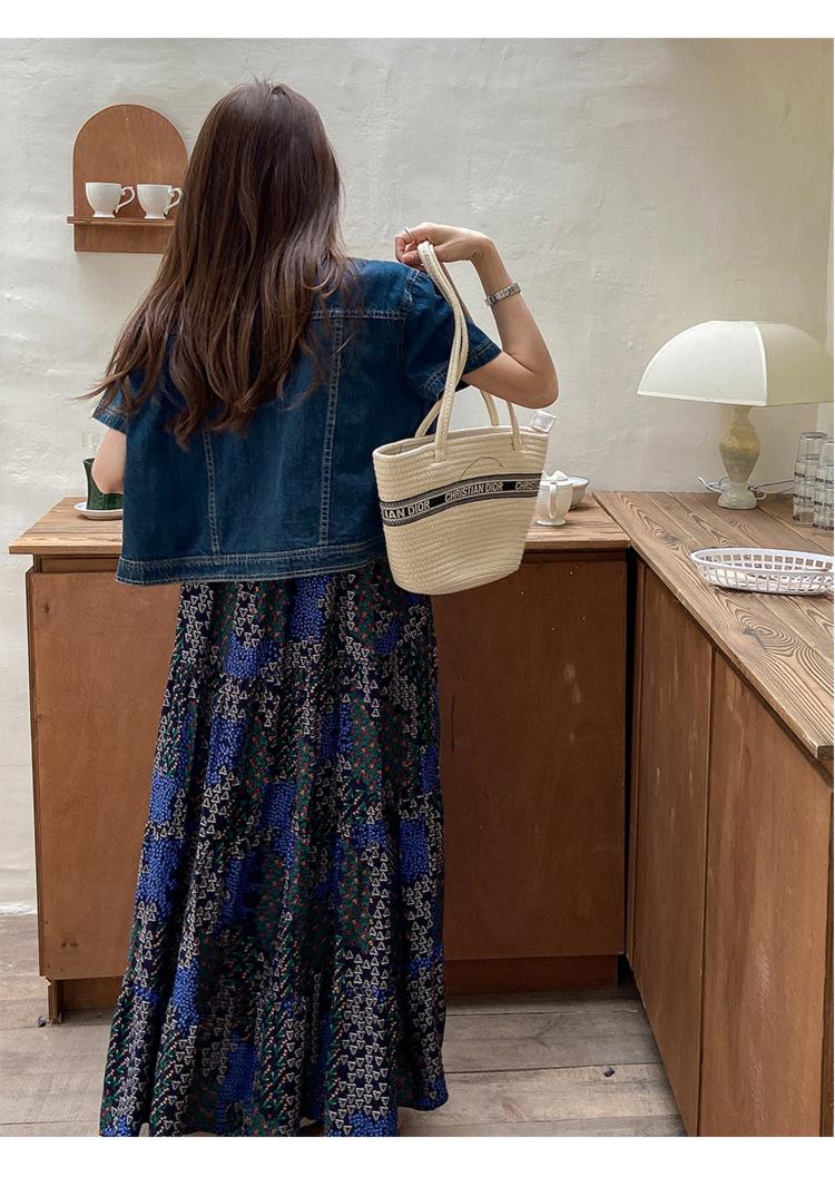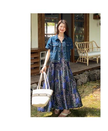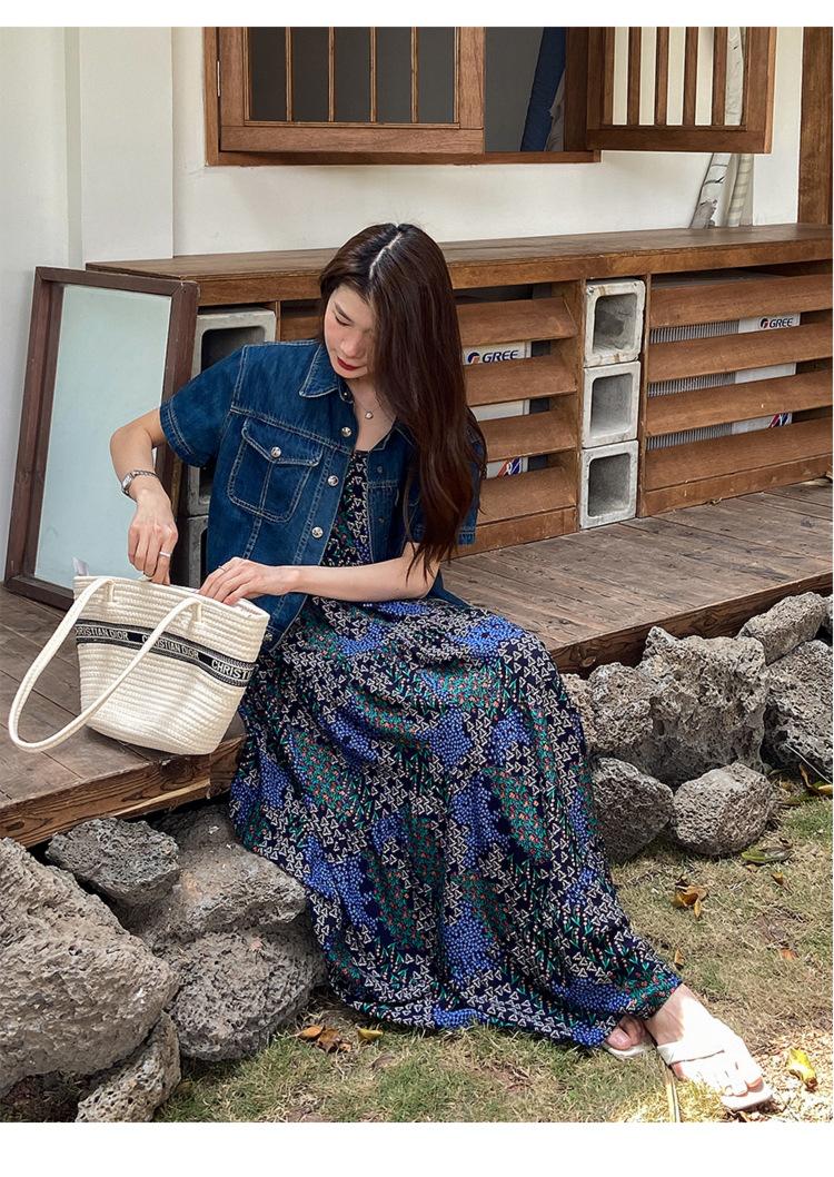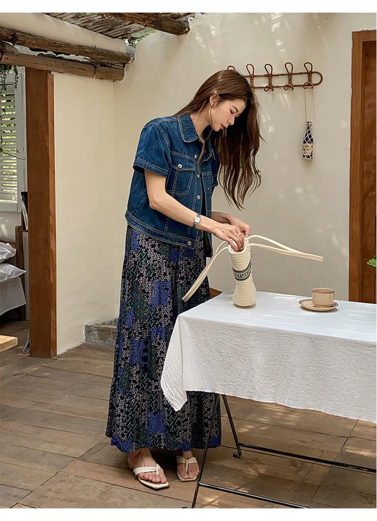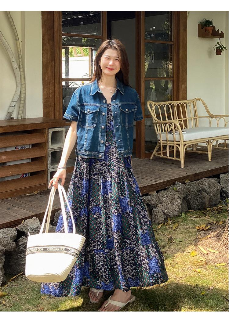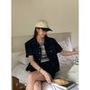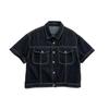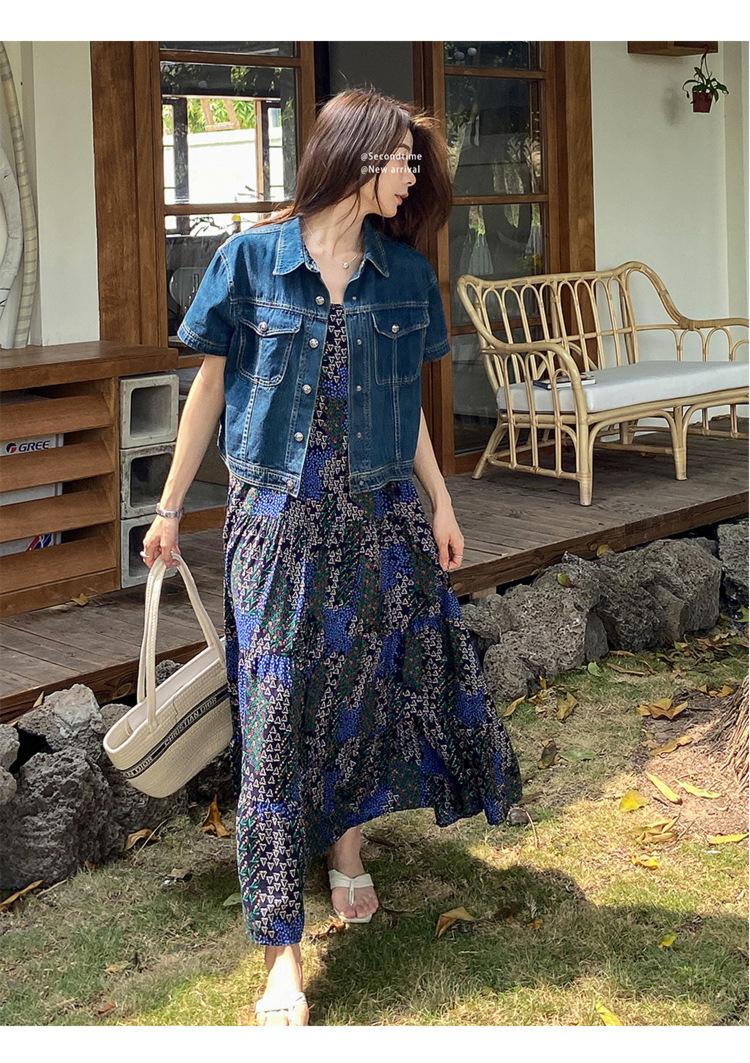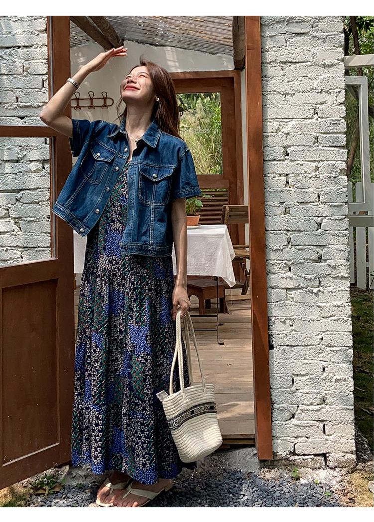 Chamarra de mezclilla de manga corta estilo retro para mujer 2024 Primavera Nuevo estilo Solapa Bolsillo de doble solapa Pantalones Top de trabajo 5912