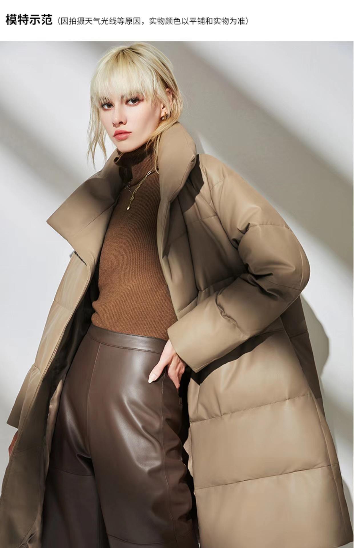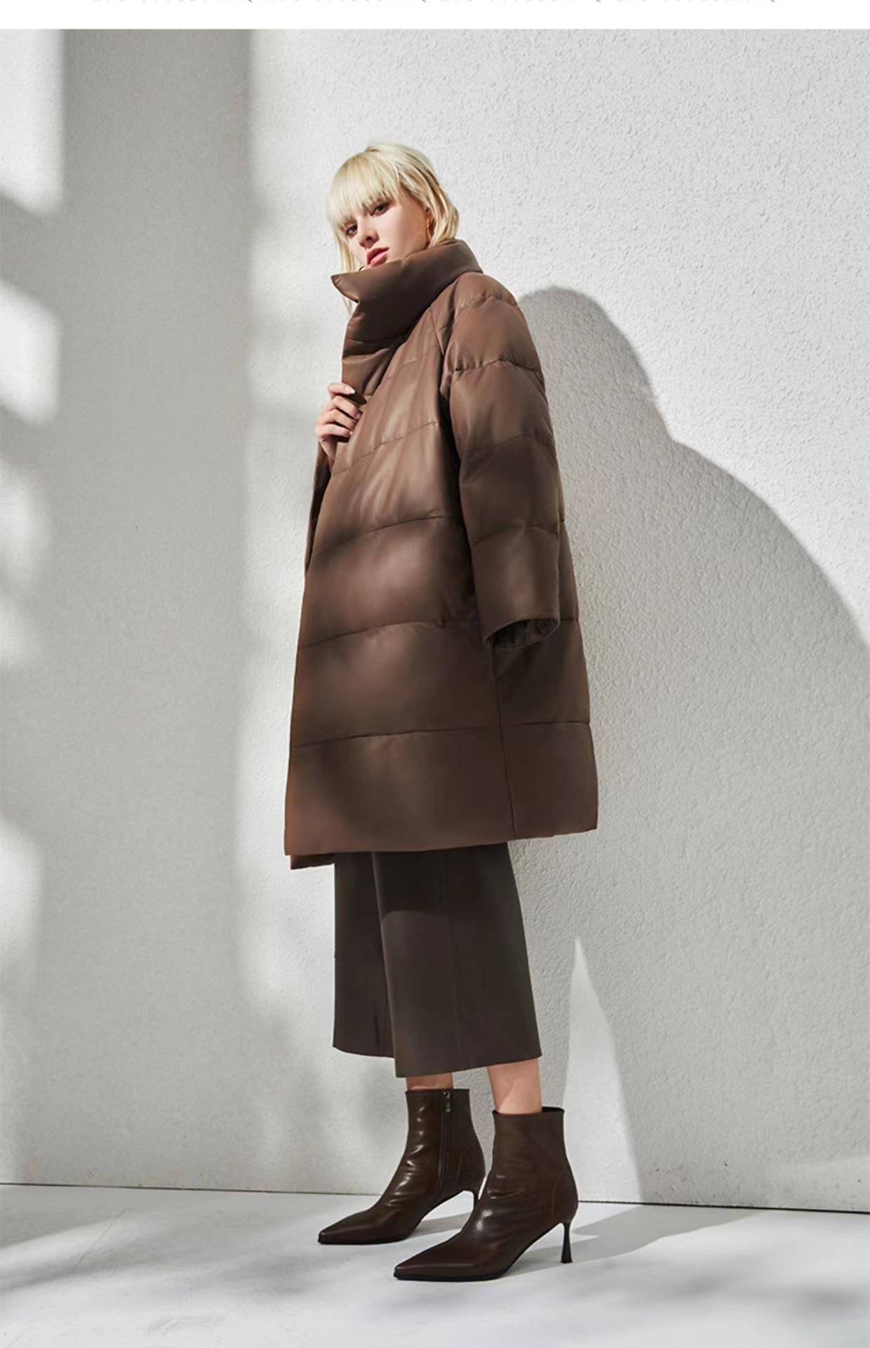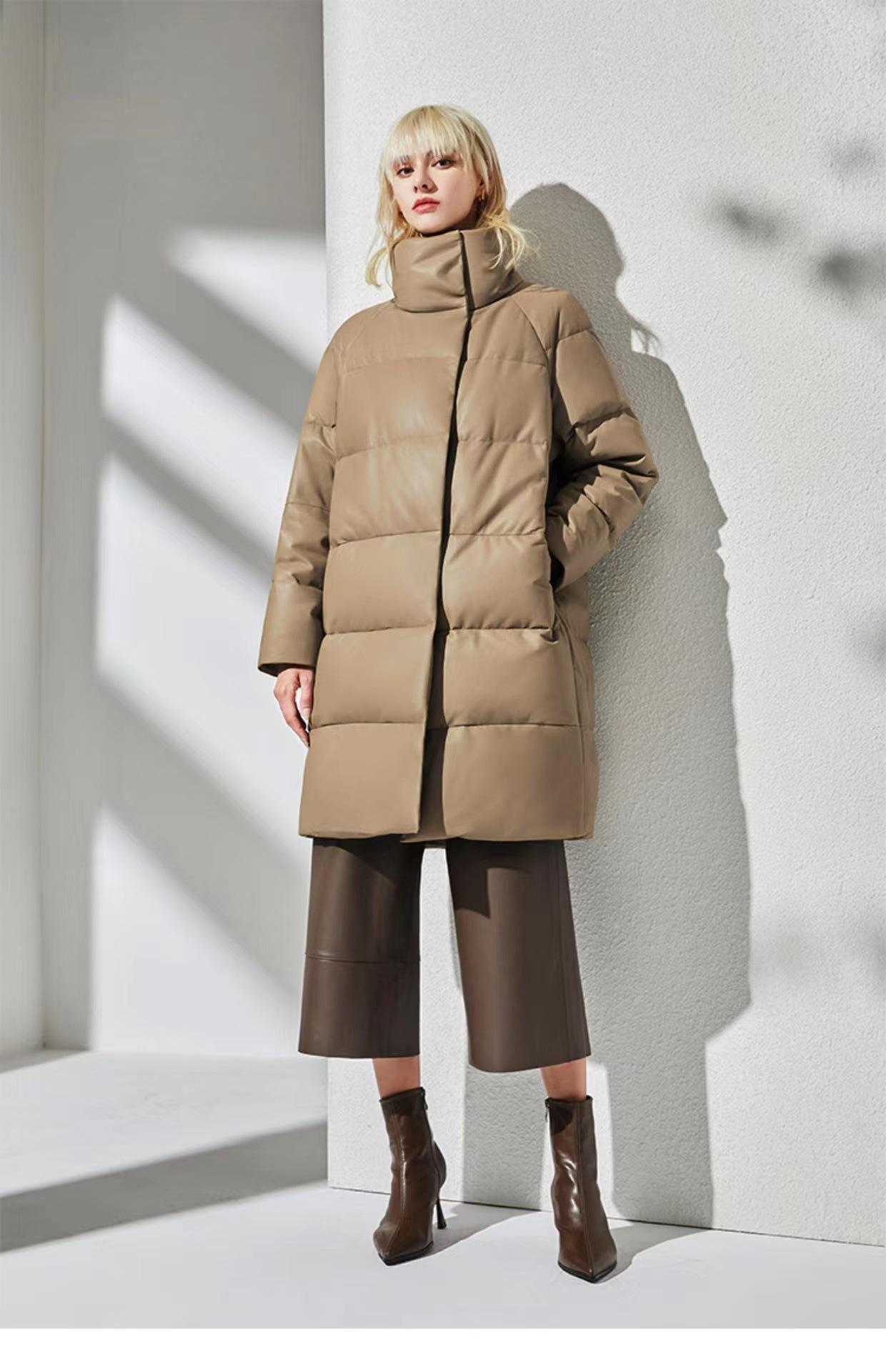Haining 2025 Nuevo Invierno Recto Cuero Genuino plumón Cuello Alto Cuero Genuino Piel de Oveja Largo Medio Chaqueta de Moda para Mujer