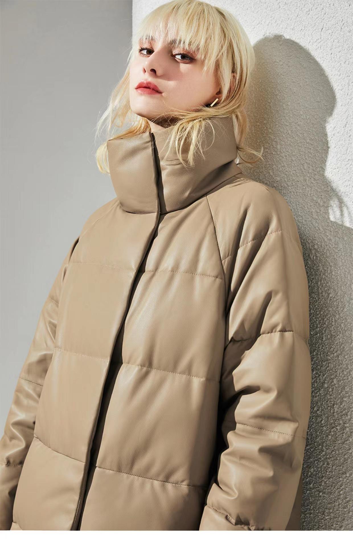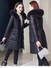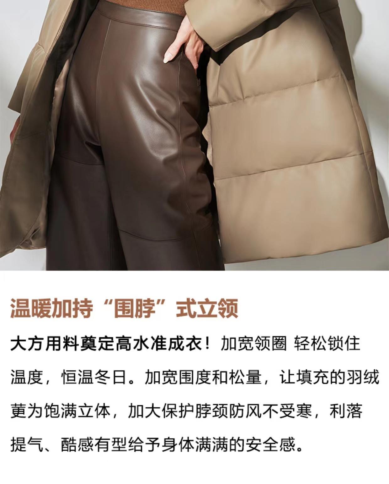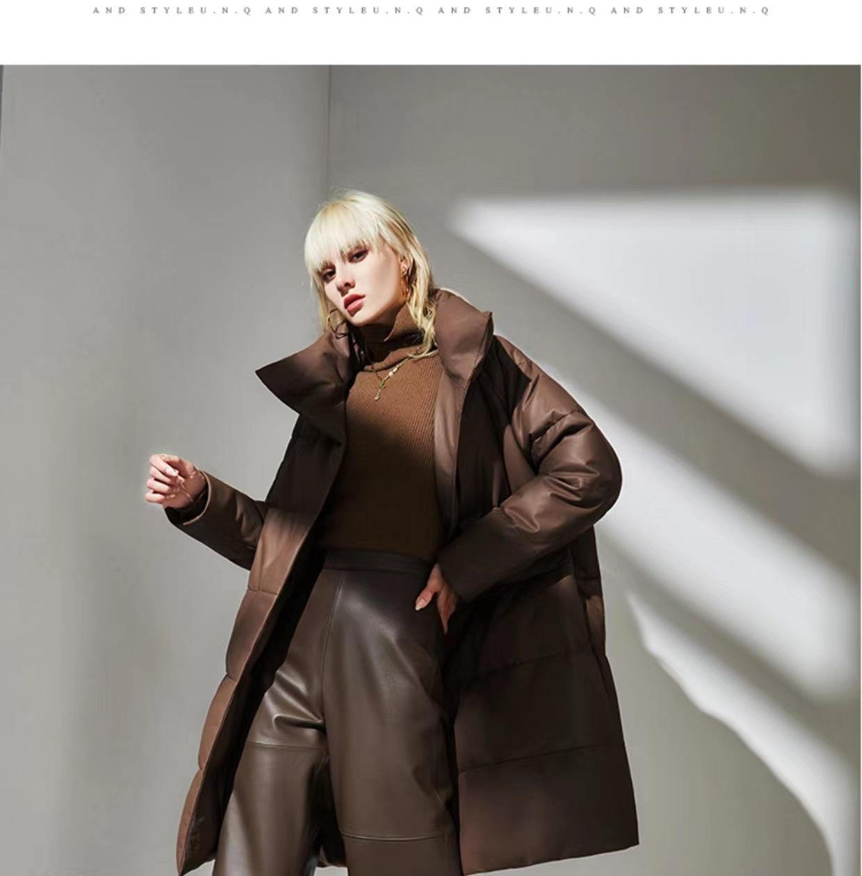 Haining 2025 Nuevo Invierno Recto Cuero Genuino plumón Cuello Alto Cuero Genuino Piel de Oveja Largo Medio Chaqueta de Moda para Mujer