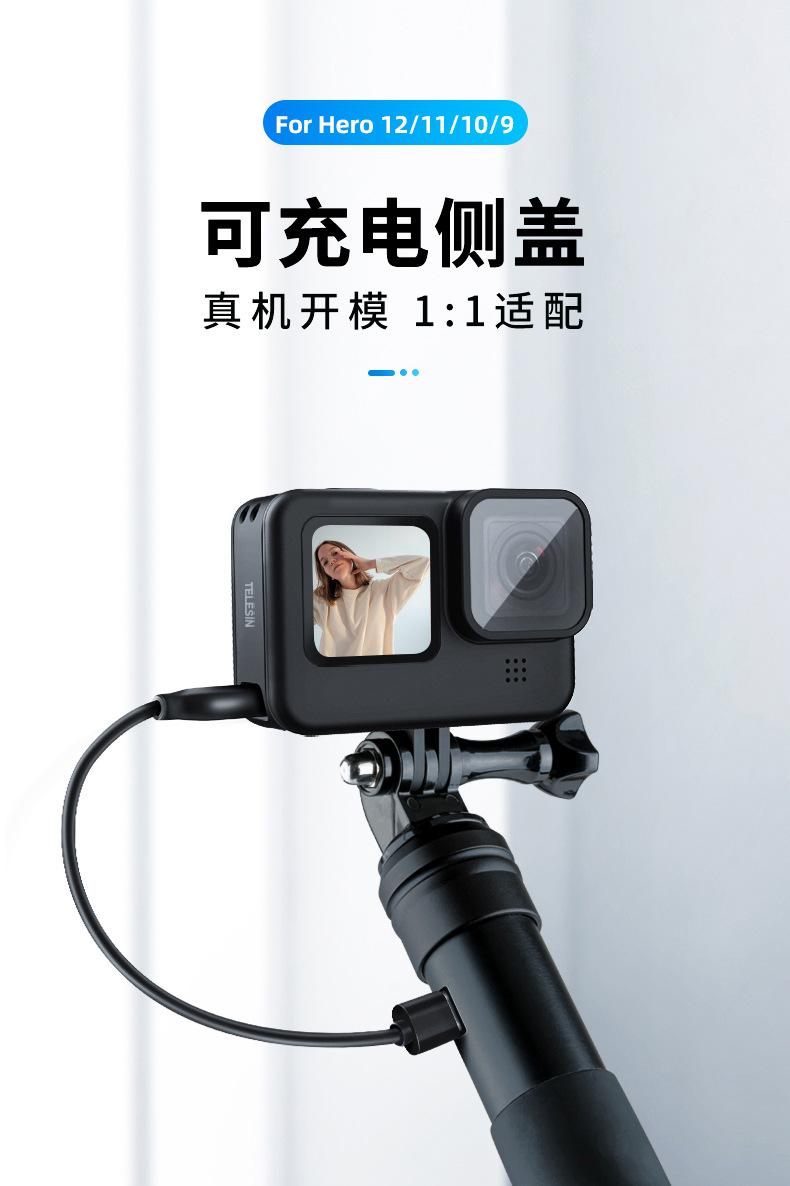 Taixun es adecuado para cámaras deportivas GoPro12/11/10/9, cubierta lateral recargable, cubierta lateral de batería, accesorios para vlogs