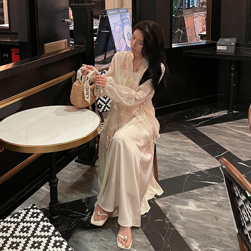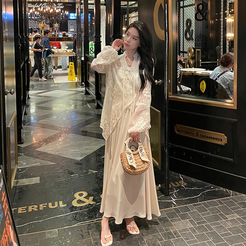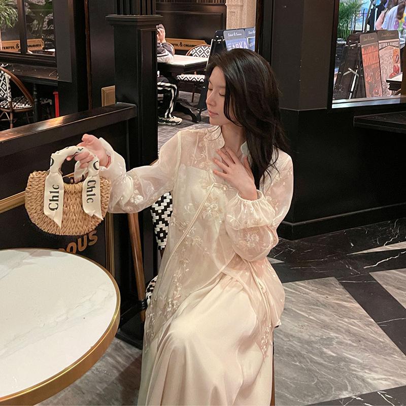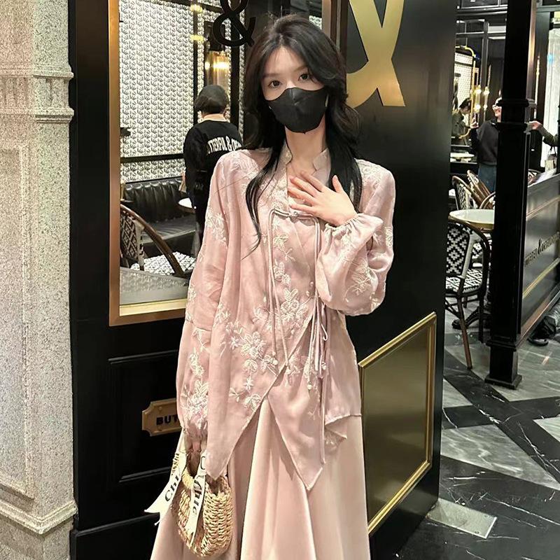 Nuevo vestido de estilo nacional chino para mujer, primavera 2024, nueva moda, elegante falda superior de malla, conjunto de dos piezas