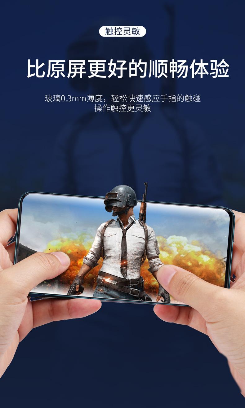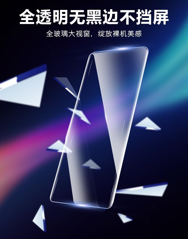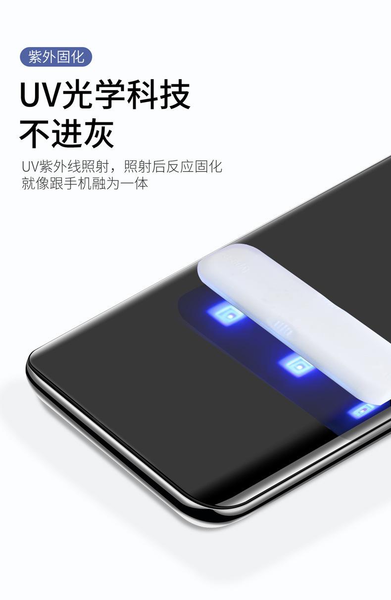 6 Si el pegamento se desborda, límpielo con un paño sin polvo. Después de verificar el estándar de retención del vidrio templado del teléfono móvil, ilumine el borde del teléfono móvil 3 veces (no ilumine el centro). Después del curado inicial durante 3 segundos, limpie el pegamento del borde hasta que el pegamento desbordado desaparezca. (Para evitar bordes blancos o burbujas en los bordes)