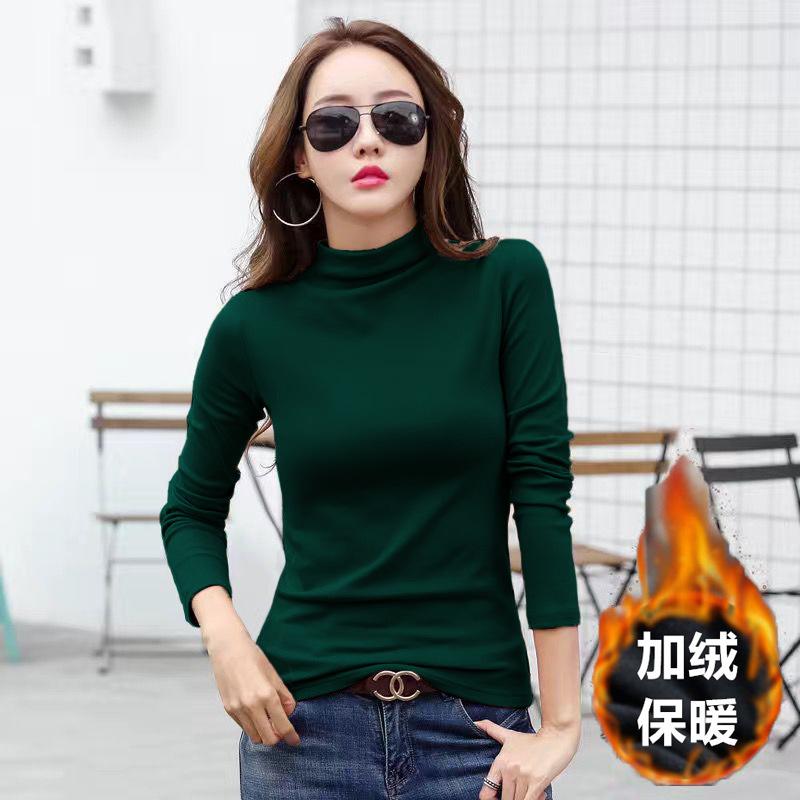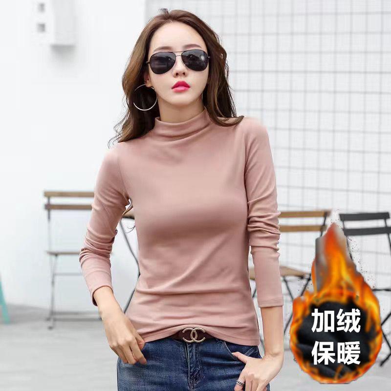 2025 Nuevo Otoño e Invierno para Mujer Terciopelo Alemán Engrosado Cuello Medio Alto Camiseta Base de Manga Larga Cálida y con Aspecto Adelgazante Top Camiseta Interior
