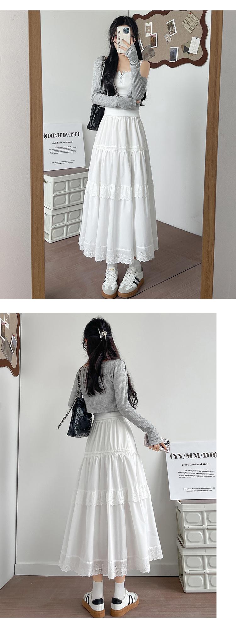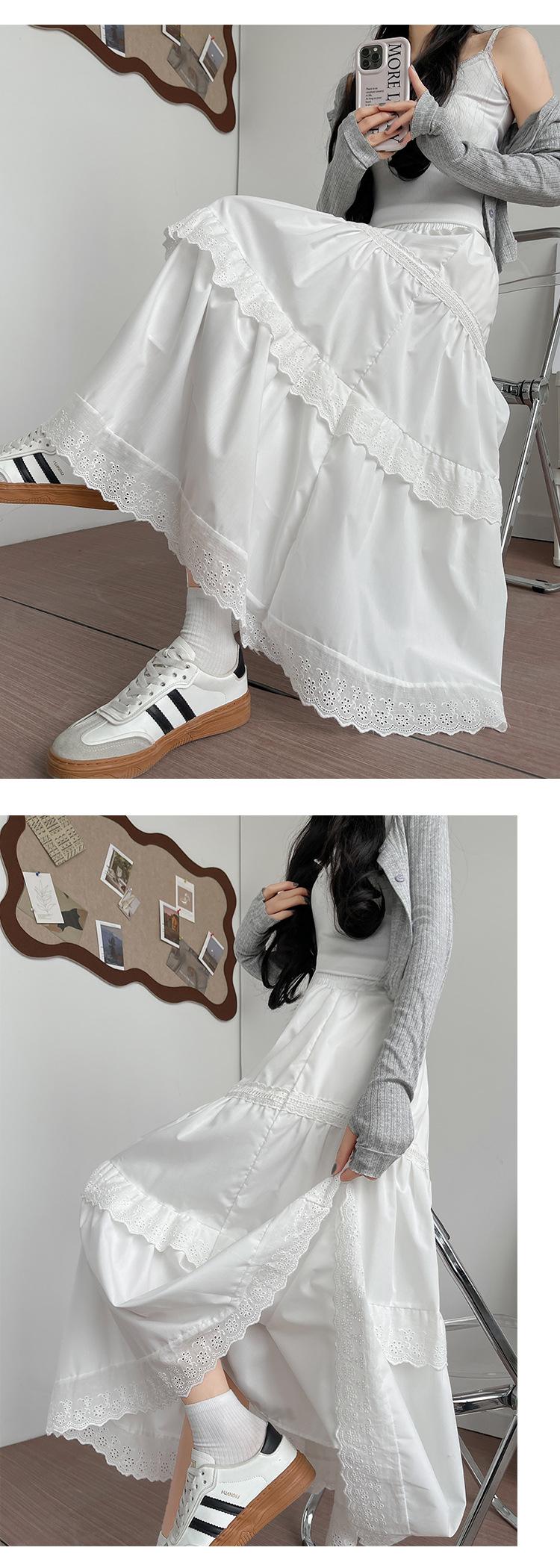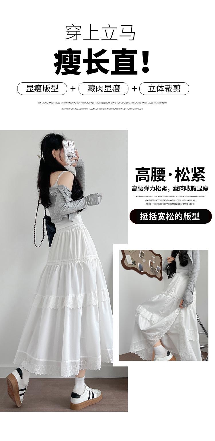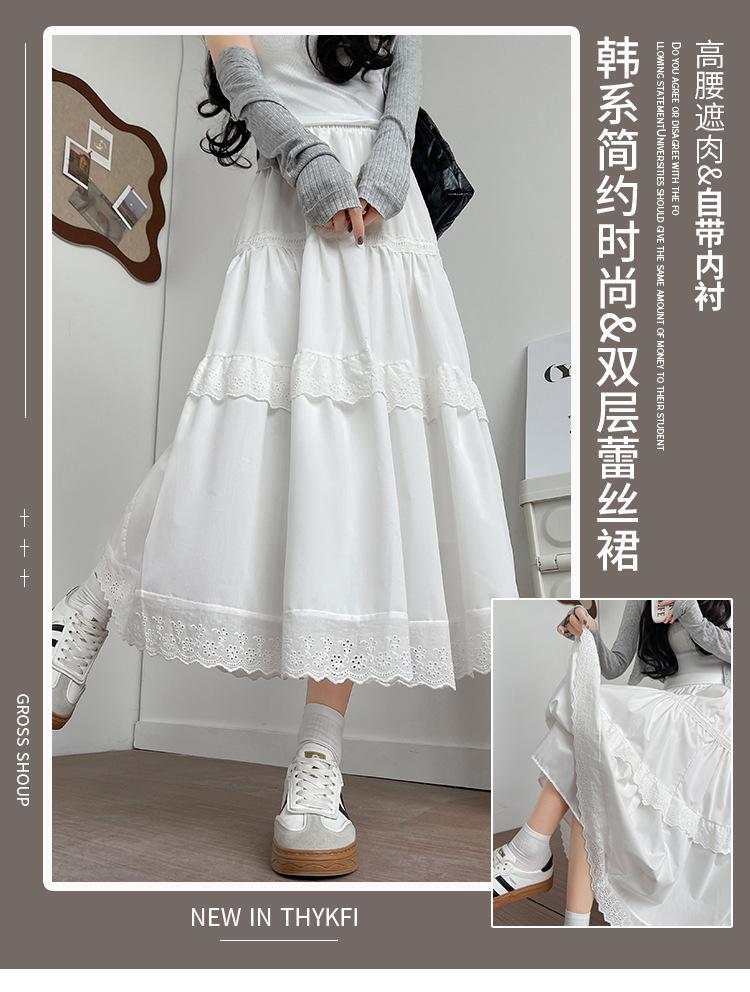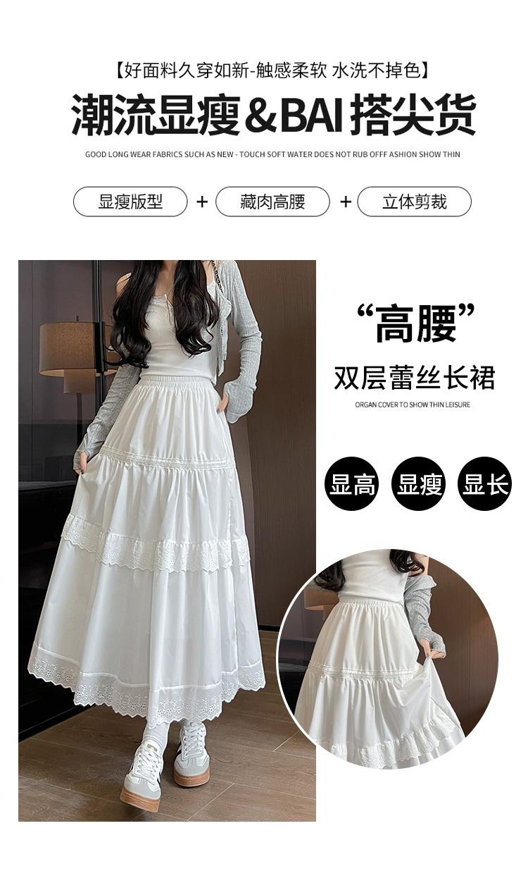 Falda Blanca Primavera y Verano de Alta Gama para Mujer 2025 Nueva Falda Línea A Drapeada de Cintura Alta Falda Pequeña de Encaje con Volantes