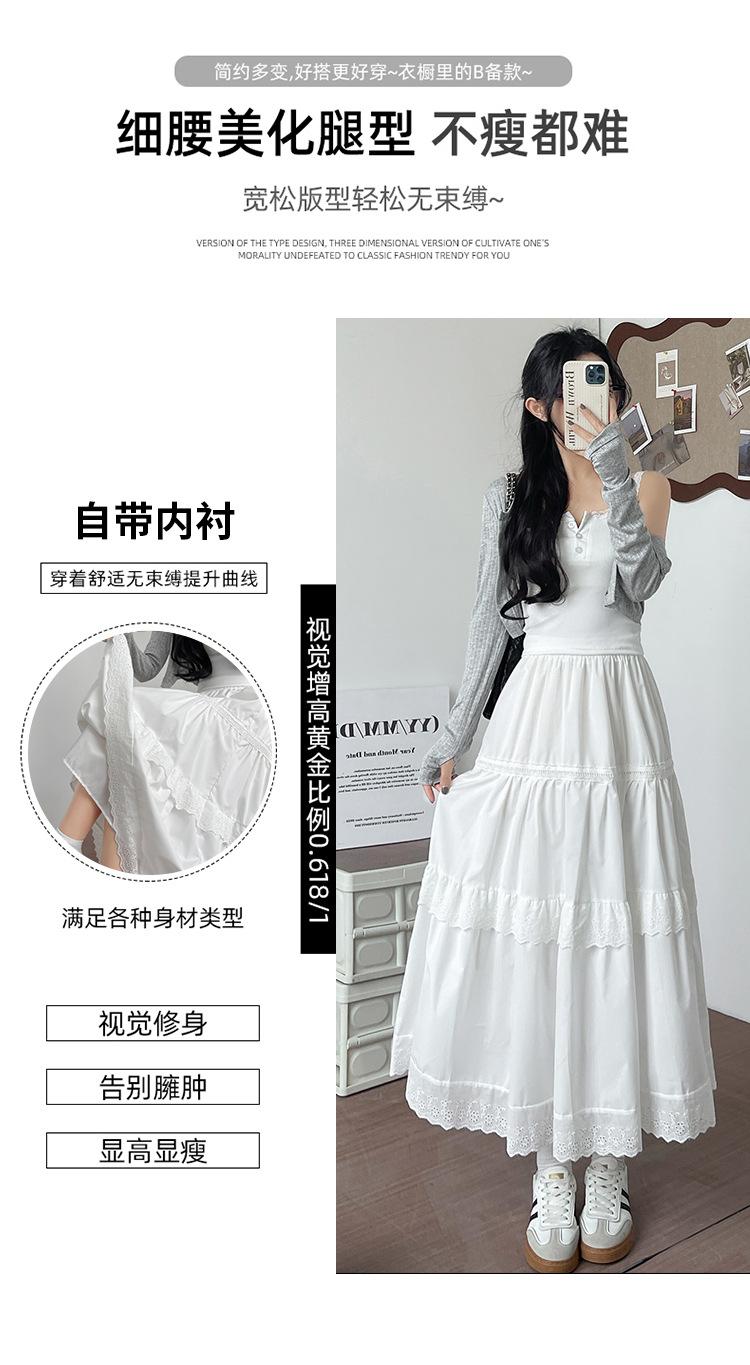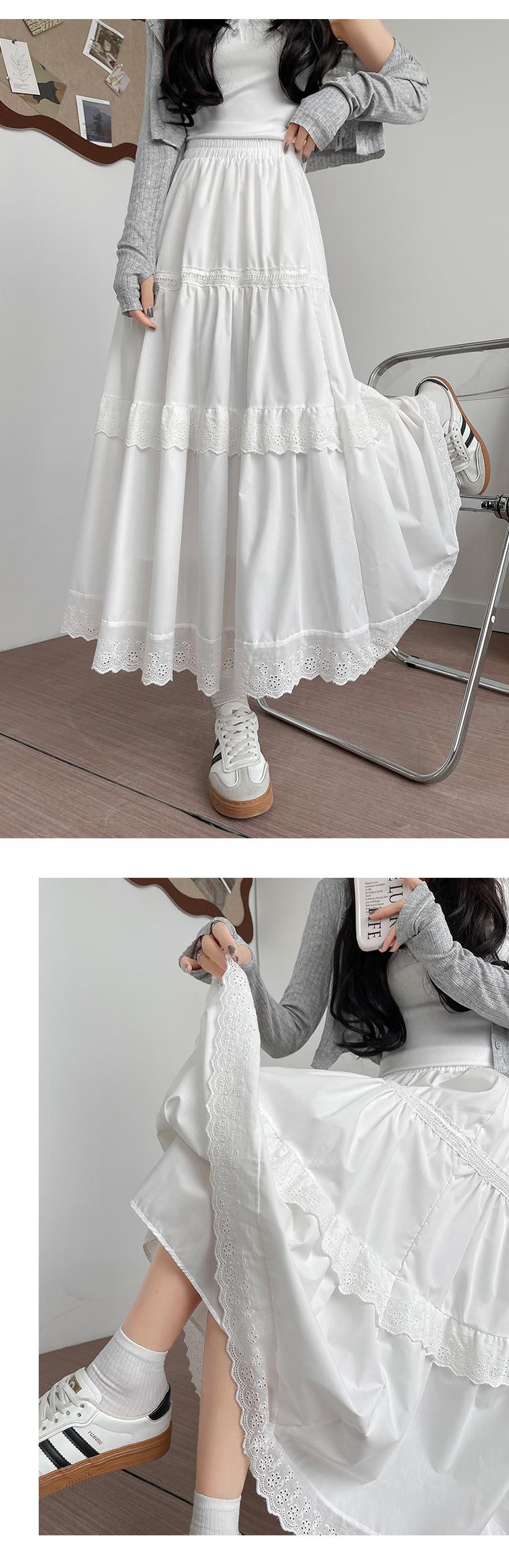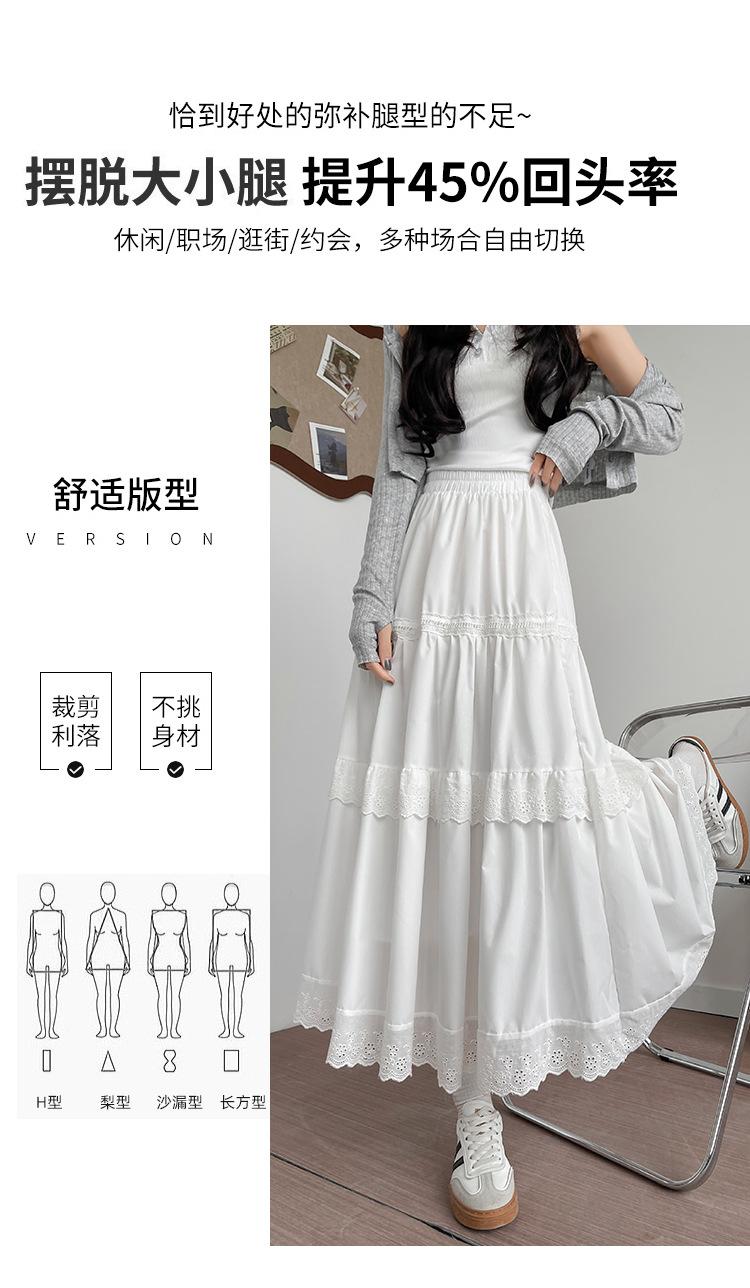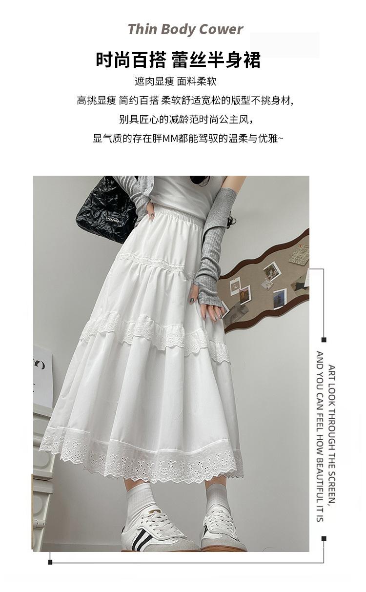 Falda Blanca Primavera y Verano de Alta Gama para Mujer 2025 Nueva Falda Línea A Drapeada de Cintura Alta Falda Pequeña de Encaje con Volantes