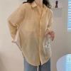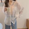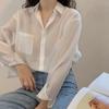 Camisa blanca de gasa de manga larga para mujer 2023, primavera y verano, nuevo diseño, camisa de protección solar de nicho.