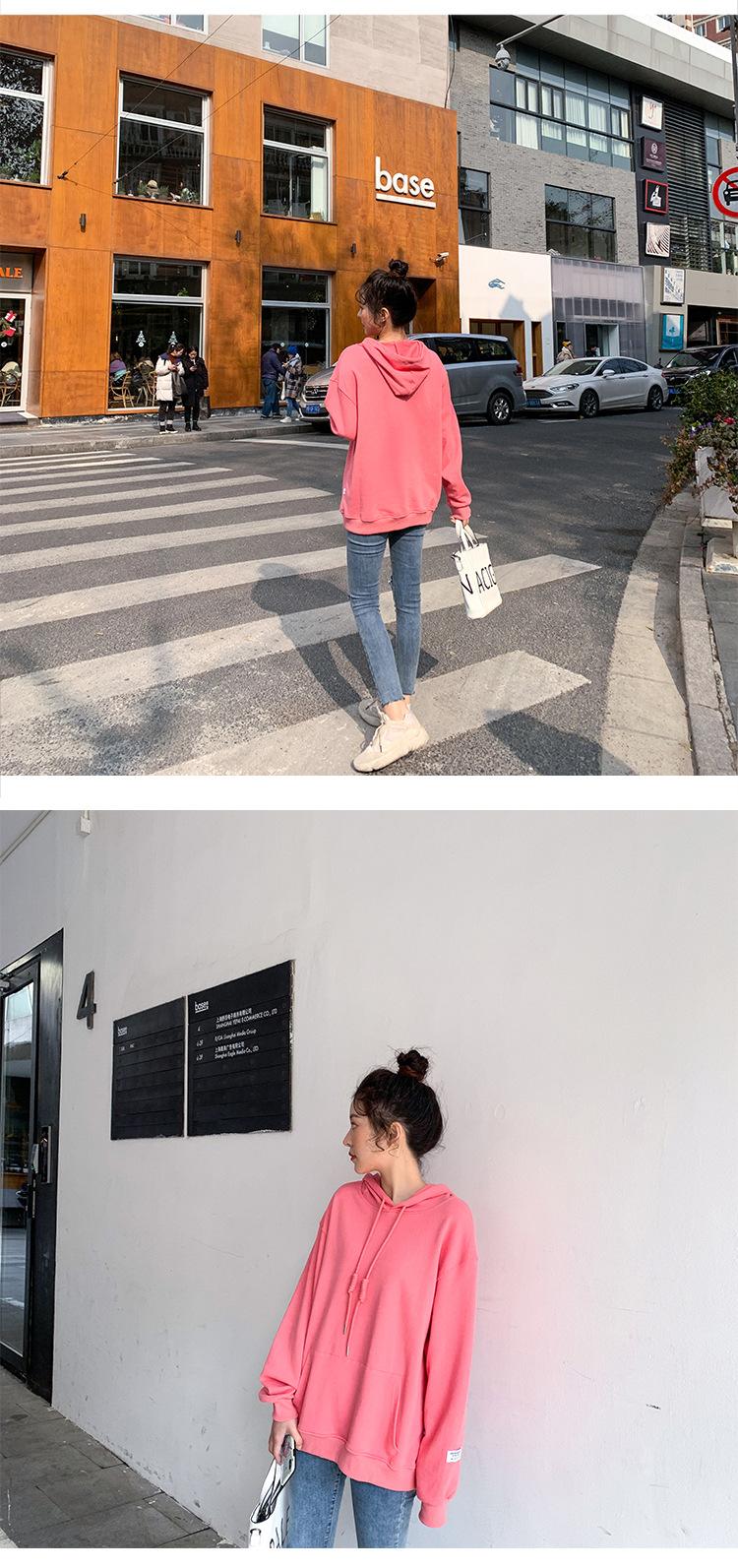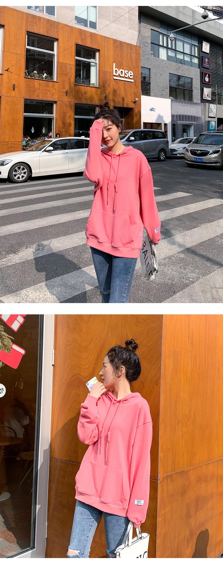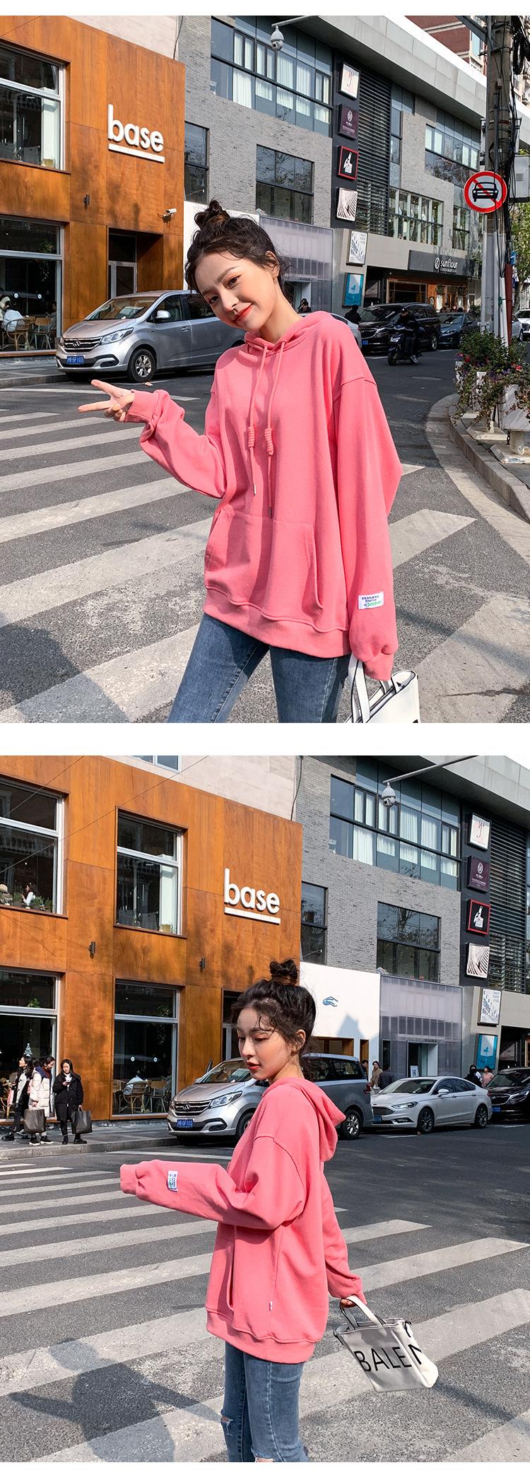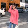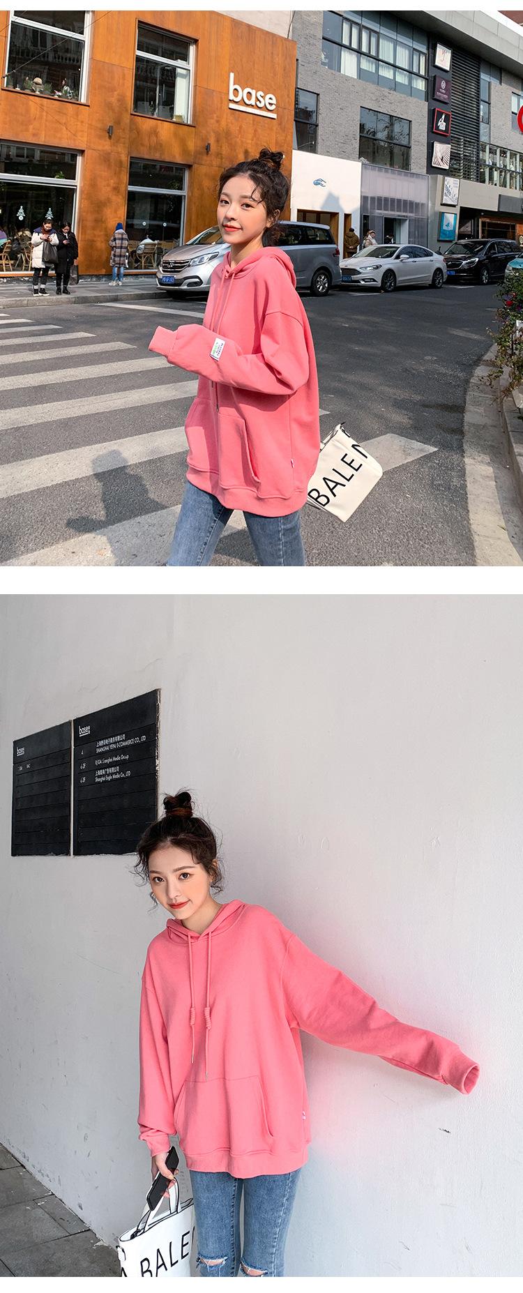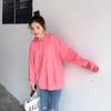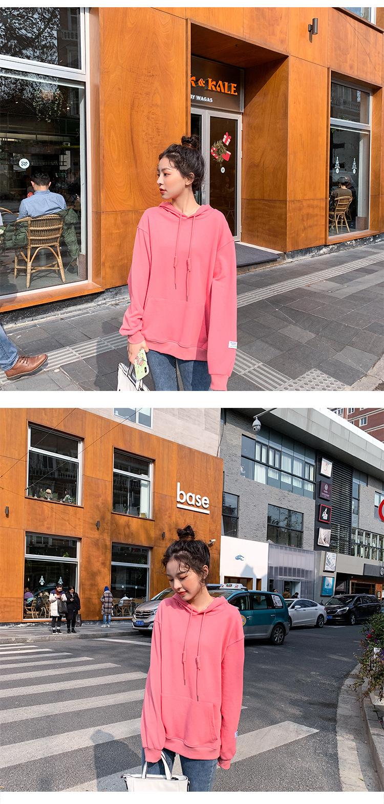 Leche de Papaya Primavera y Otoño Nuevo Estilo Coreano con Capucha Bolsillo Grande Rojo Rosa Color Sólido Casual con Capucha Suéter Holgado Ajustado