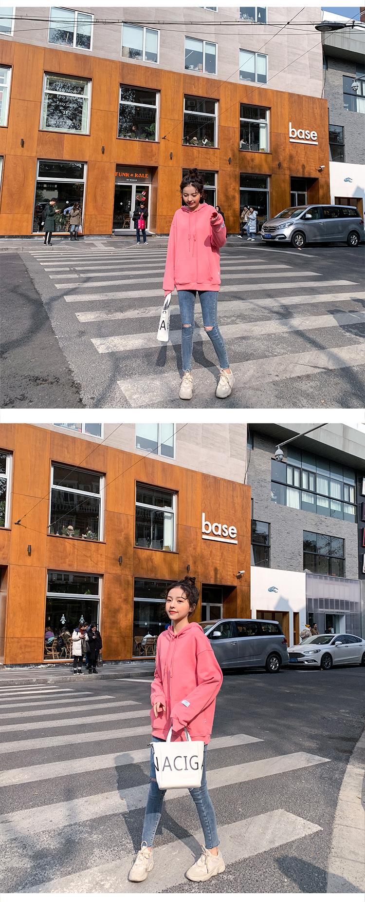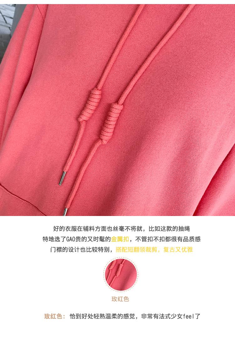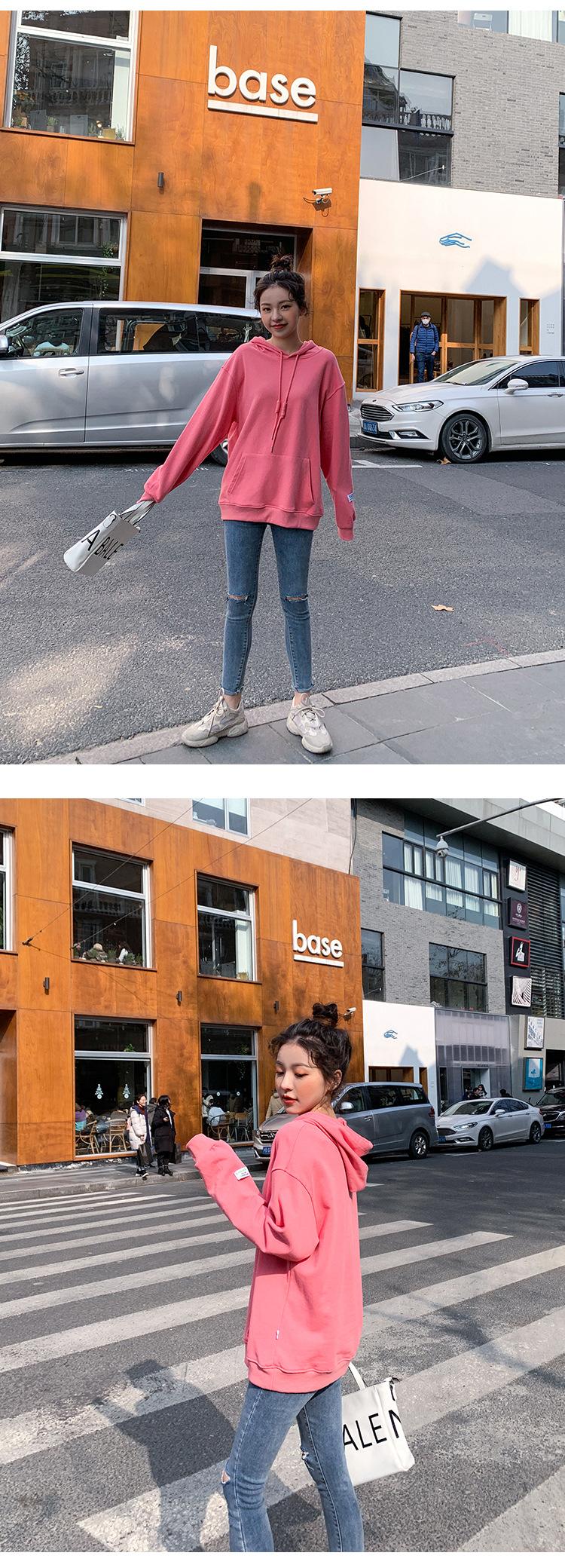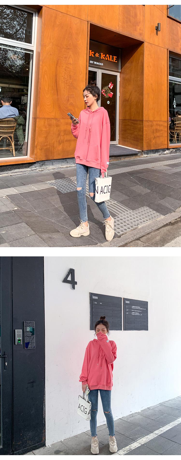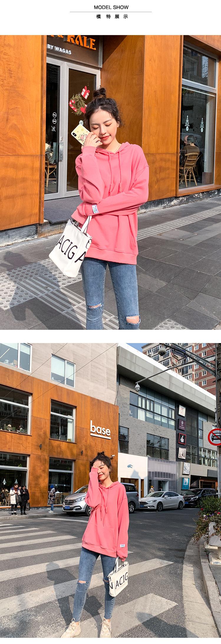 Leche de Papaya Primavera y Otoño Nuevo Estilo Coreano con Capucha Bolsillo Grande Rojo Rosa Color Sólido Casual con Capucha Suéter Holgado Ajustado